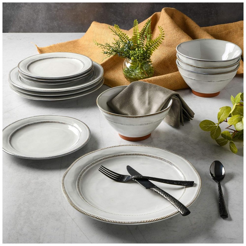 Aparelho de Jantar com 12 Peças em Cerâmica e Esmalte Reativo Gibson Elite Terranea Branco