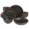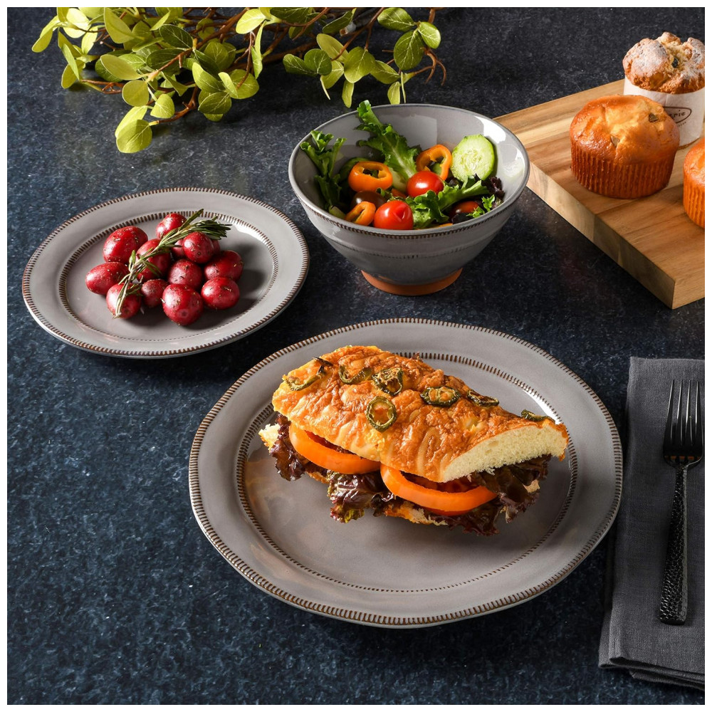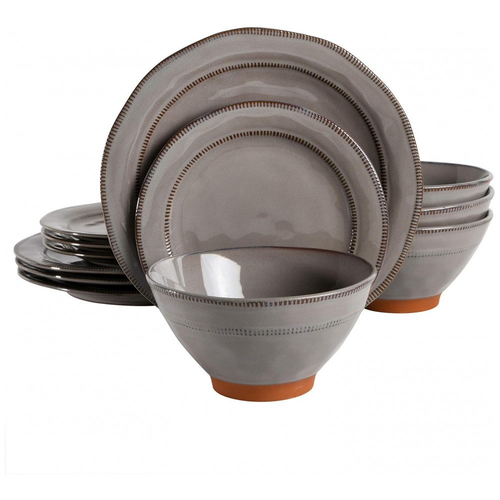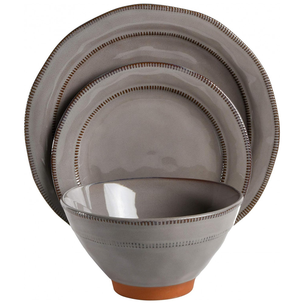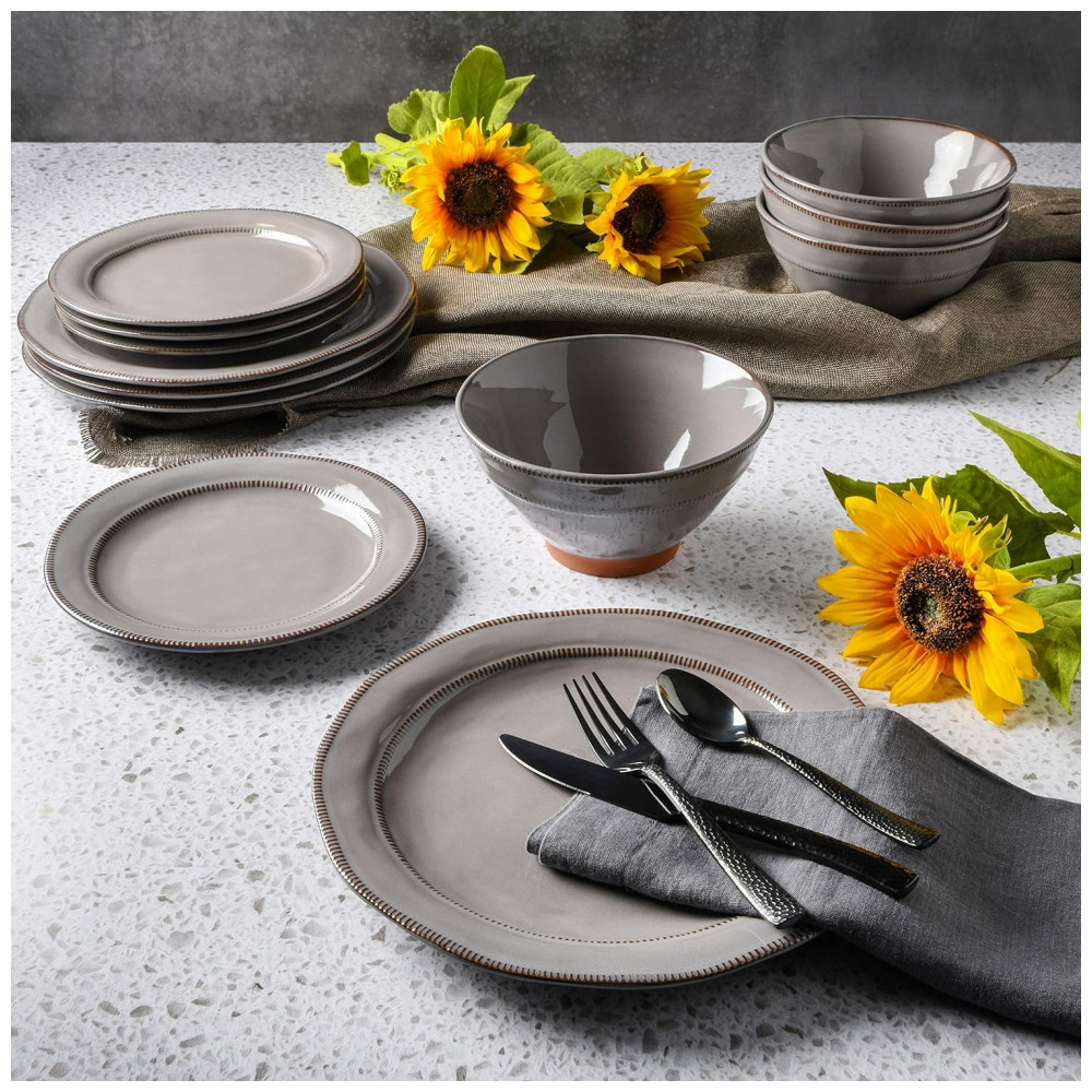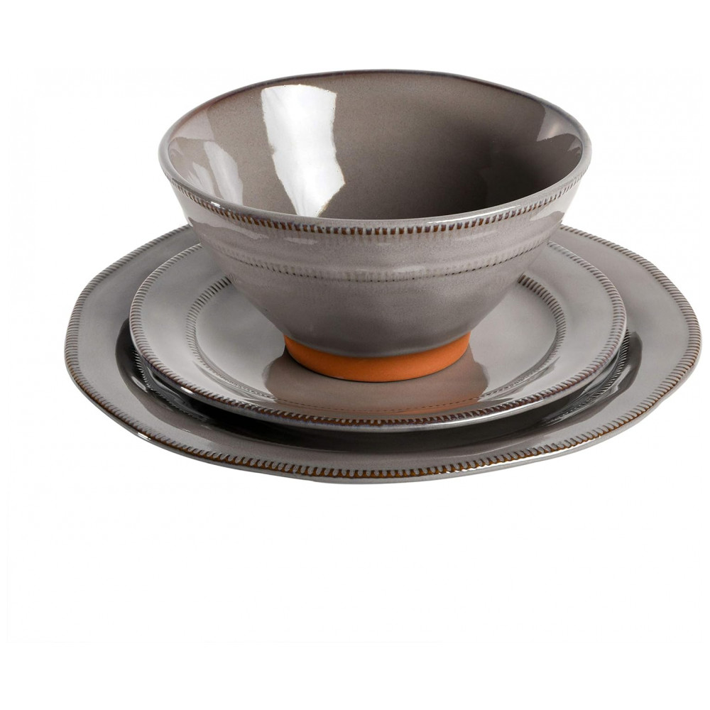 Aparelho de Jantar com 12 Peças em Cerâmica e Esmalte Reativo Gibson Elite Terranea Cinza