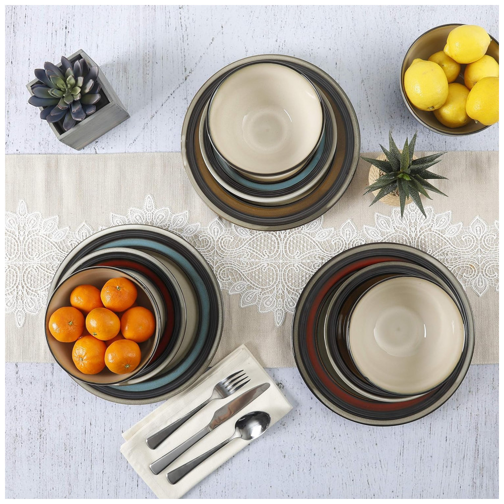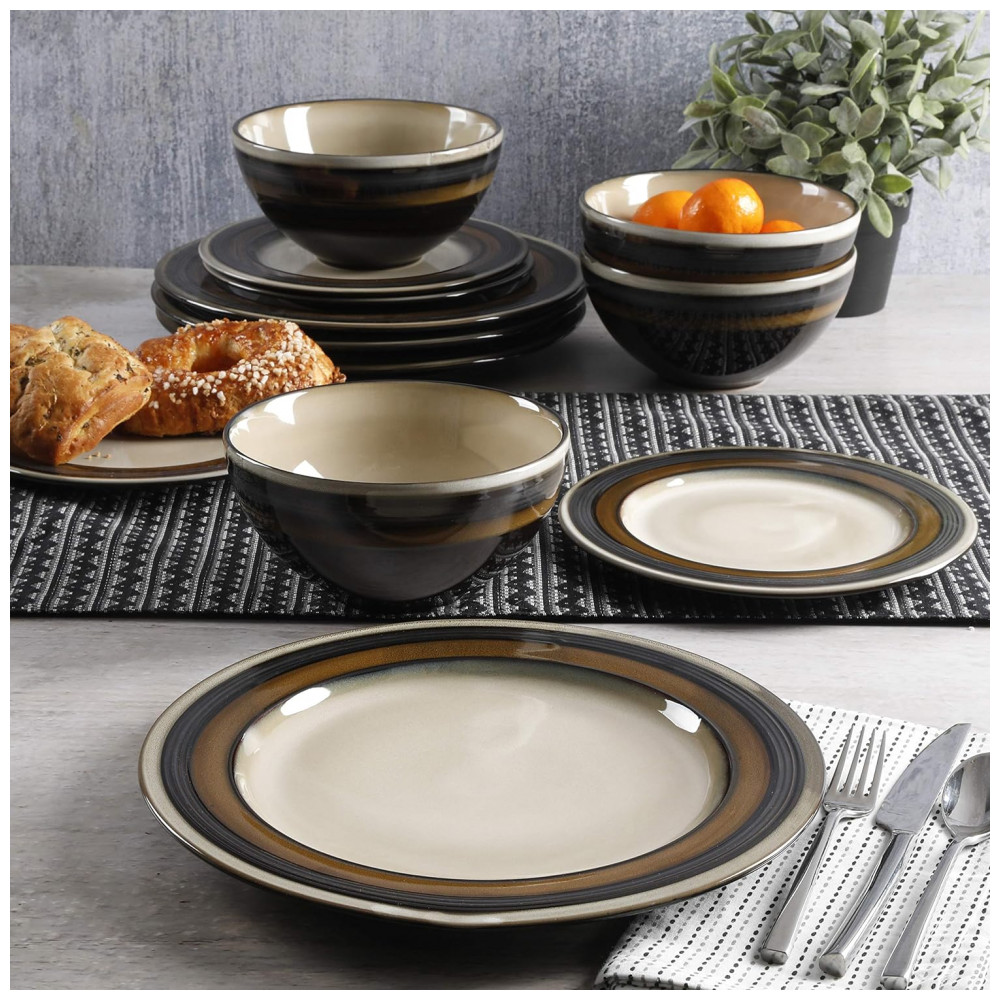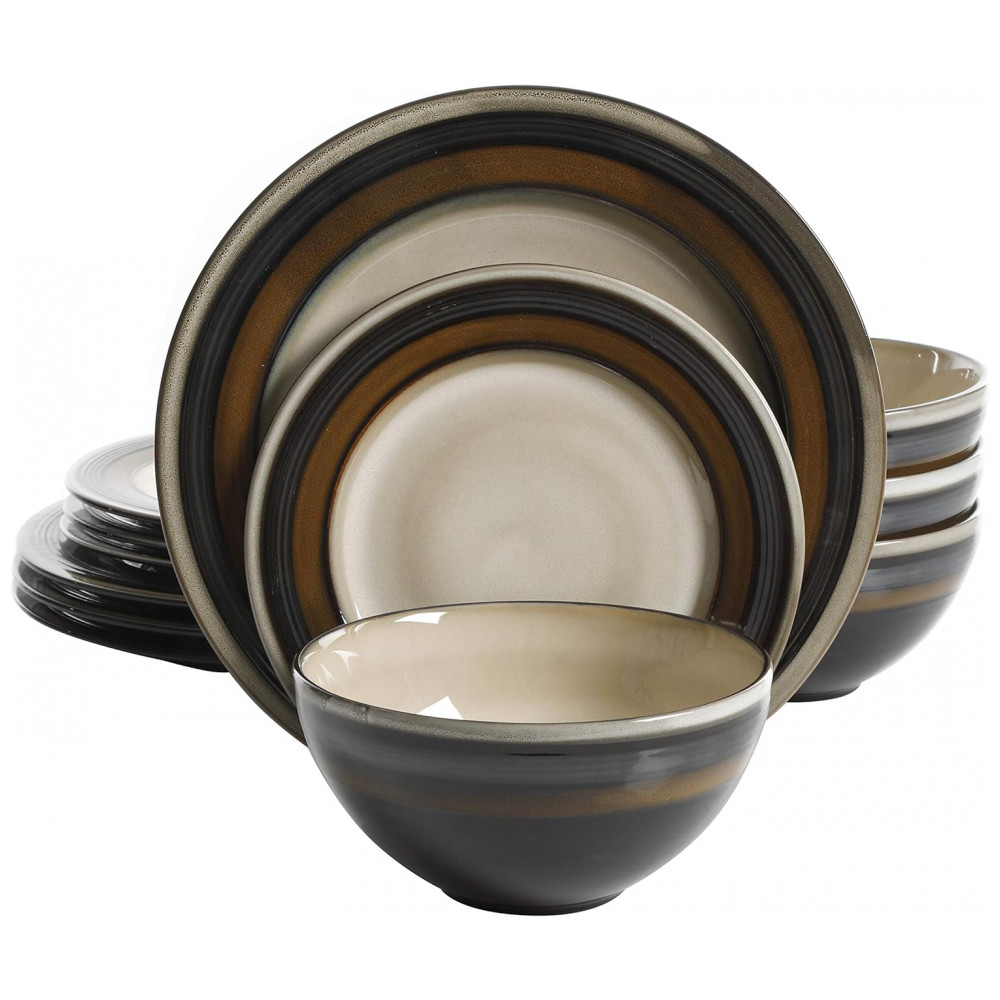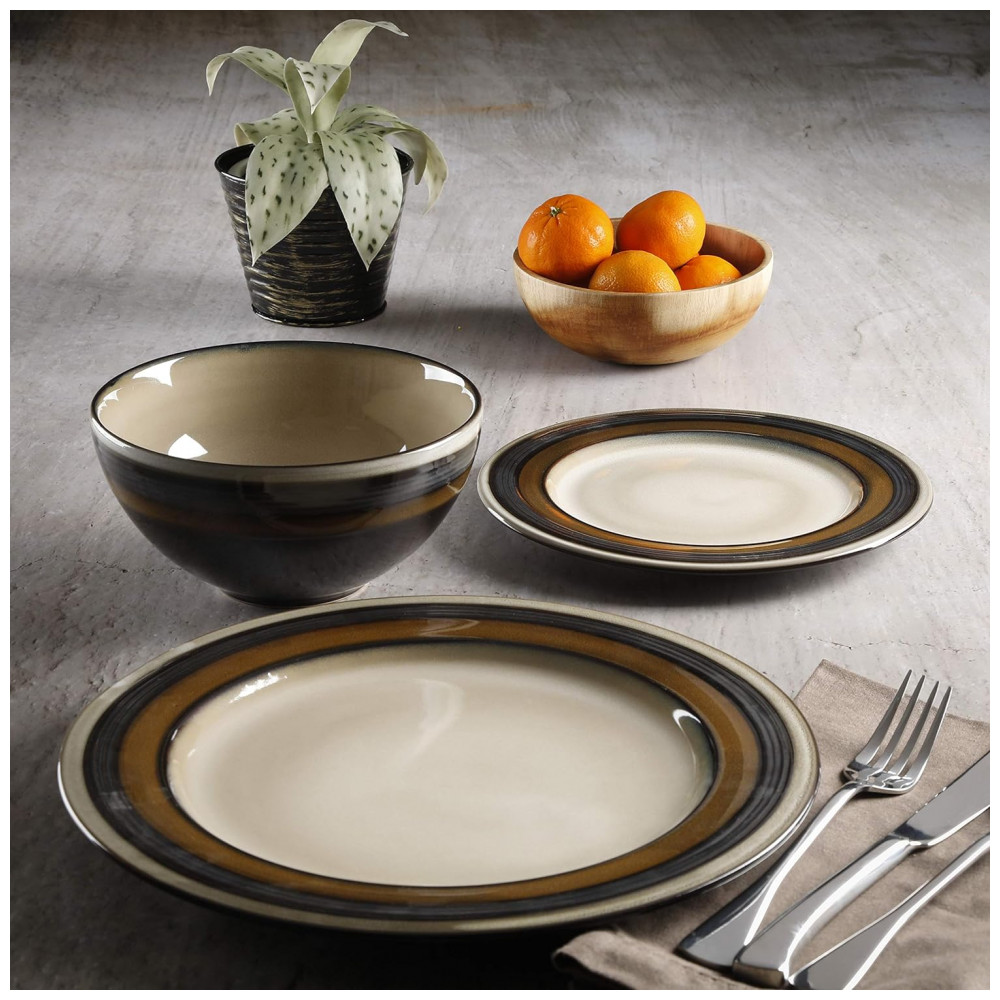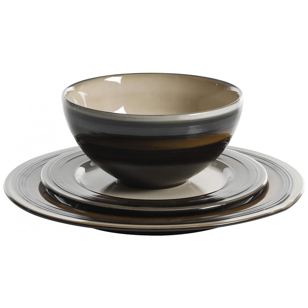 Aparelho de Jantar com 12 Peças em Cerâmica Gibson Elite Everston Marrom e Creme