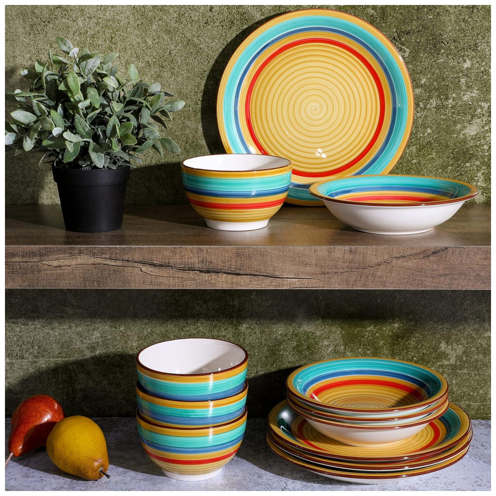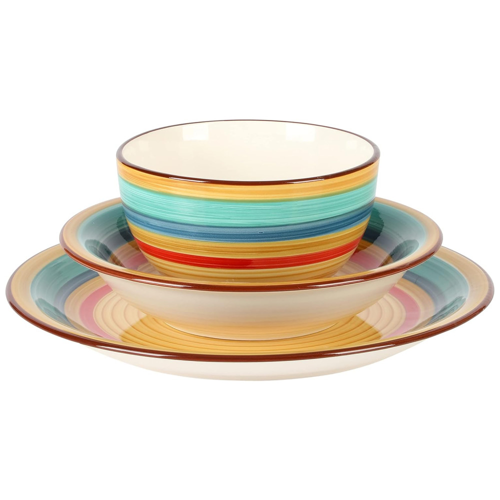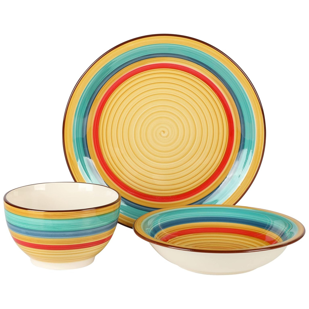 Aparelho de Jantar com 12 Peças em Cerâmica Pintadas á Mão Gibson Home Rainbow Amarelo