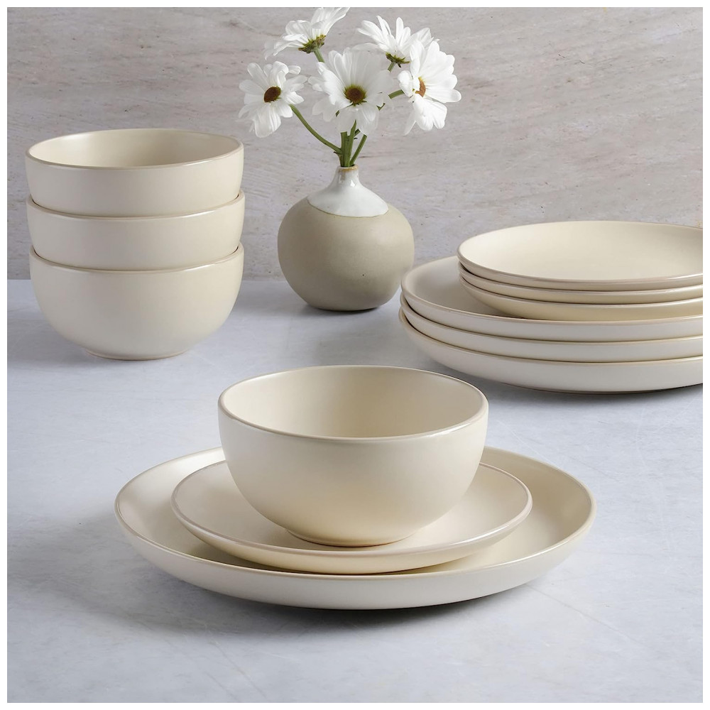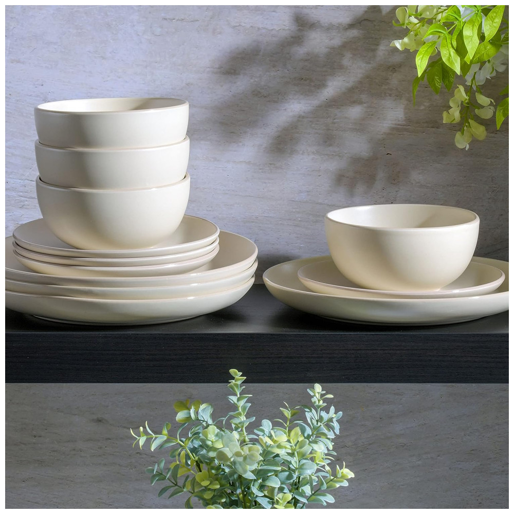 Aparelho de Jantar com 12 Peças em Cerâmica Serve 4 Pessoas Gibson Home Rockaway Creme