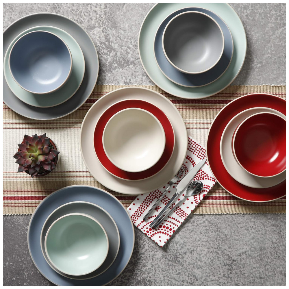 Conteúdo da Caixa: Serviço para 4 pessoas, incluindo 4 de cada um dos seguintes itens: Pratos de Jantar de 25 centímetros, Pratos de Sobremesa de 20 centímetros, Tigelas de 16 centímetros ou 780 mL