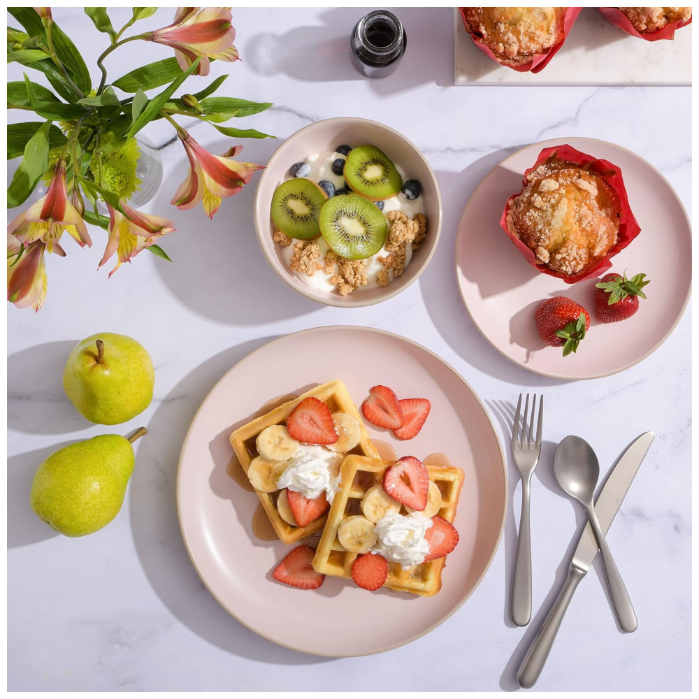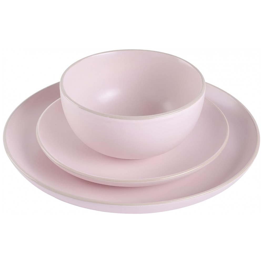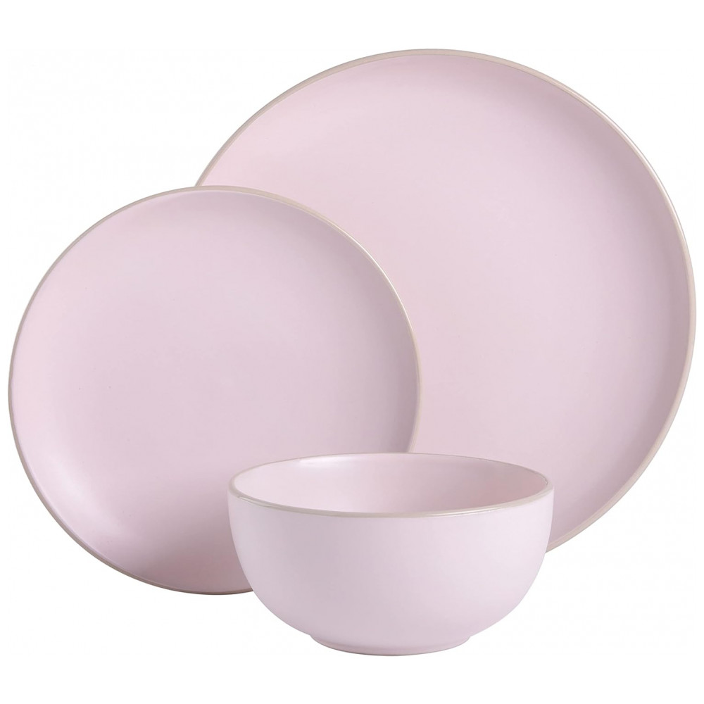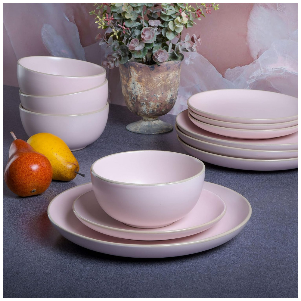 Aparelho de Jantar com 12 Peças em Cerâmica Serve 4 Pessoas Gibson Home Rockaway Rosa