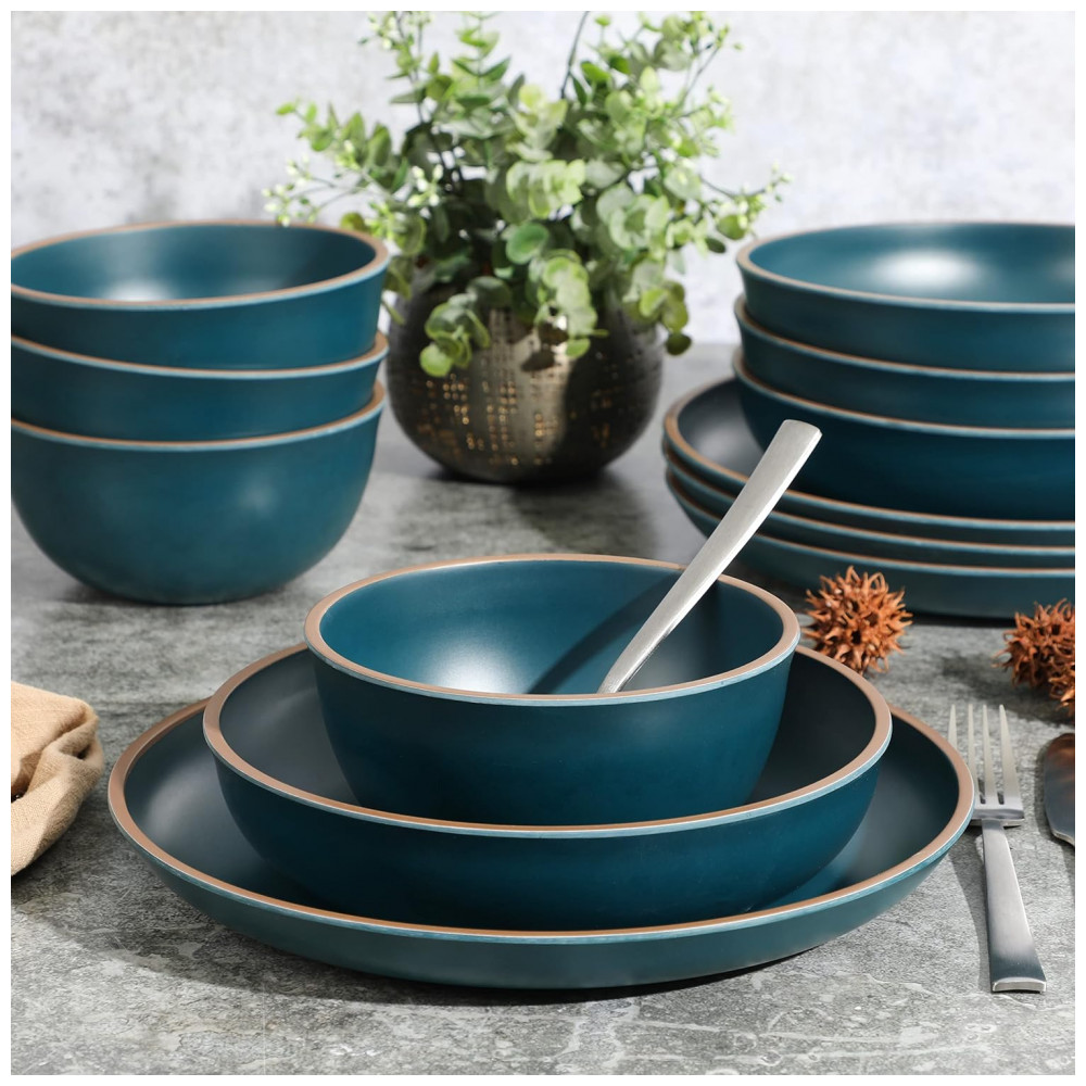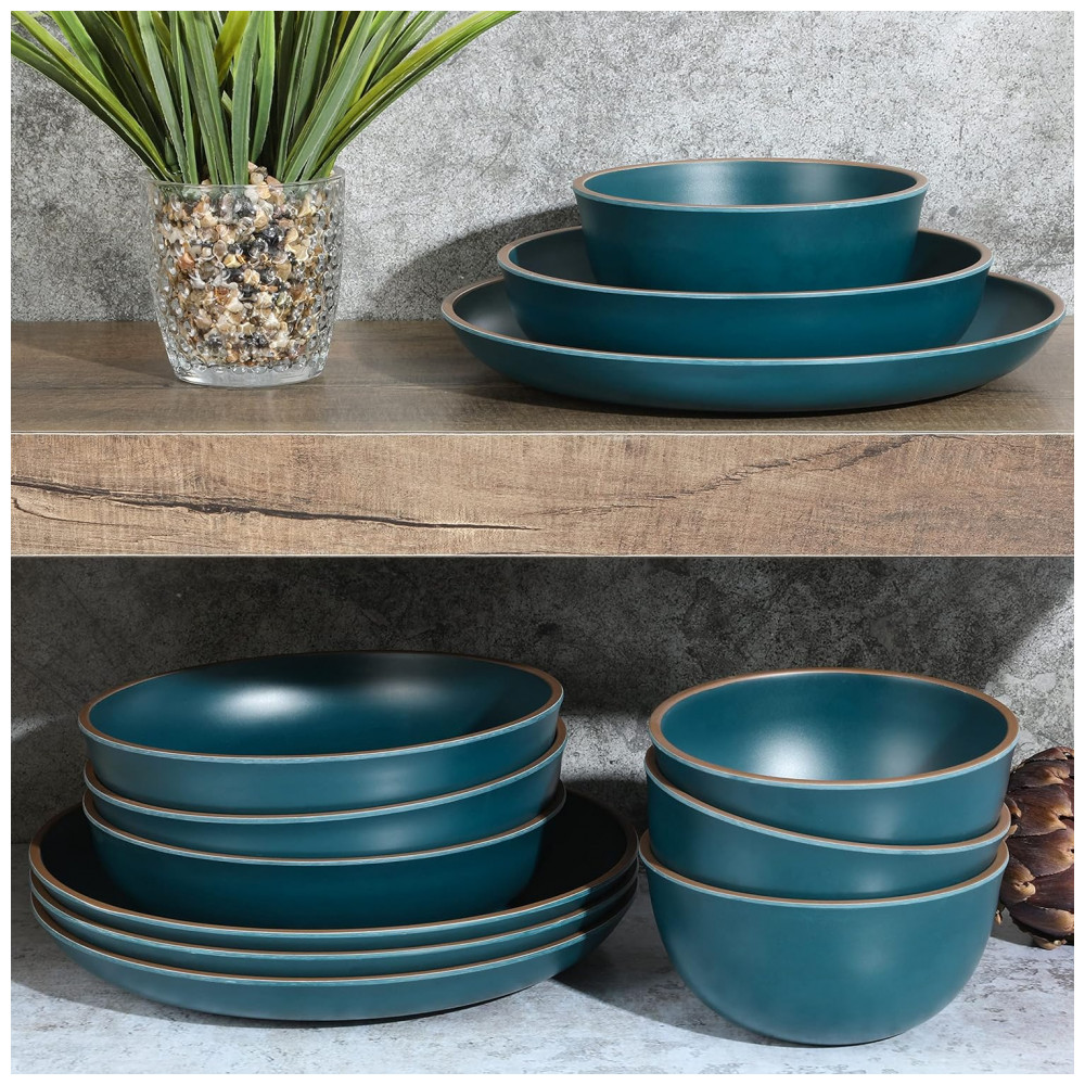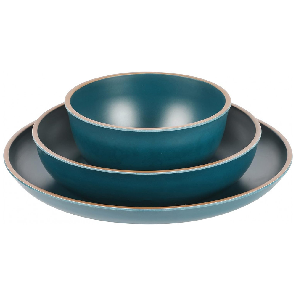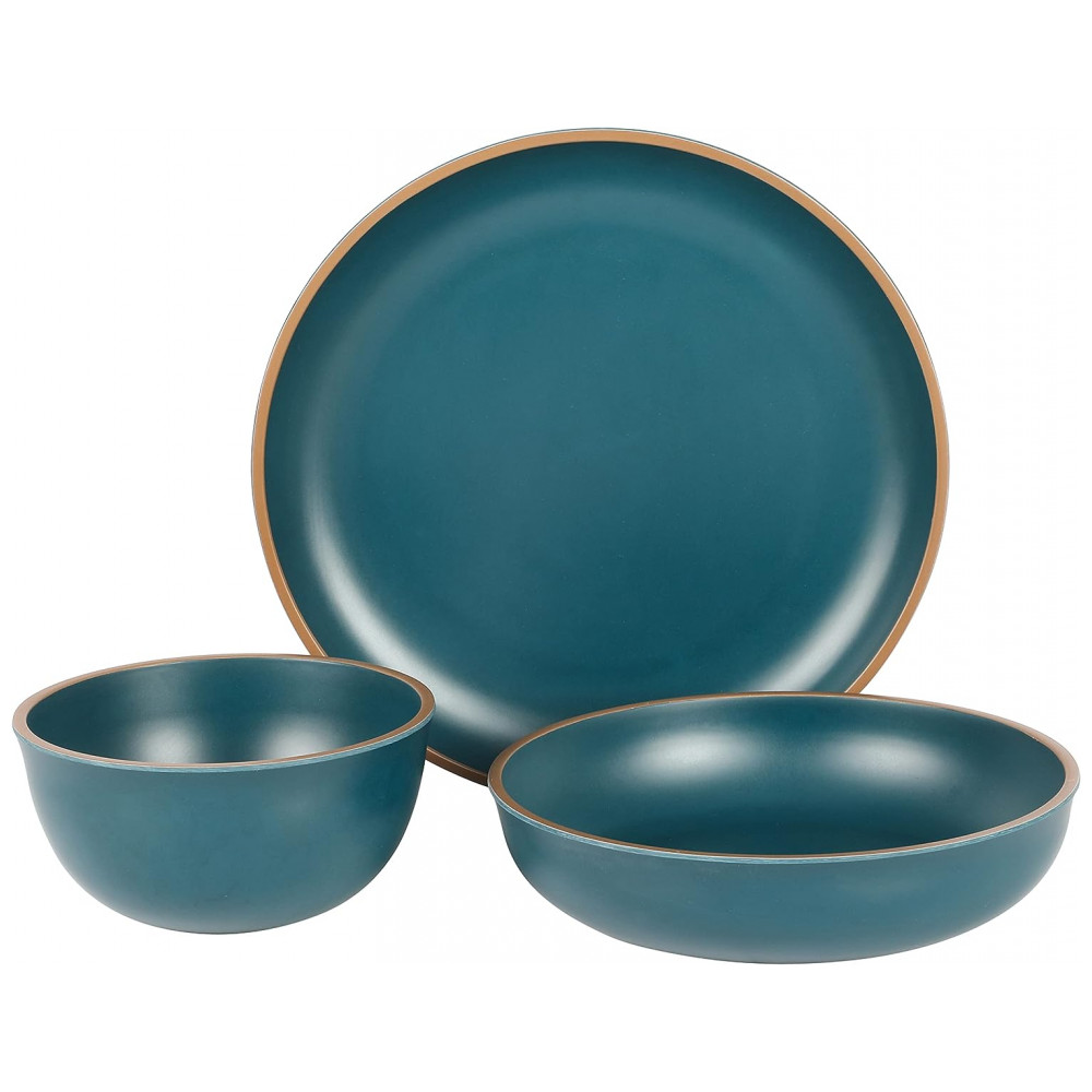 Aparelho de Jantar com 12 Peças em Melamina Gibson Home Rockabye Azul Petróleo Fosco