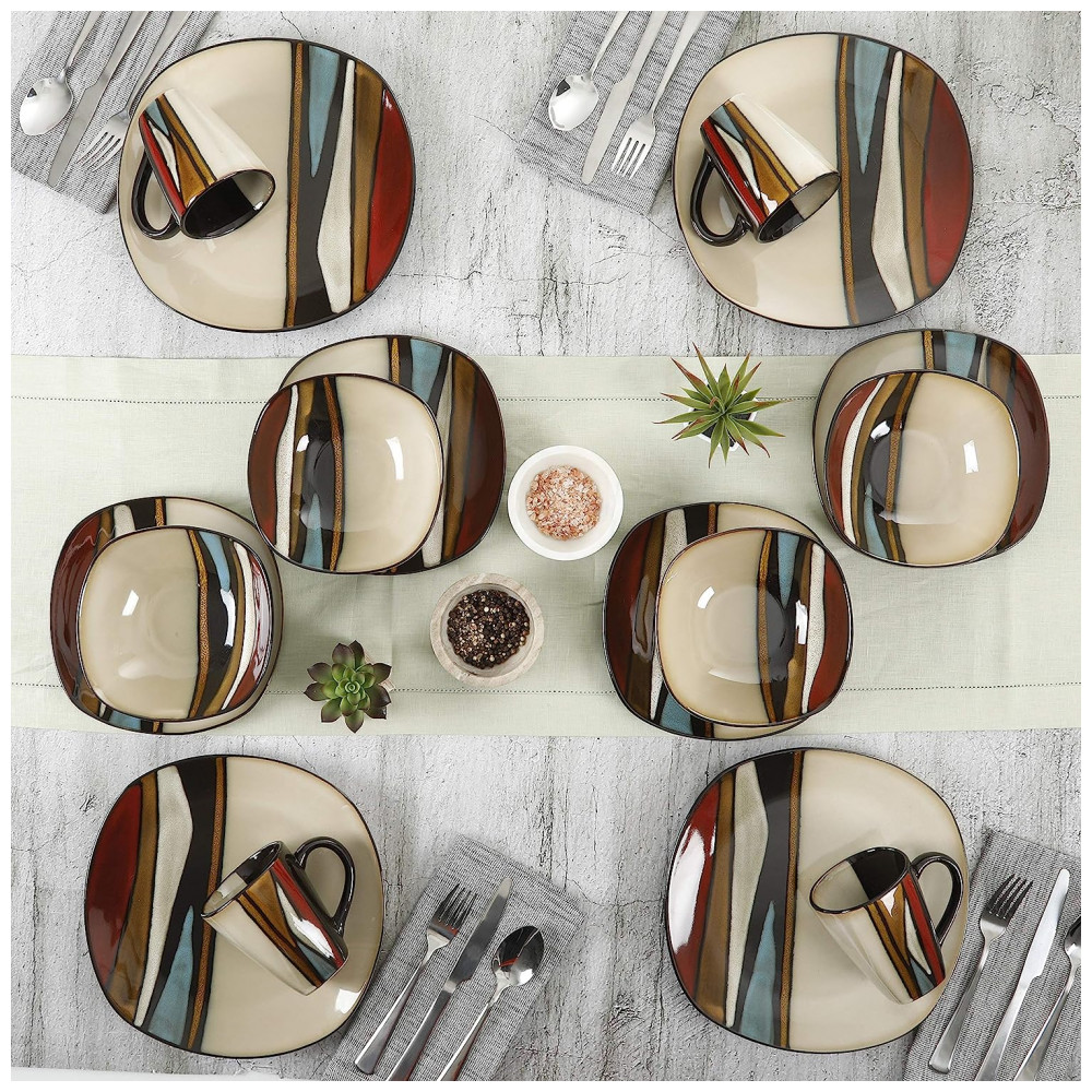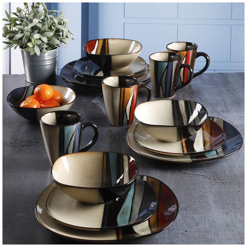 O QUE ESTÁ NA CAIXA: Serviço para 4 pessoas que inclui 4 de cada um dos seguintes: Pratos para jantar de 25 centímetros, Pratos para sobremesas de 20 centímetros, 16 centímetros ou 680 ml Tigelas, Canecas de 400 mL