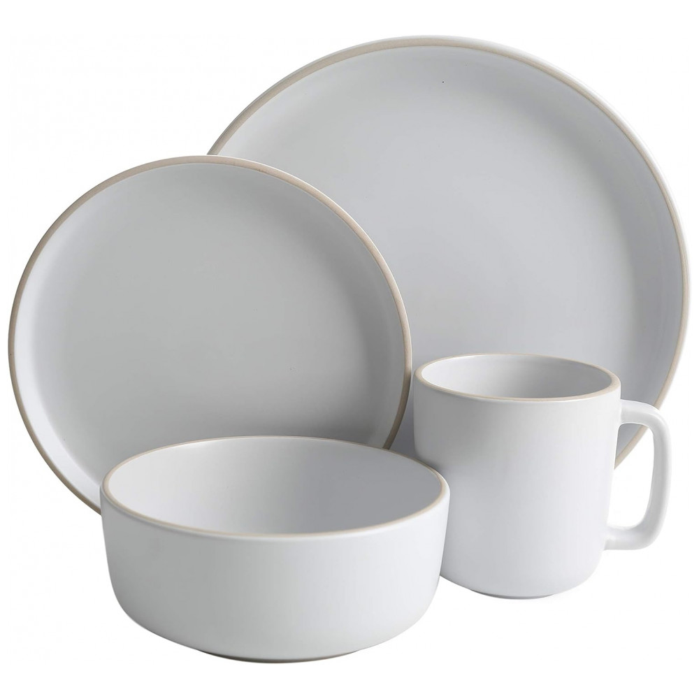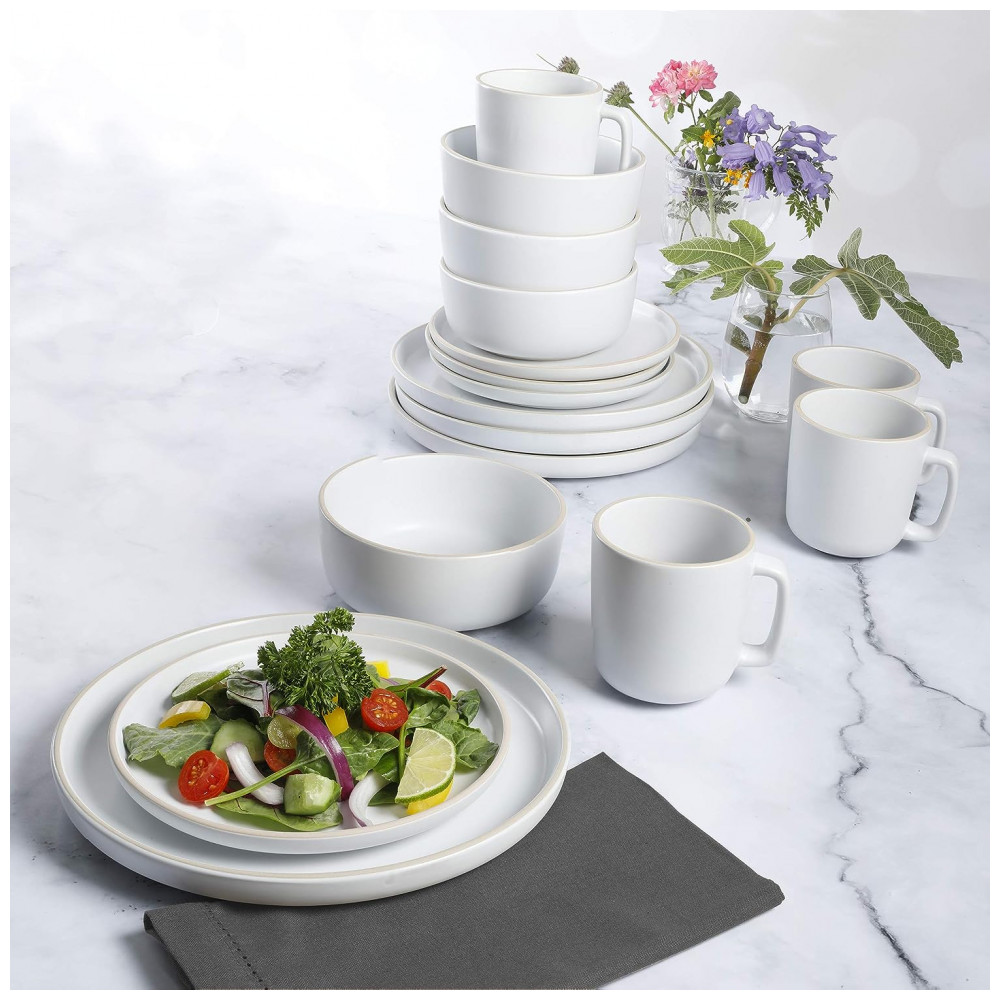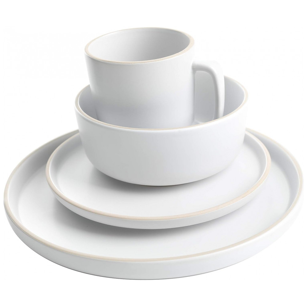 Aparelho de Jantar com 16 Peças em Cerâmica Faiança Incluindo Pratos Xícaras e Bowls Gibson Home Zuma Branco Fosco