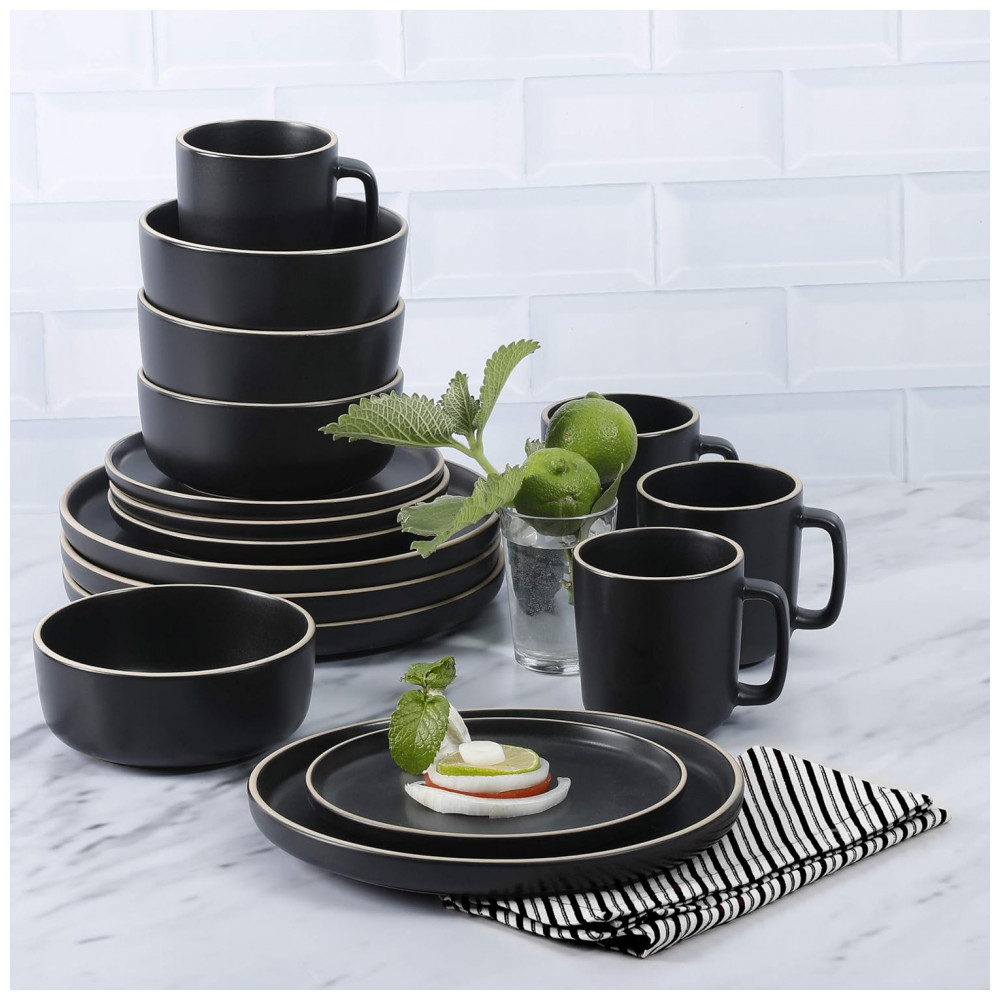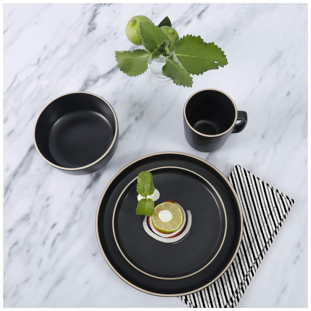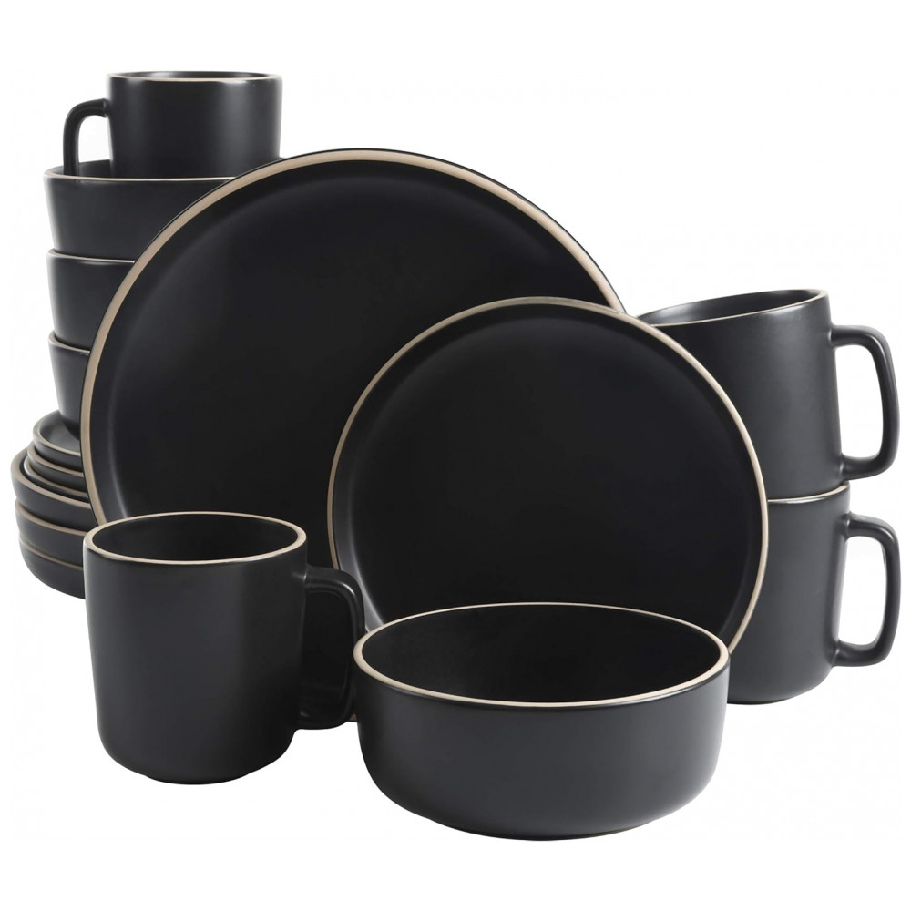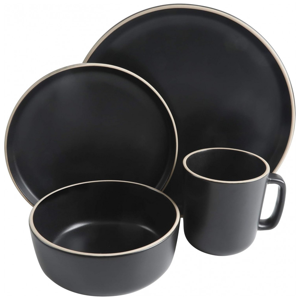Aparelho de Jantar com 16 Peças em Cerâmica Faiança Incluindo Pratos Xícaras e Bowls Gibson Home Zuma Preto
