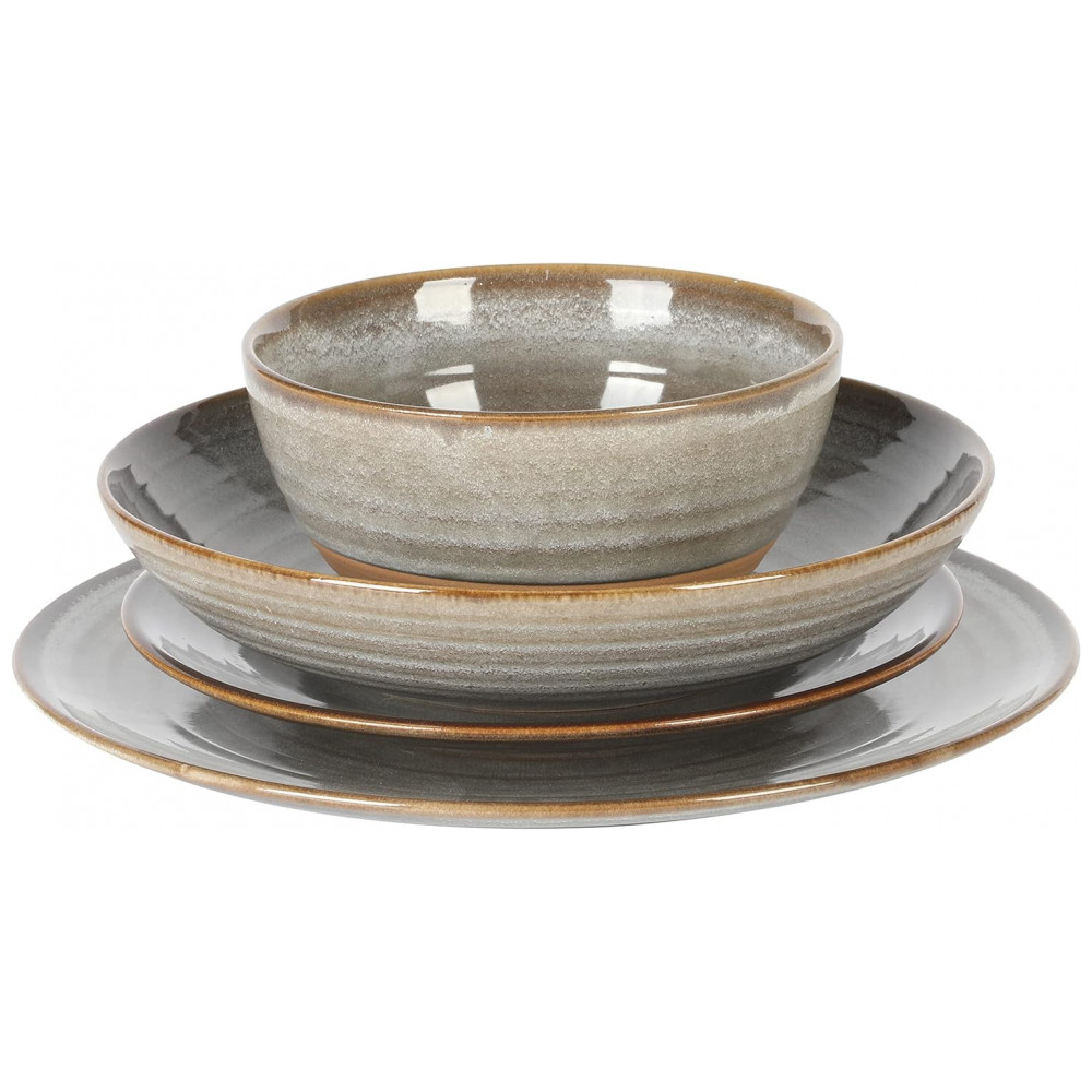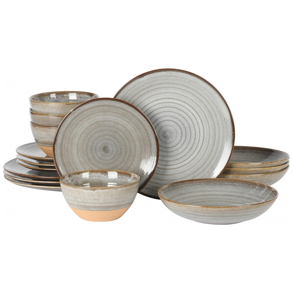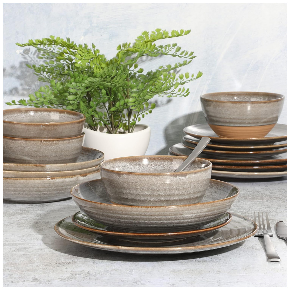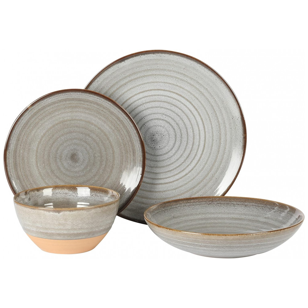 Aparelho de Jantar com 16 Peças em Cerâmica Faiança Reativa Gibson Dreamweaver Cinza