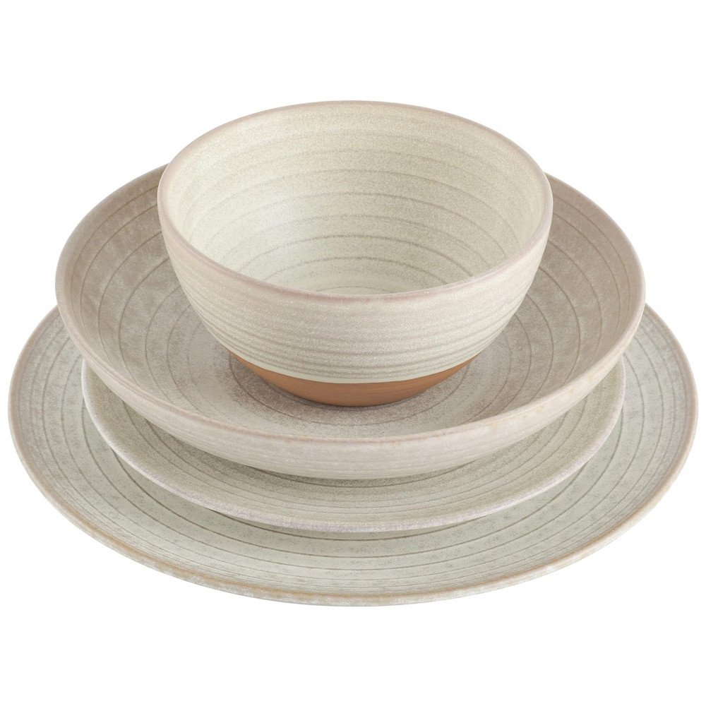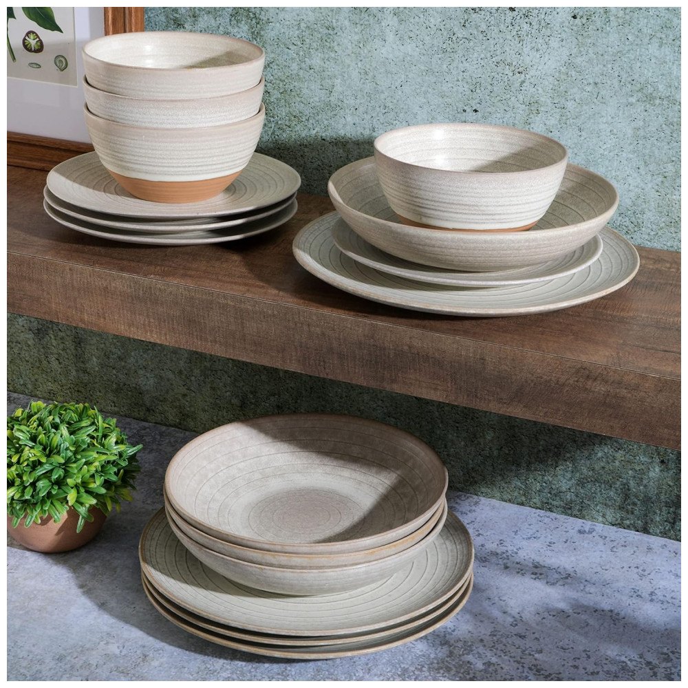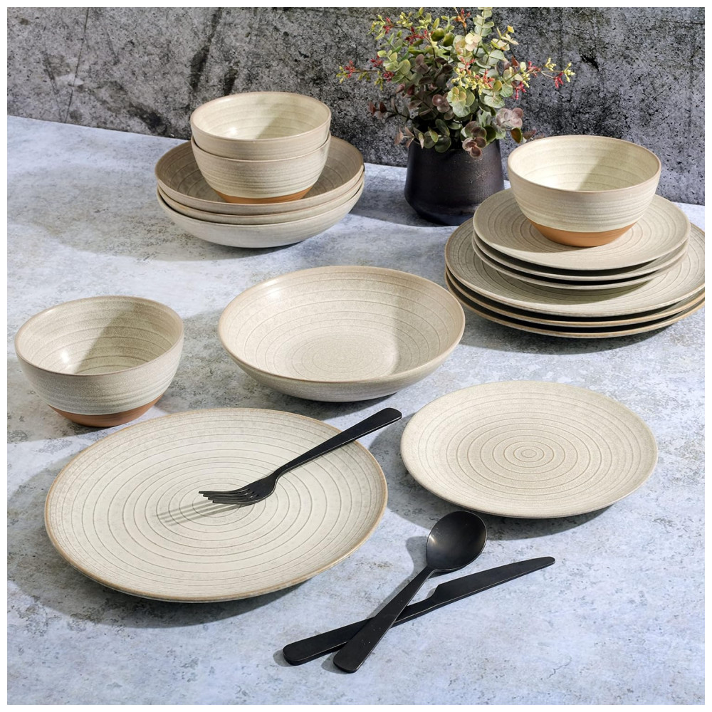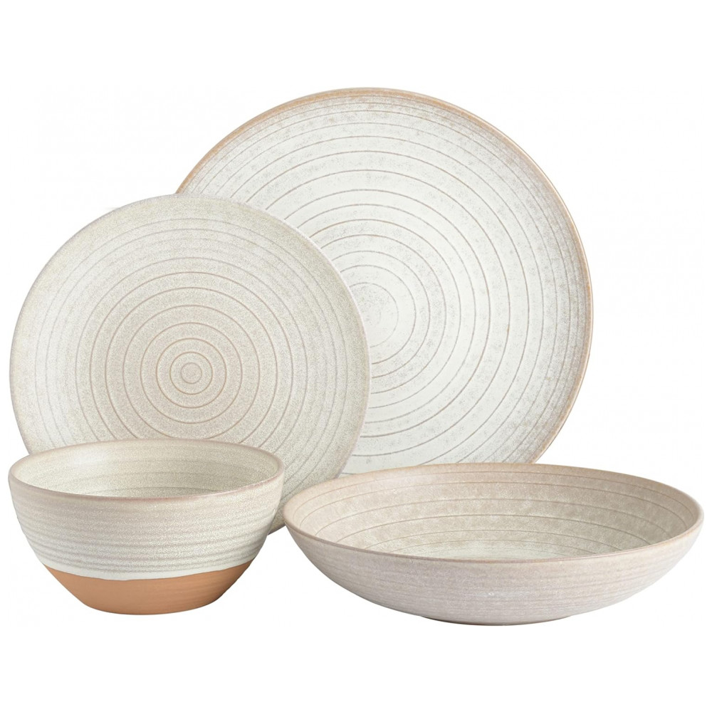 Aparelho de Jantar com 16 Peças em Cerâmica Faiança Reativa Gibson Dreamweaver Creme