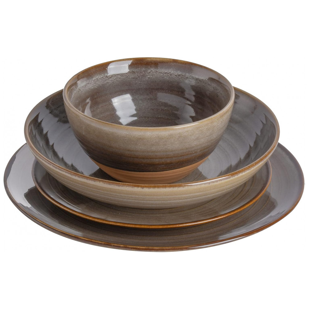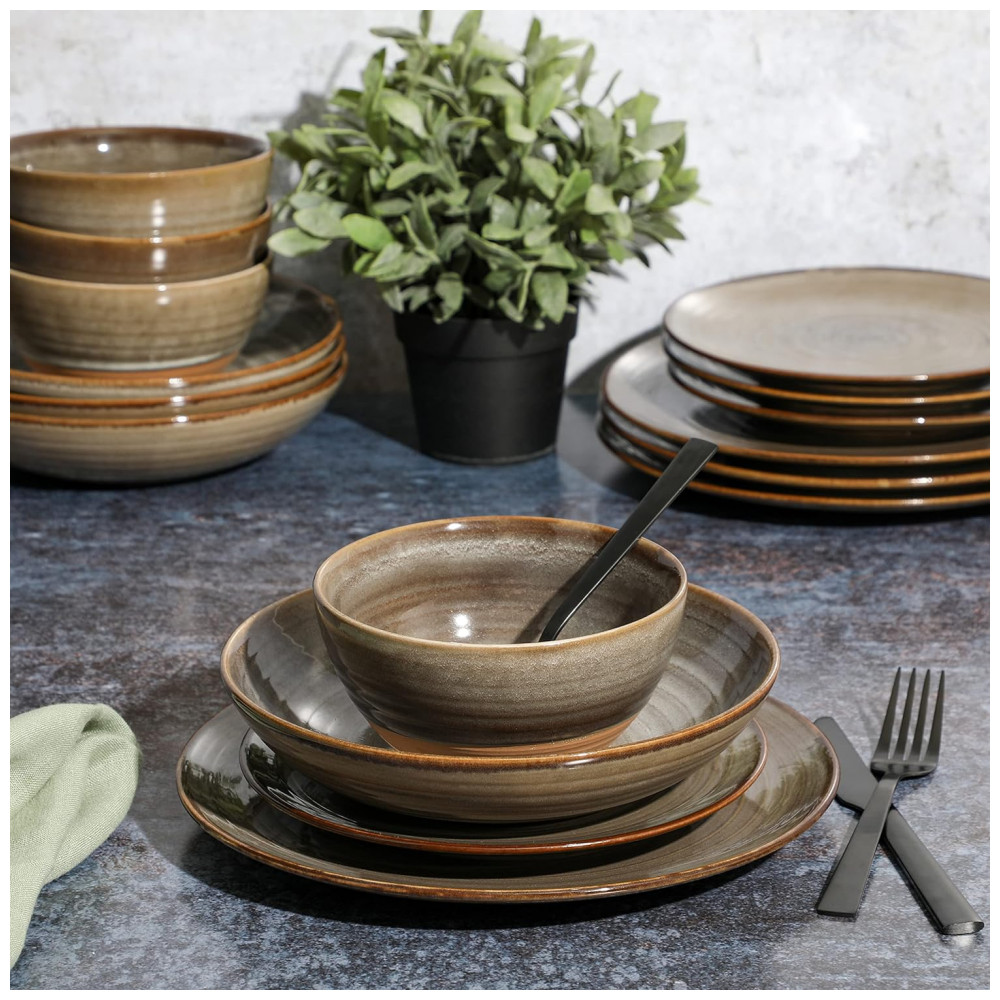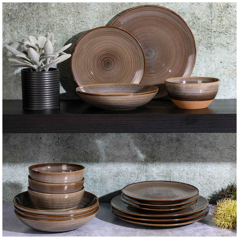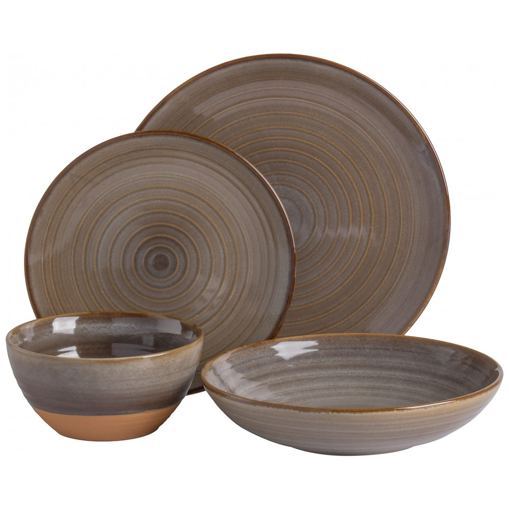 Aparelho de Jantar com 16 Peças em Cerâmica Faiança Reativa Gibson Dreamweaver Marrom