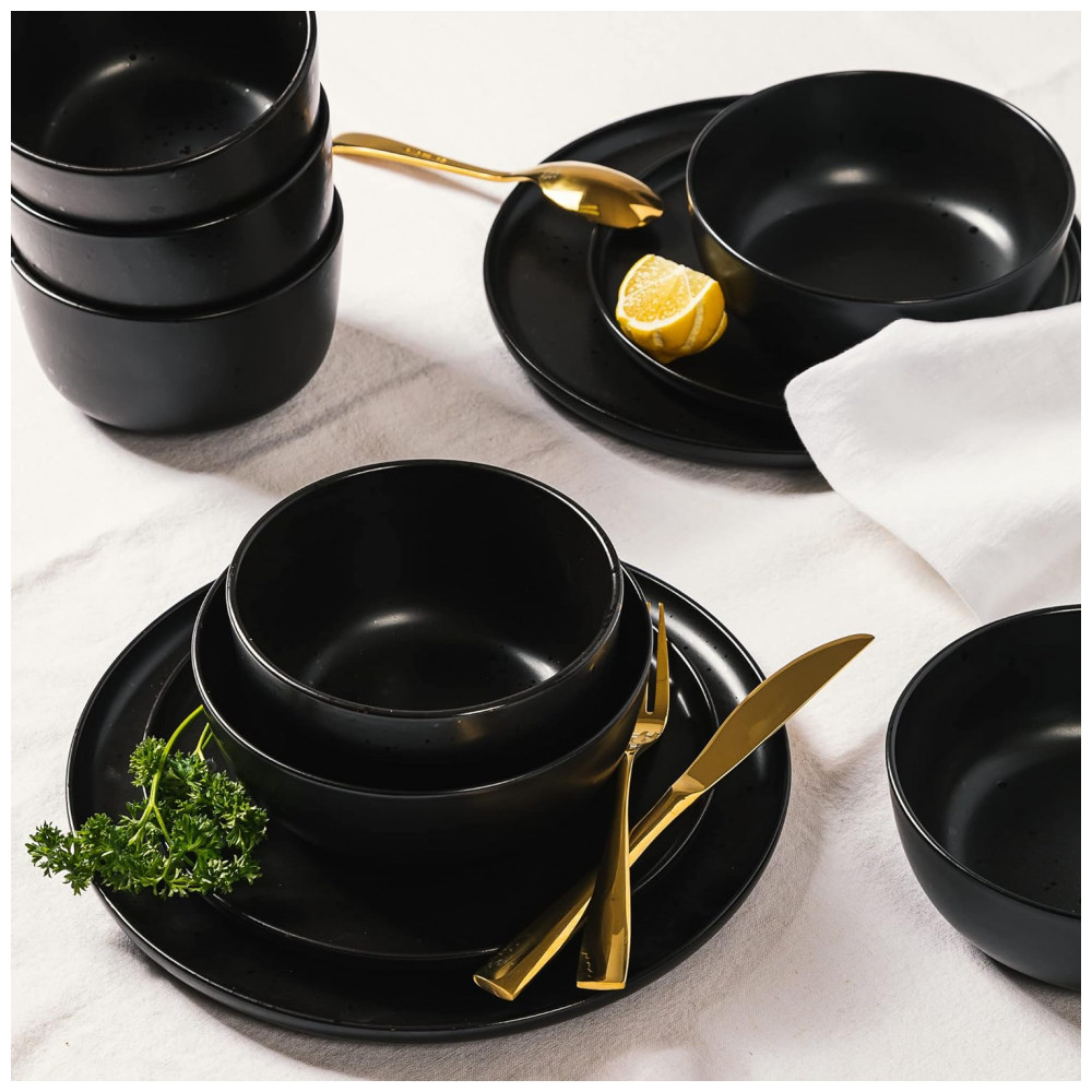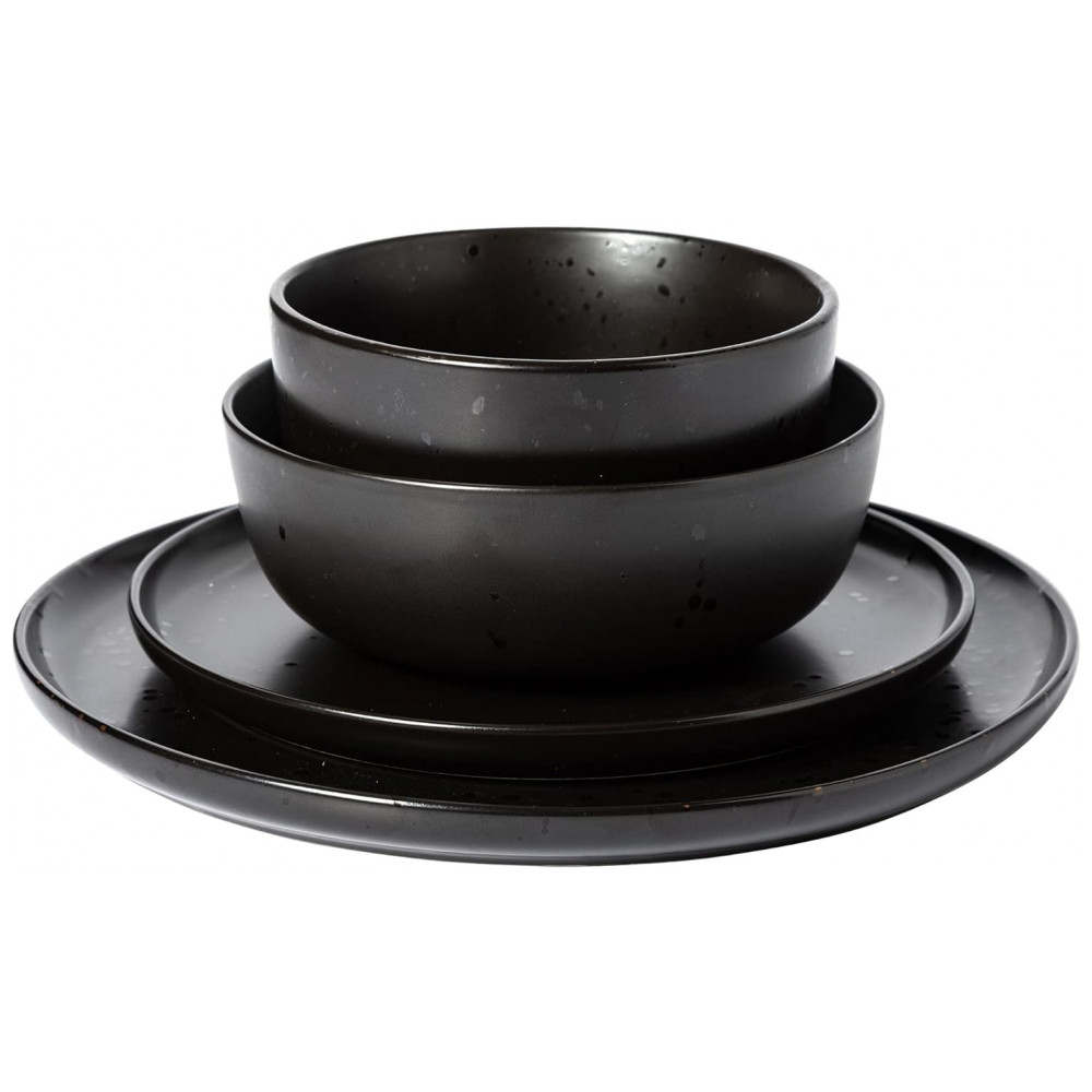 Aparelho de Jantar com 16 Peças em Cerâmica Faiança Reativa Serve 4 Pessoas Gibson Elite James Street Preto