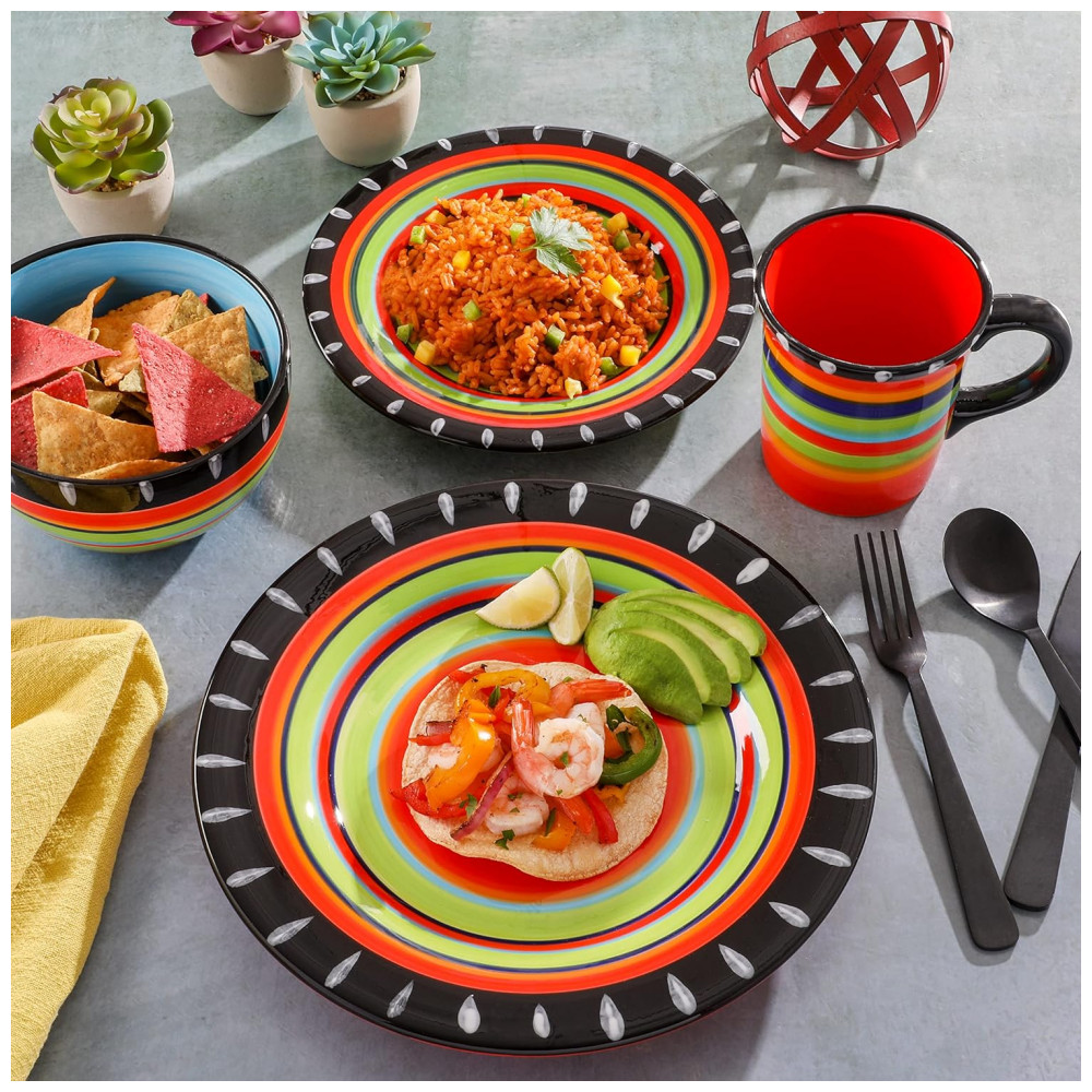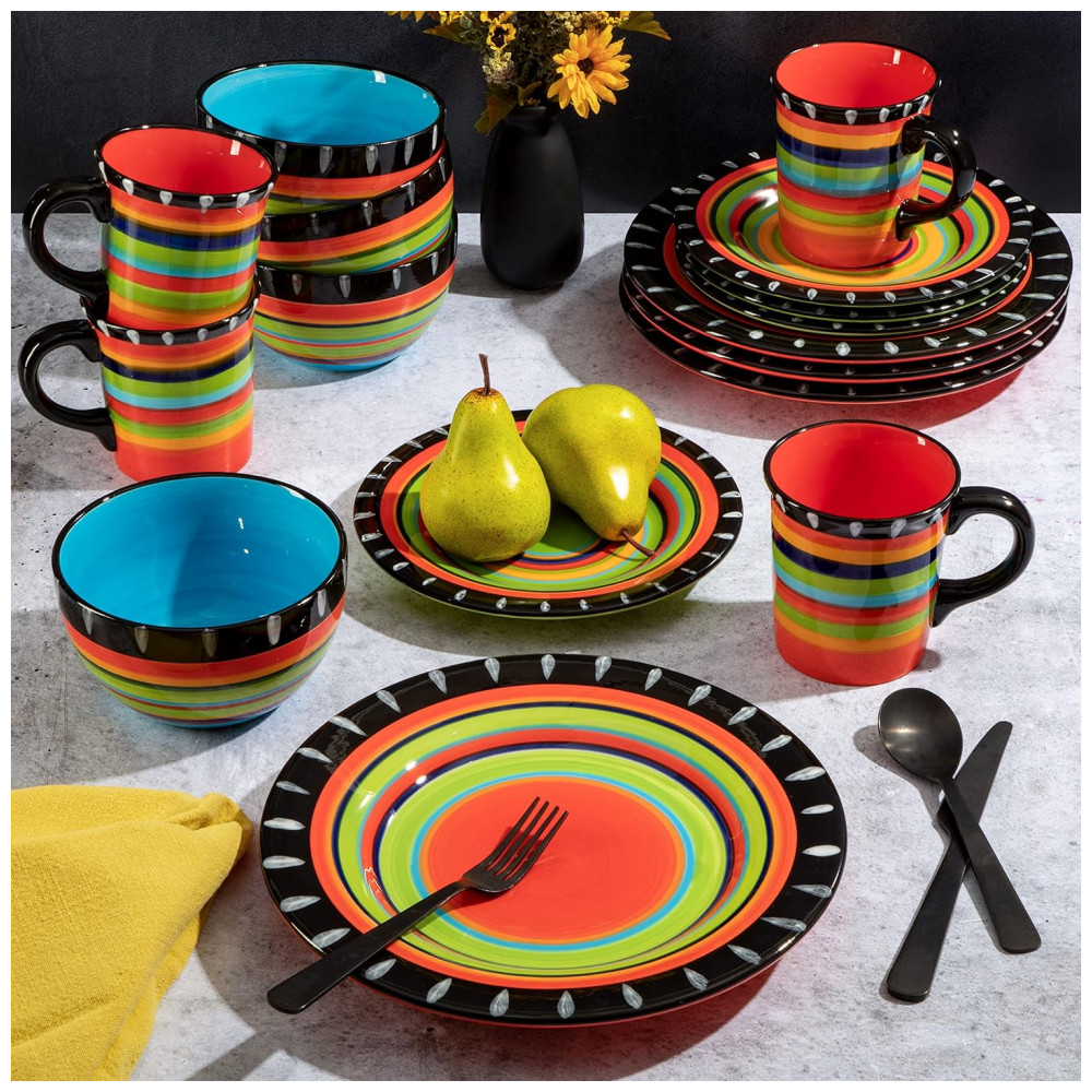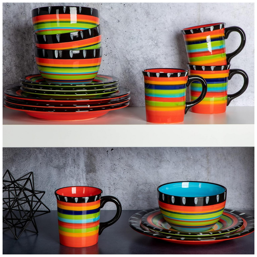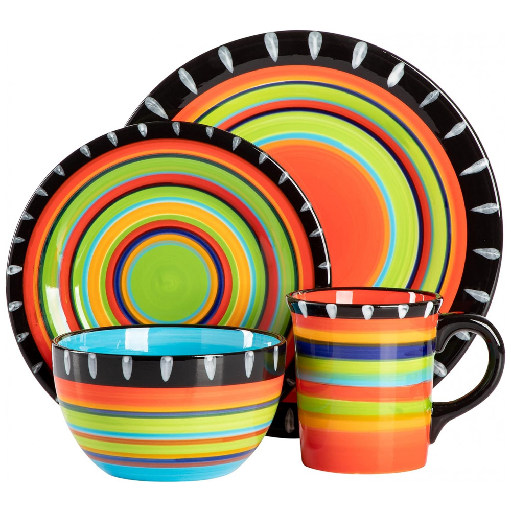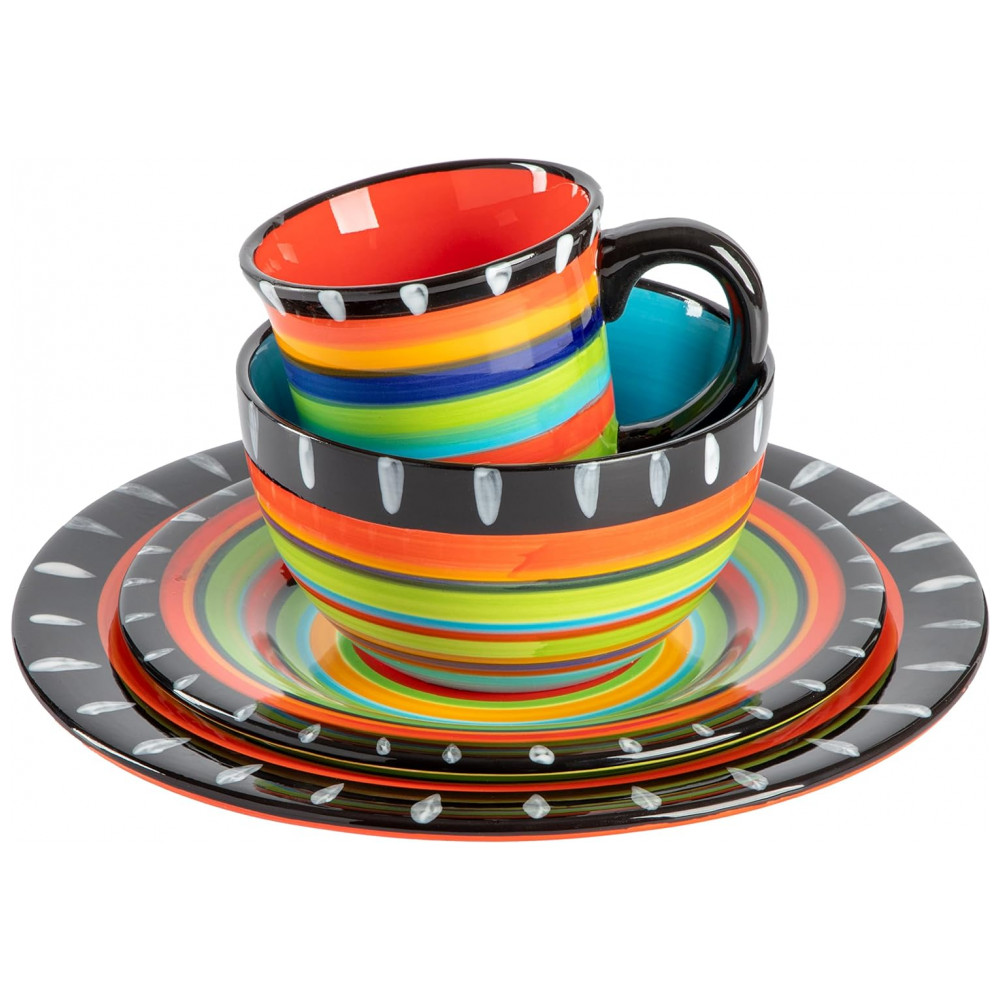 Aparelho de Jantar com 16 Peças em Cerâmica Pintadas a Mão Gibson Elite Feliz Colorido