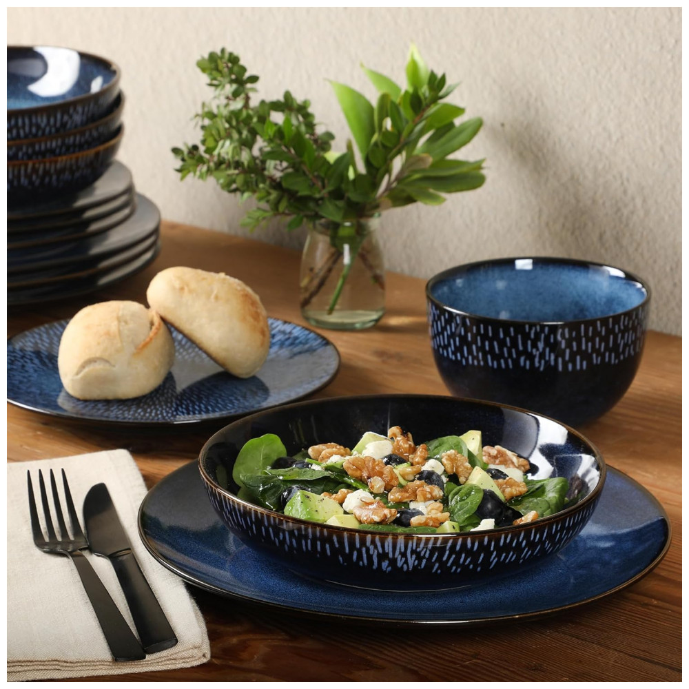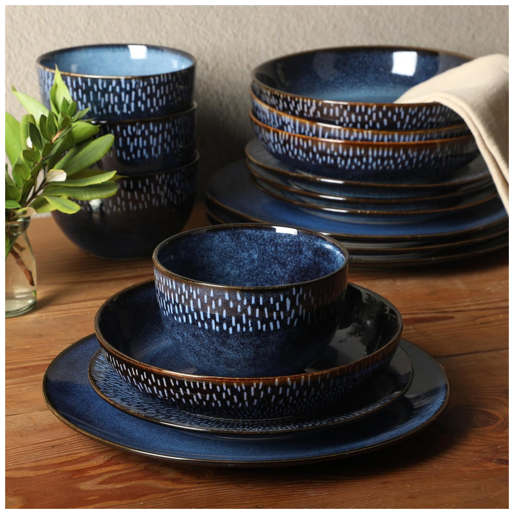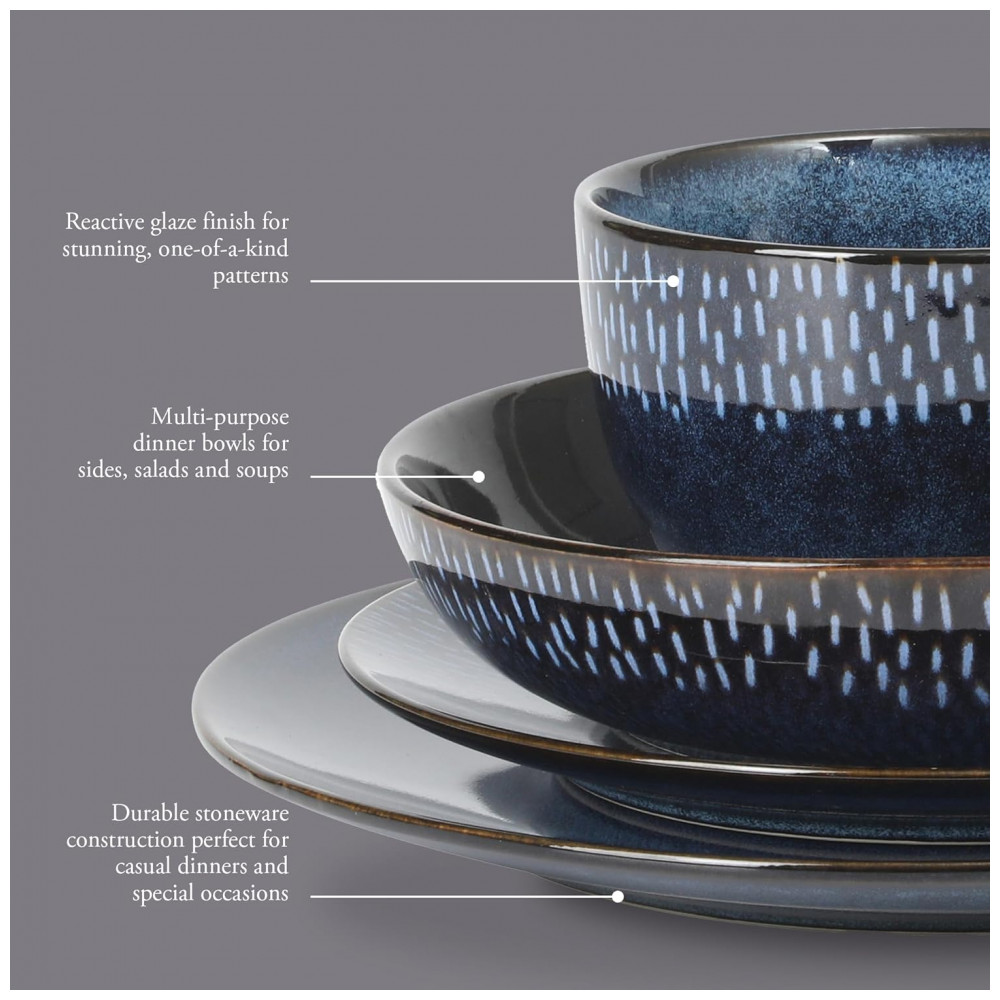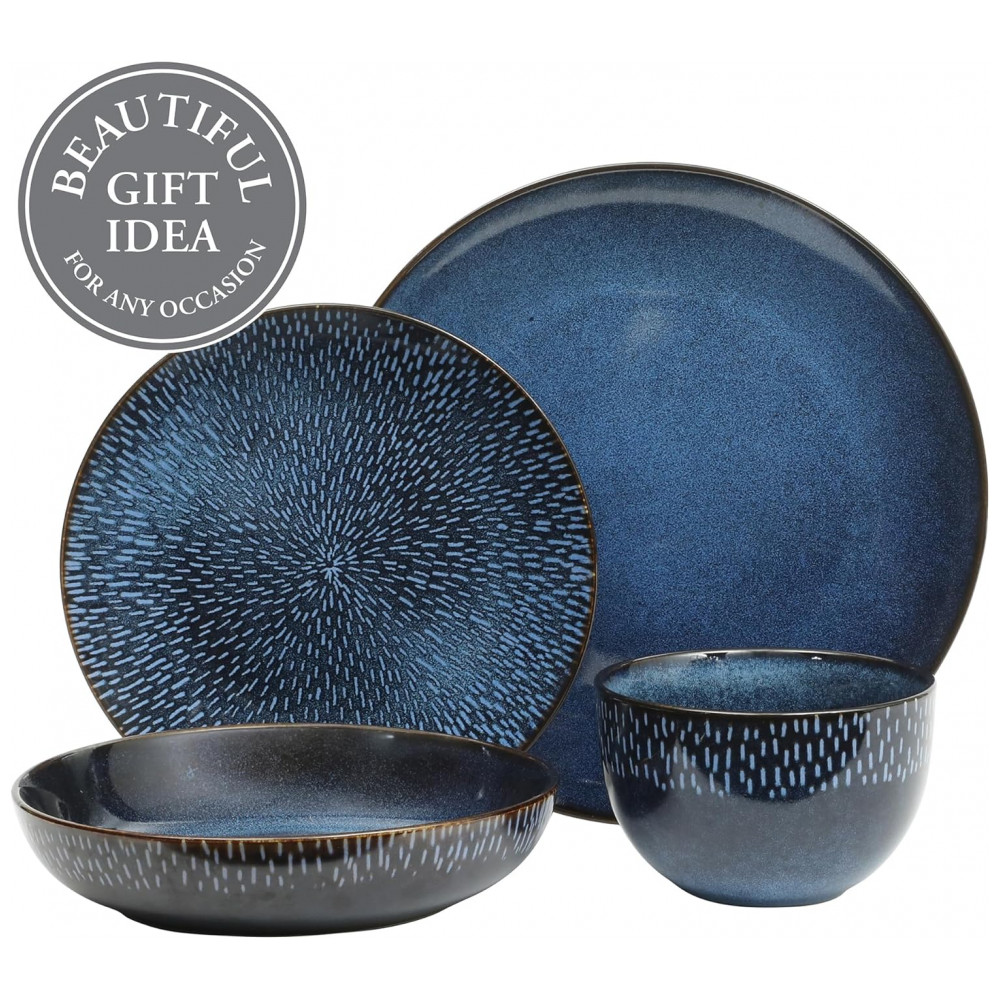 Aparelho de Jantar com 16 Peças em Cerâmica Reativa Serve 4 Pessoas Gibson Elite Matisse Azul