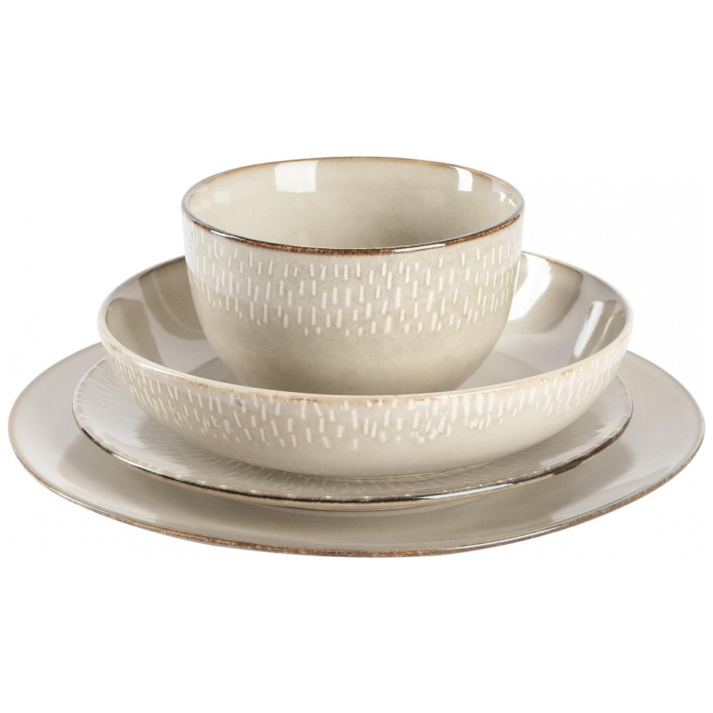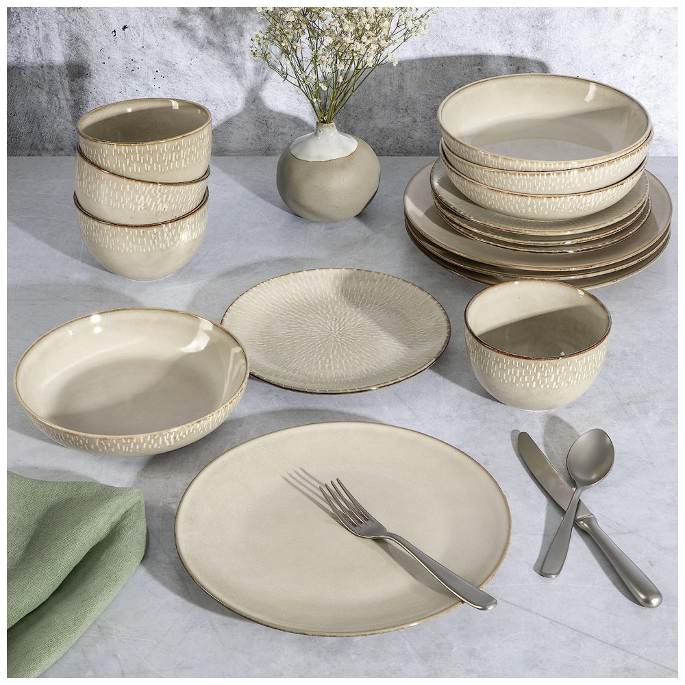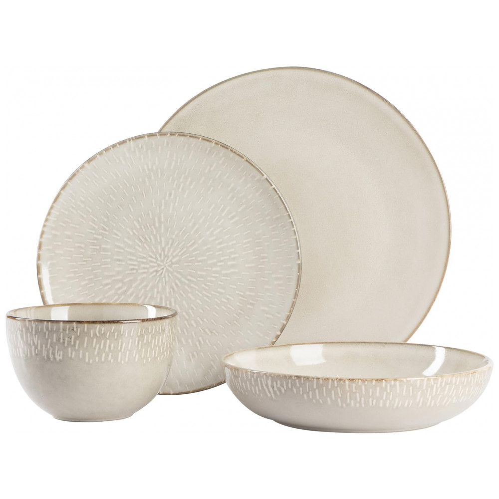 Aparelho de Jantar com 16 Peças em Cerâmica Reativa Serve 4 Pessoas Gibson Elite Matisse Bege