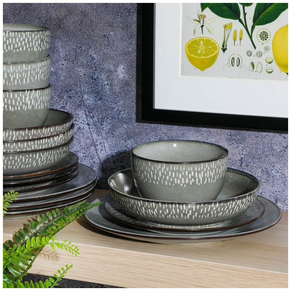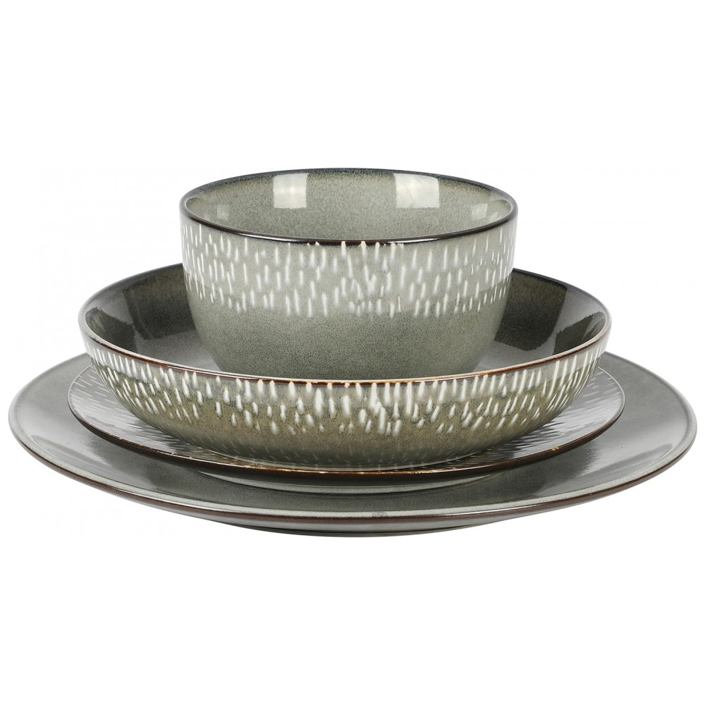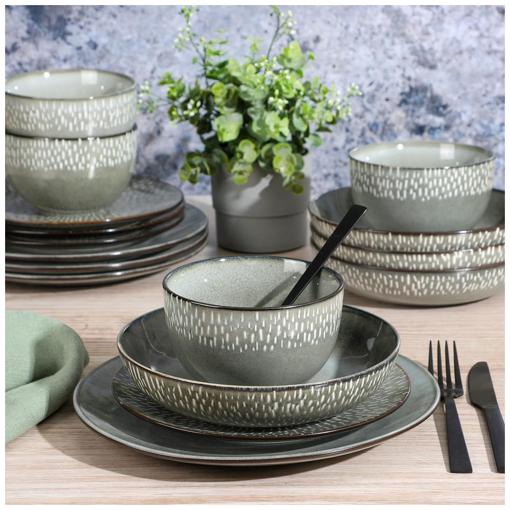 Aparelho de Jantar com 16 Peças em Cerâmica Reativa Serve 4 Pessoas Gibson Elite Matisse Verde