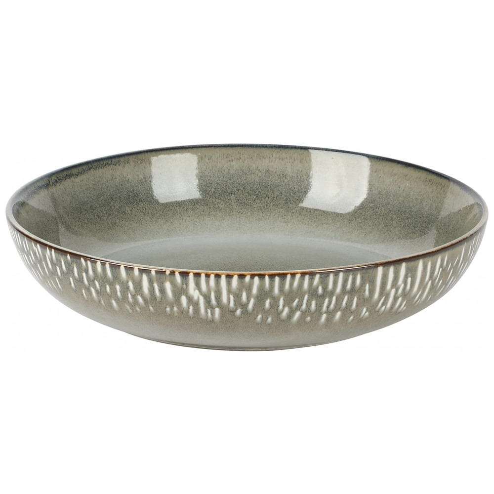 Grés, vidrado reativo : reativo refere se a uma técnica em que várias cores dentro do esmalte reagem juntas para criar uma qualidade onírica e vibrante para as cores e matizes. Como resultado da natureza reativa do esmalte, cada peça de grés é única. A alta temperatura de queima, construção espessa e mistura de argilas totalmente naturais tornam o grés um material incrivelmente durável.