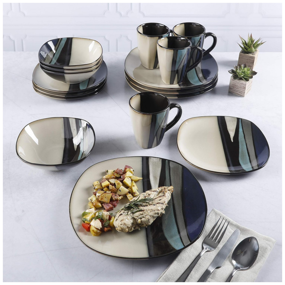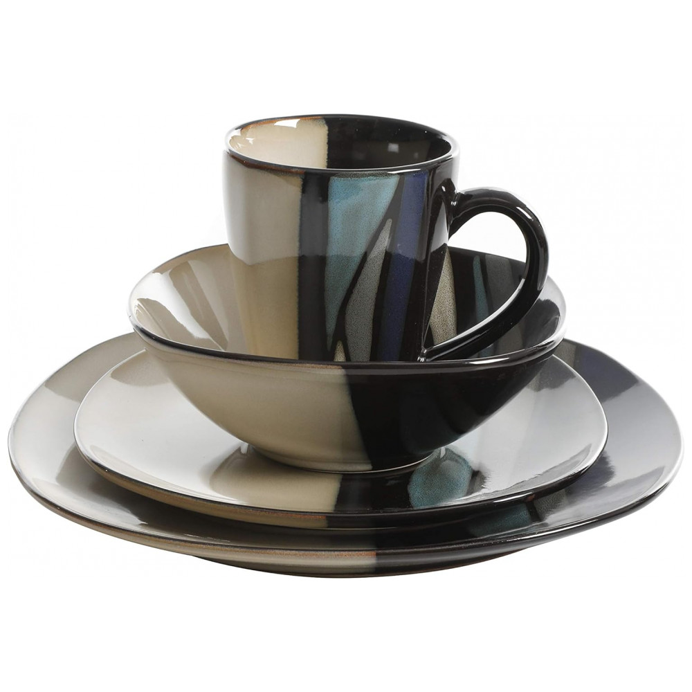 Aparelho de Jantar com 16 Peças em Cerâmica Serve 4 Pessoas Gibson Elite Althea Azul