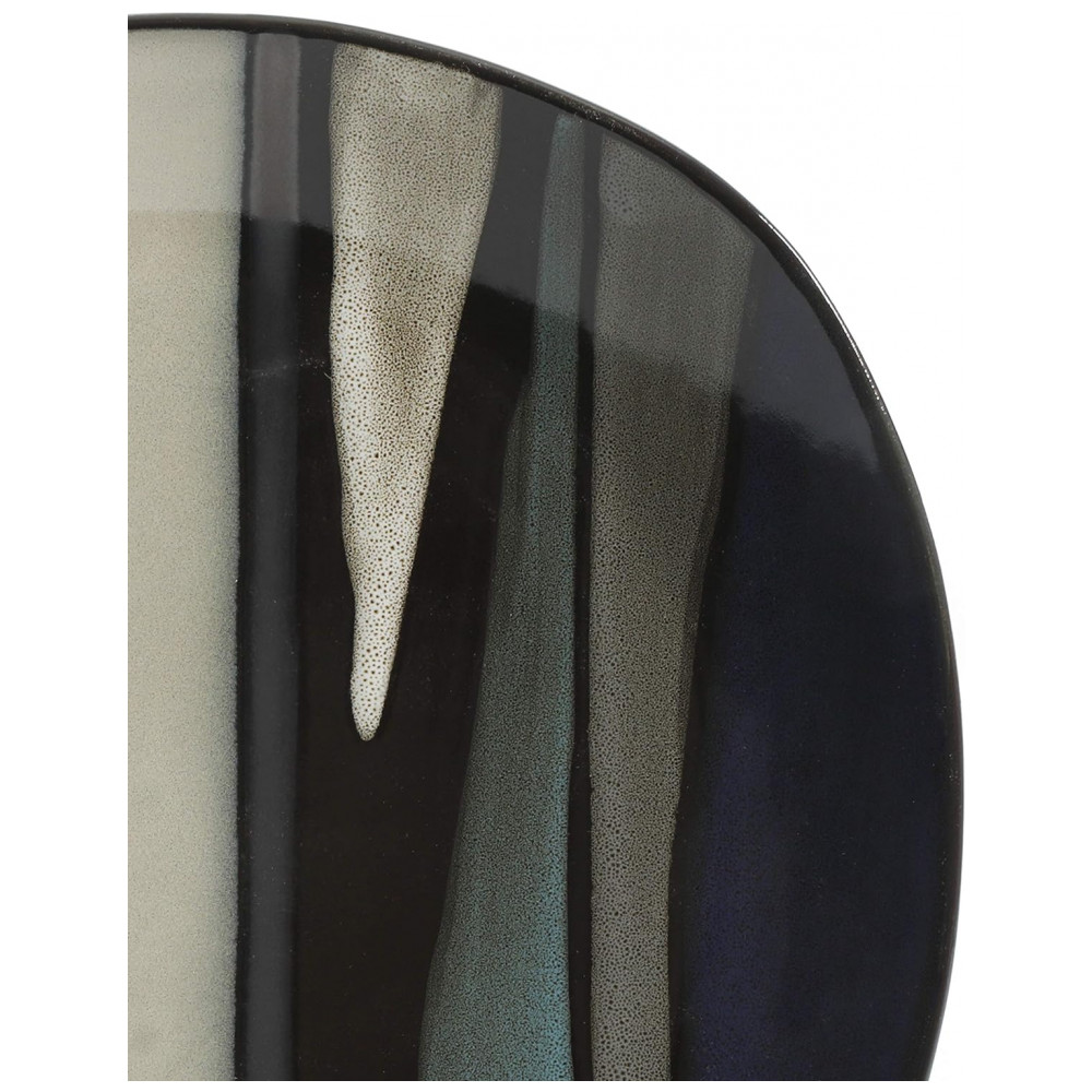 Grés, vidrado reativo : reativo refere se a uma técnica em que várias cores dentro do esmalte reagem juntas para criar uma qualidade vibrante para as cores e matizes. Como resultado da natureza reativa do esmalte, cada peça de grés é única.
