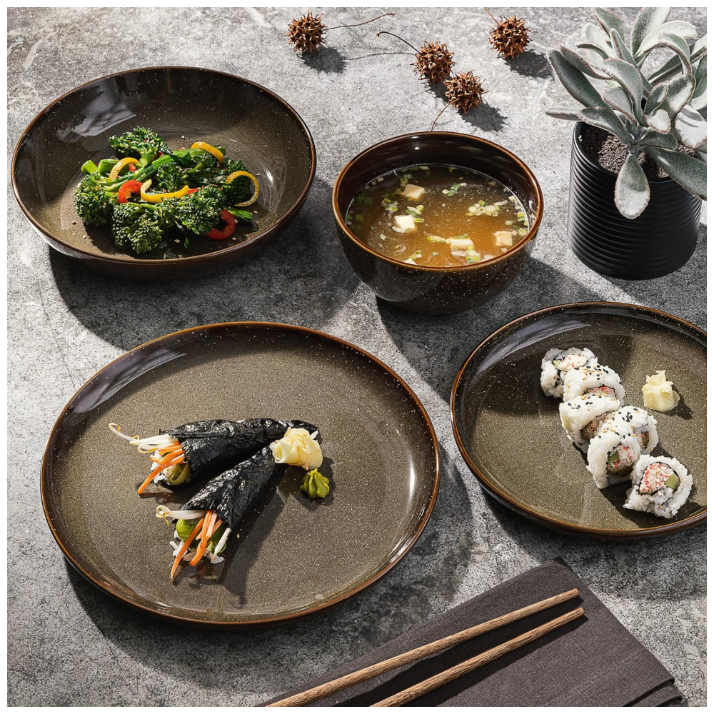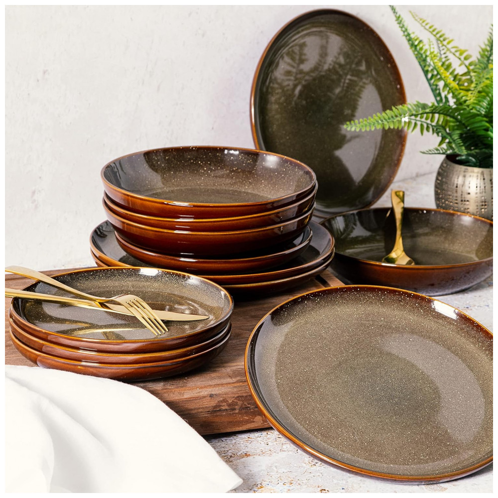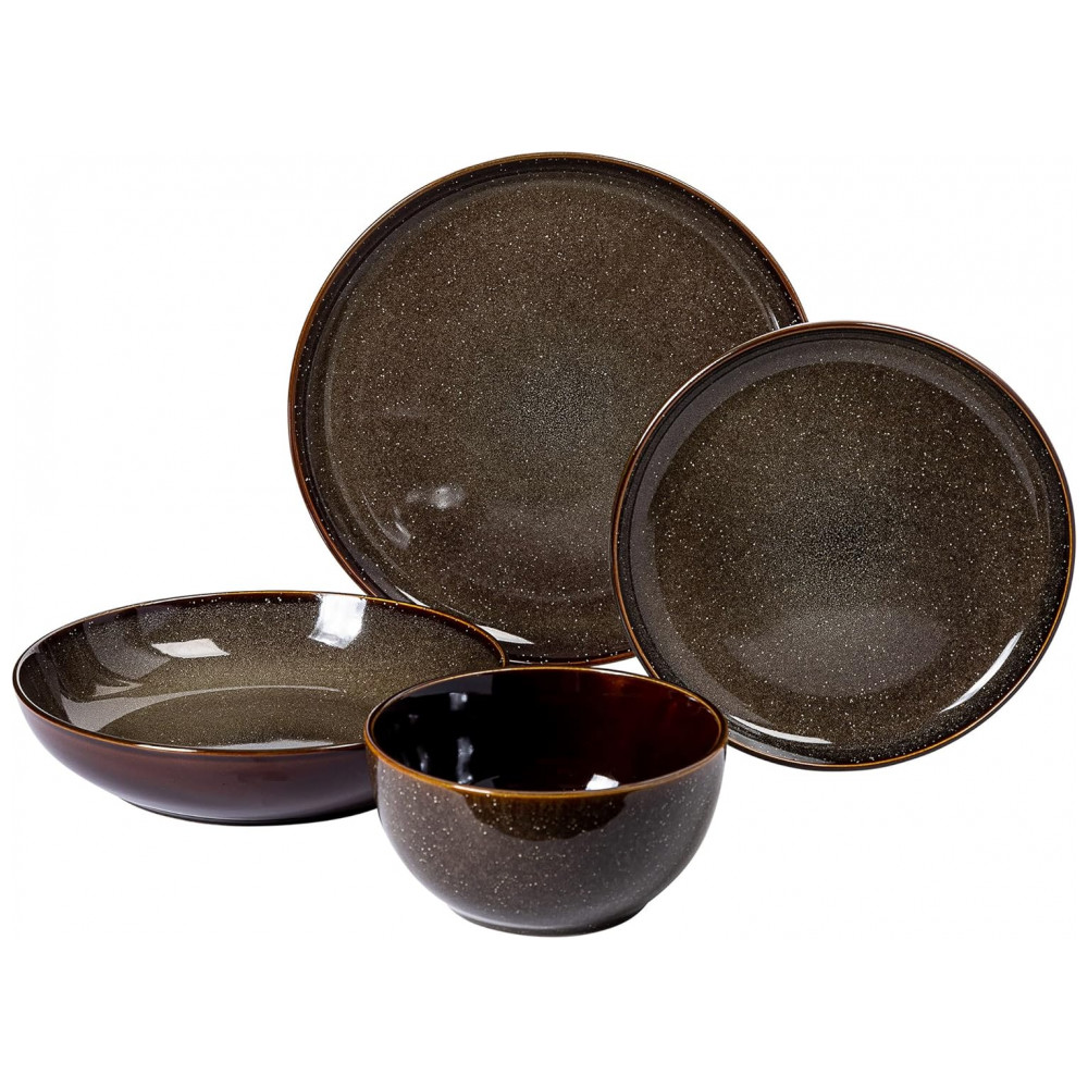 Aparelho de Jantar com 16 Peças em Cerâmica Serve 4 Pessoas, Gibson Elite Edwina, Marrom