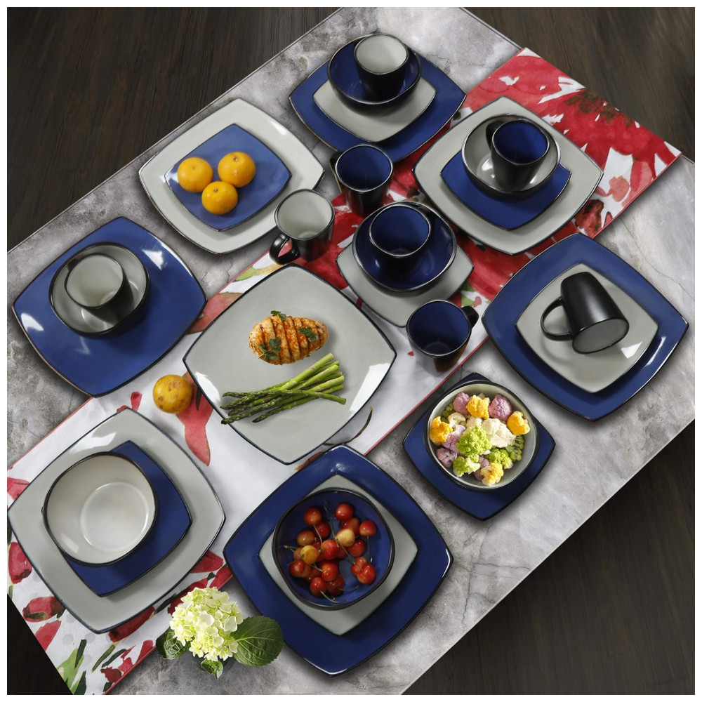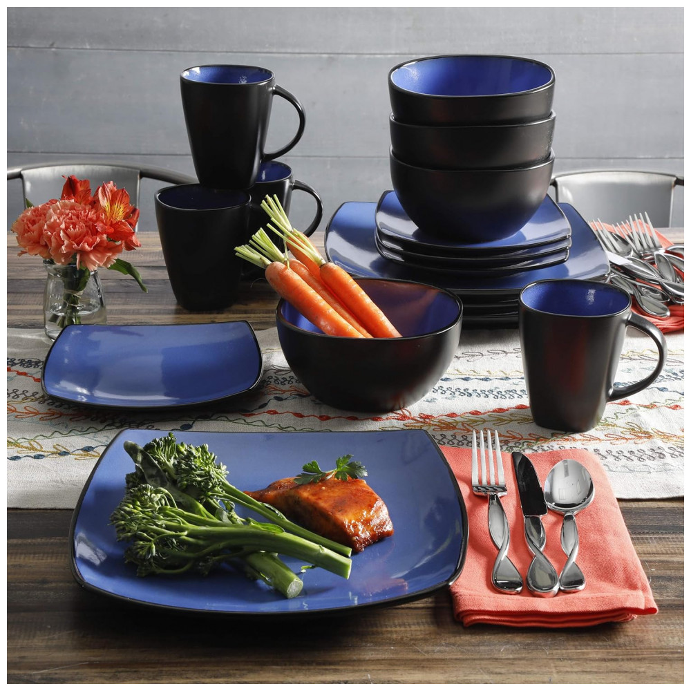Aparelho de Jantar com 16 Peças em Cerâmica Serve 4 Pessoas Gibson Elite Soho Azul