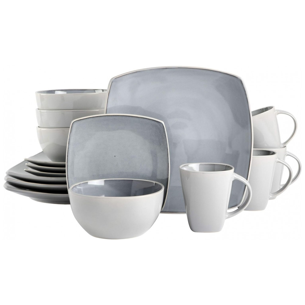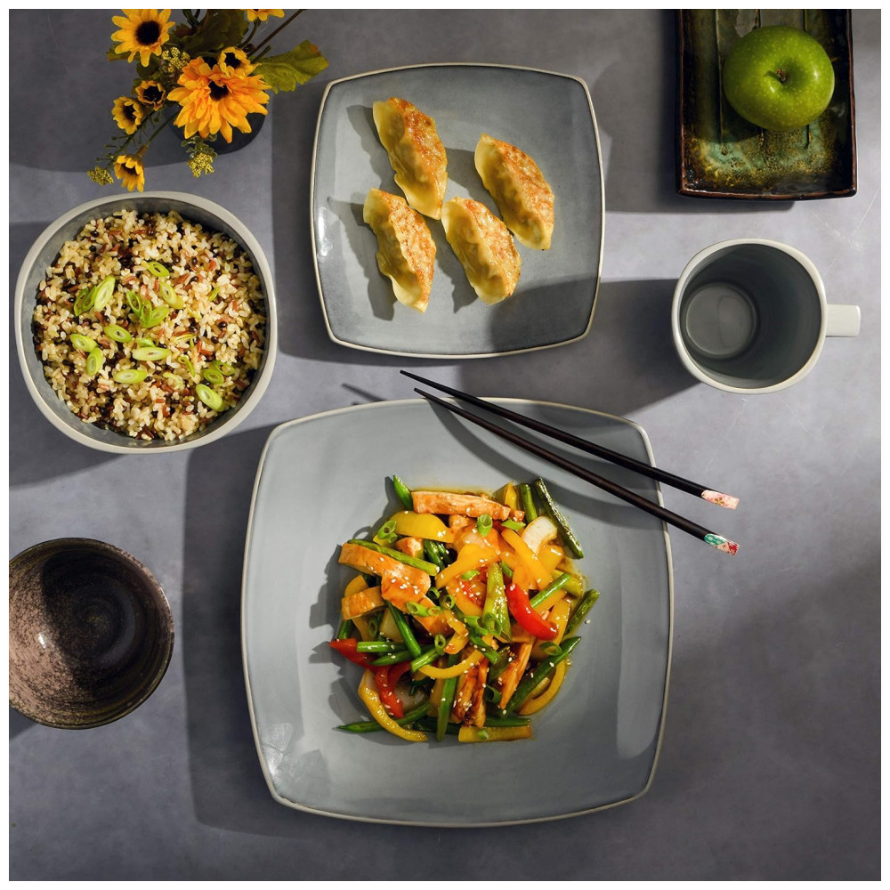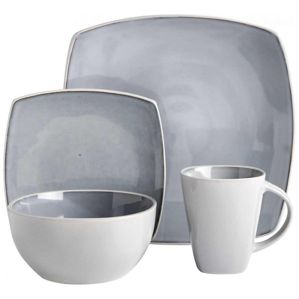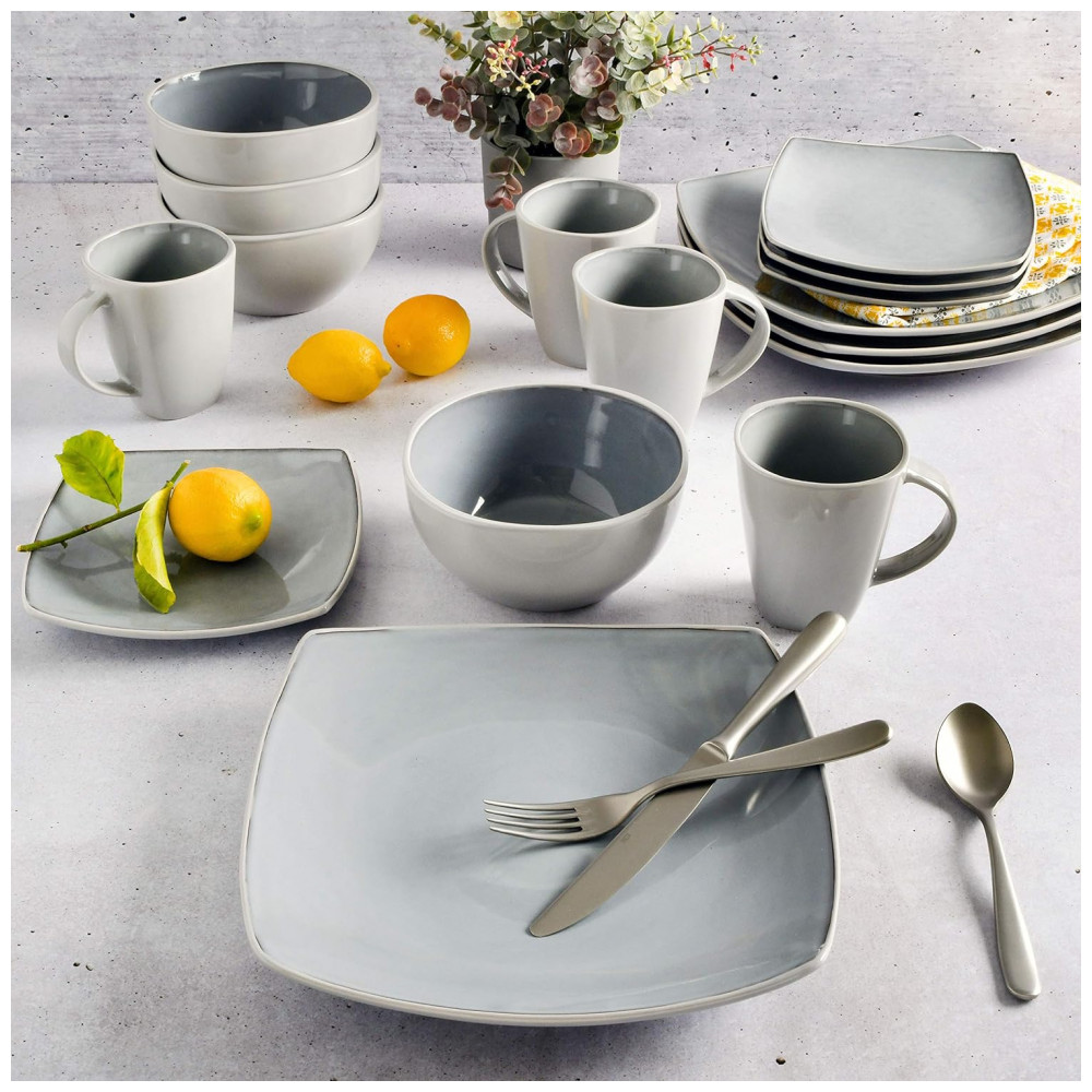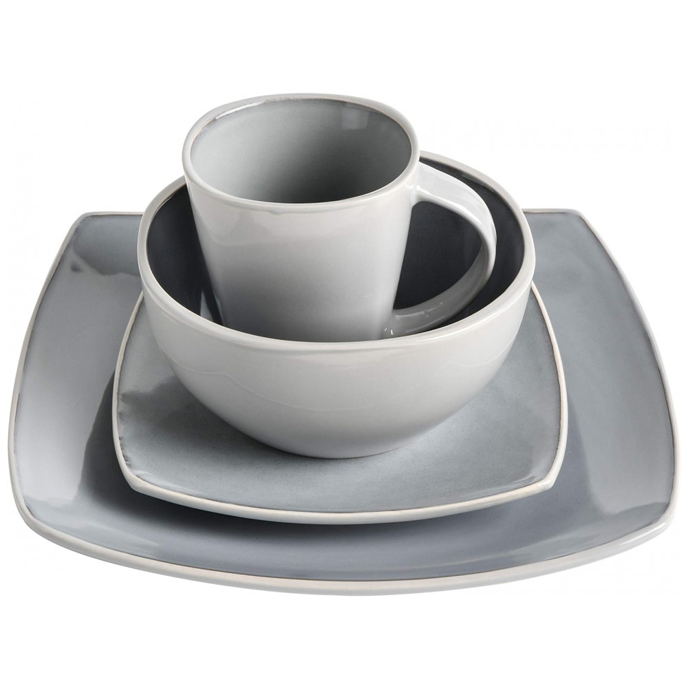 Aparelho de Jantar com 16 Peças em Cerâmica Serve 4 Pessoas Gibson Elite Soho Cinza Claro