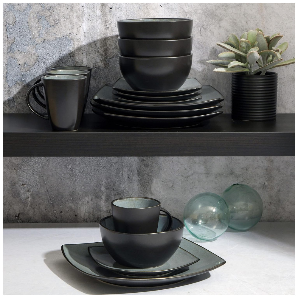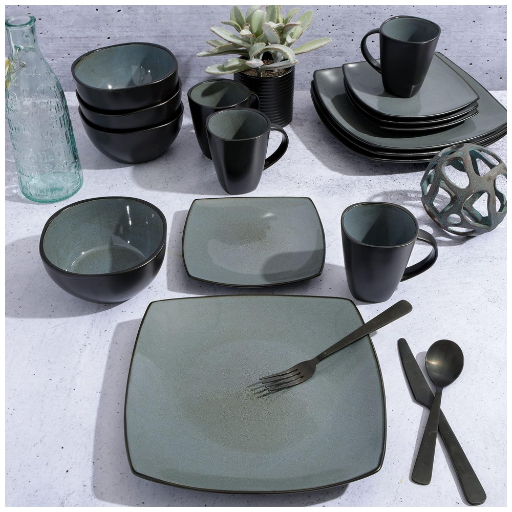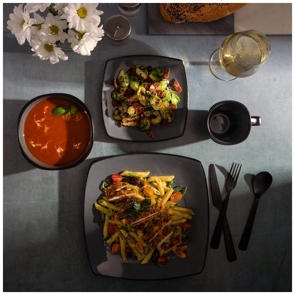 Aparelho de Jantar com 16 Peças em Cerâmica Serve 4 Pessoas Gibson Elite Soho Cinza Eclipse