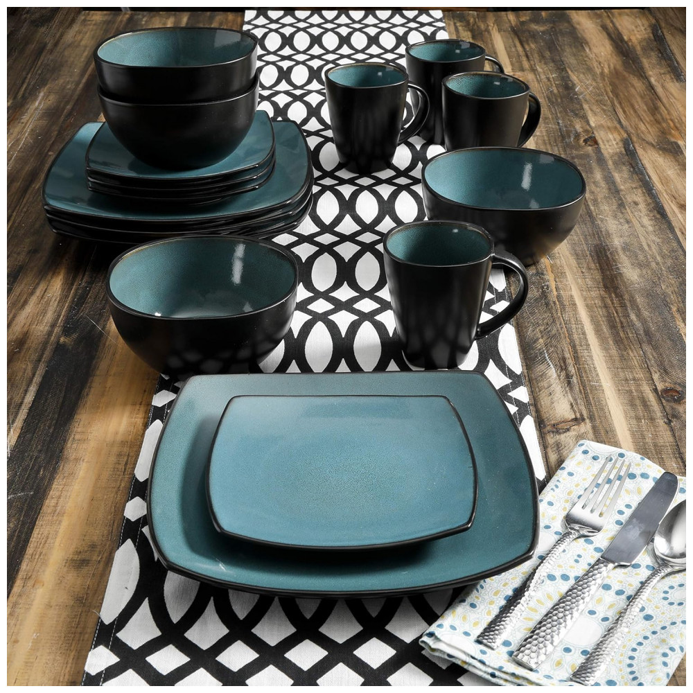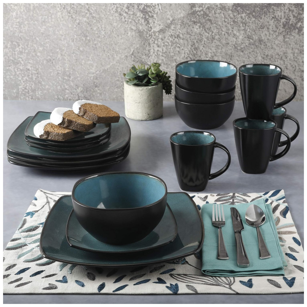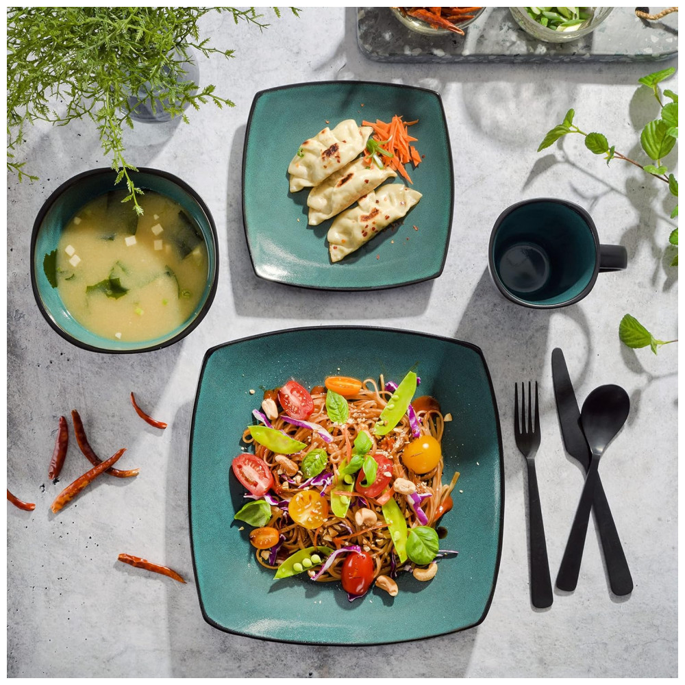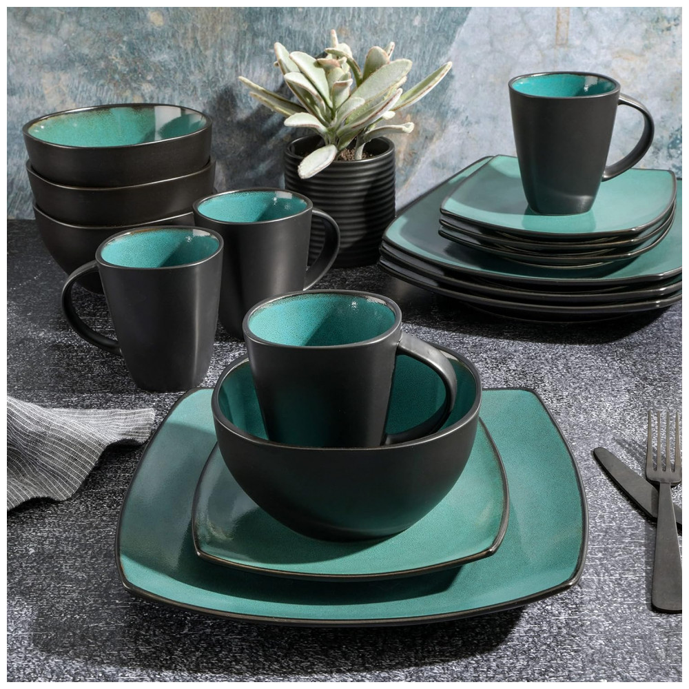 Aparelho de Jantar com 16 Peças em Cerâmica Serve 4 Pessoas Gibson Elite Soho Preto e Verde