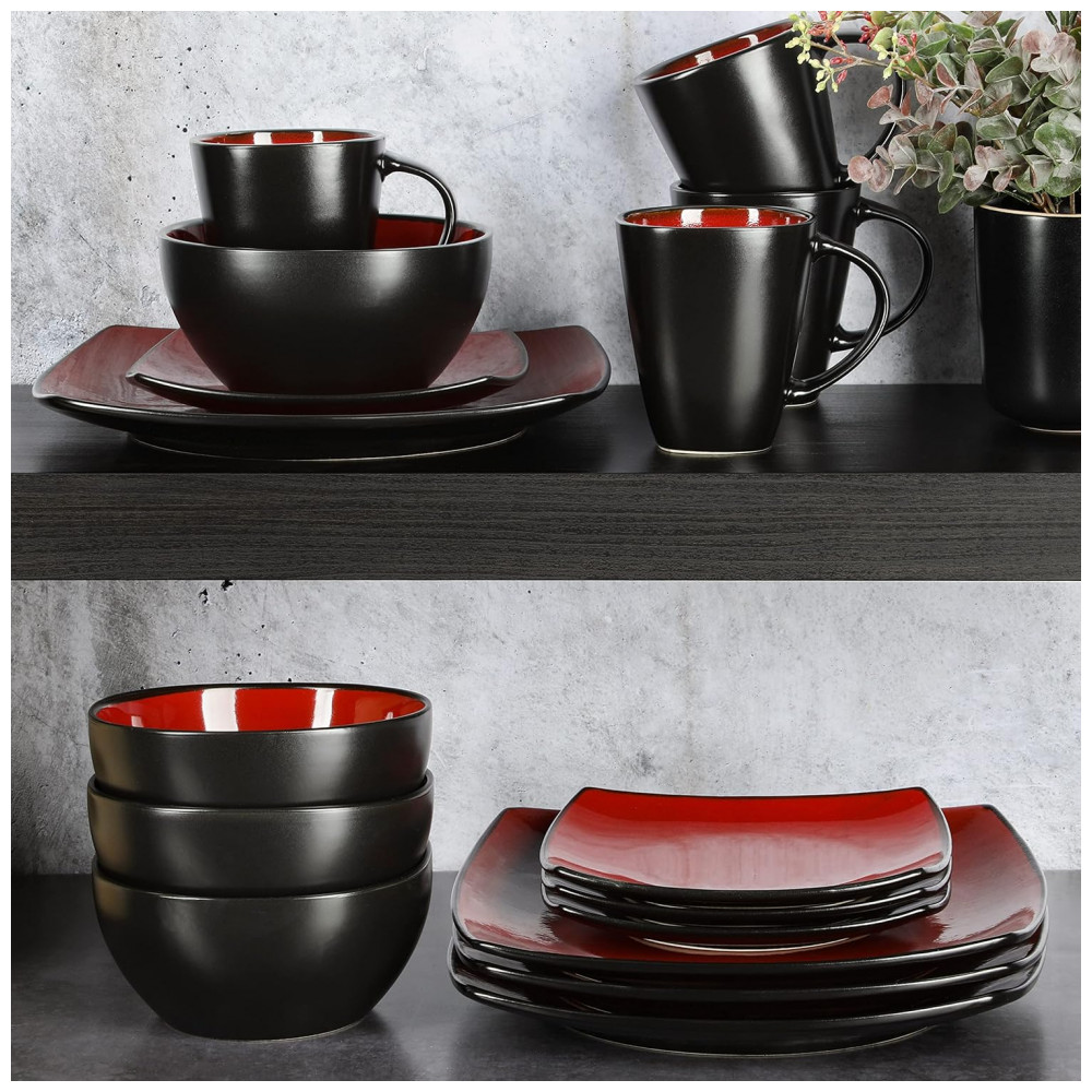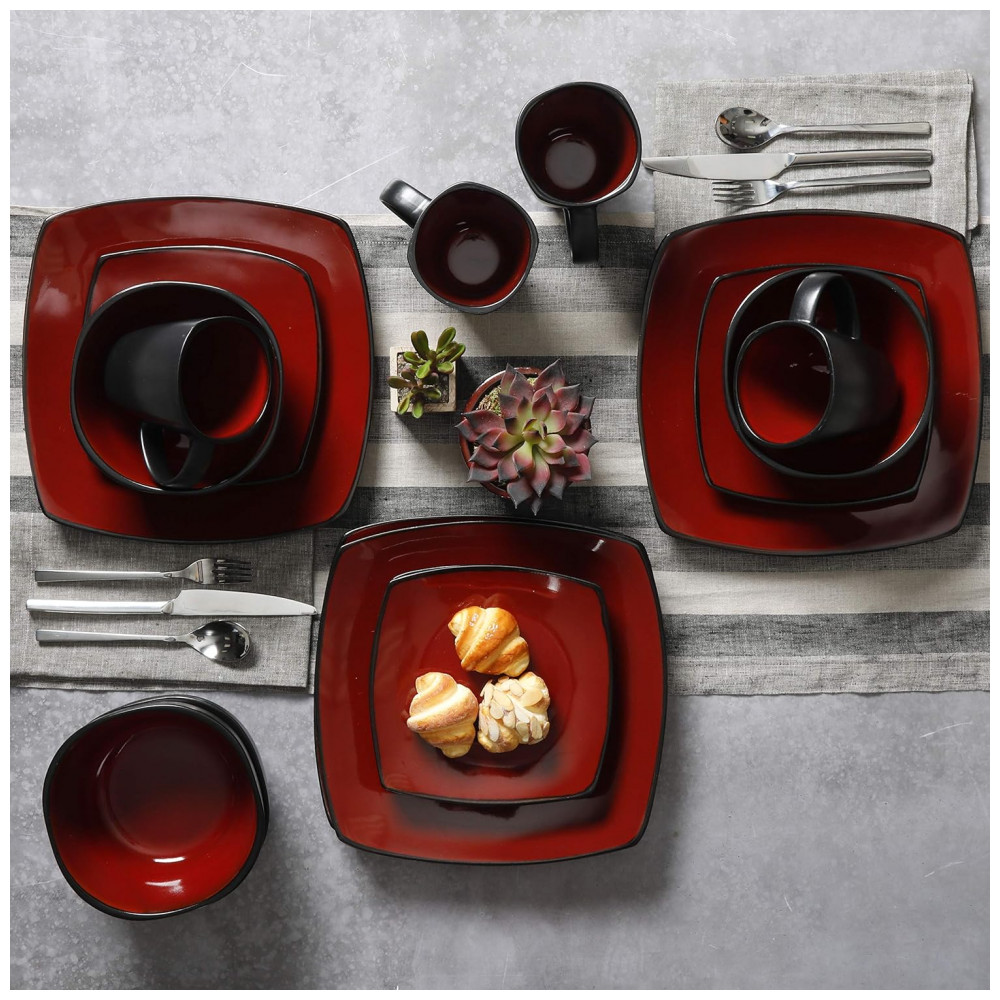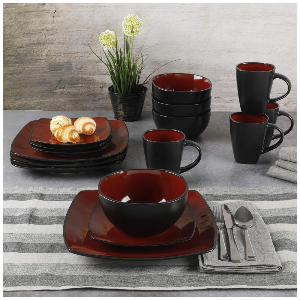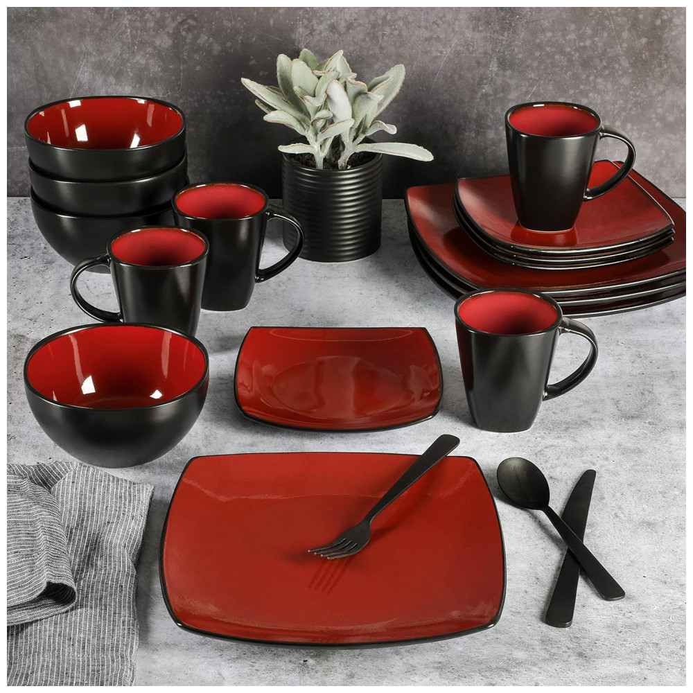 Aparelho de Jantar com 16 Peças em Cerâmica Serve 4 Pessoas Gibson Elite Soho Vermelho