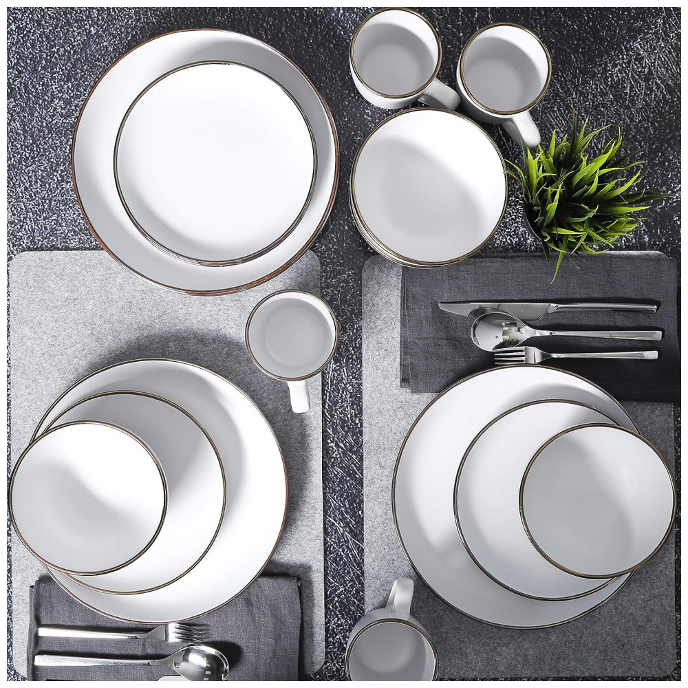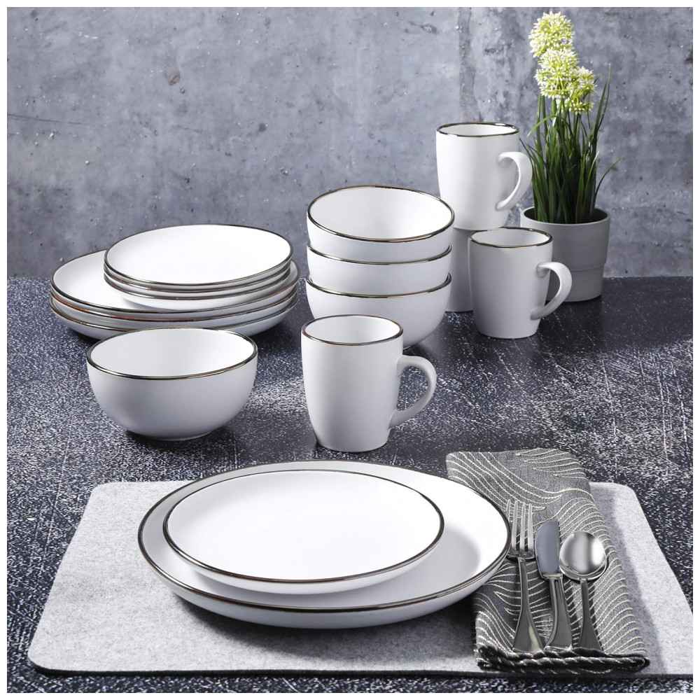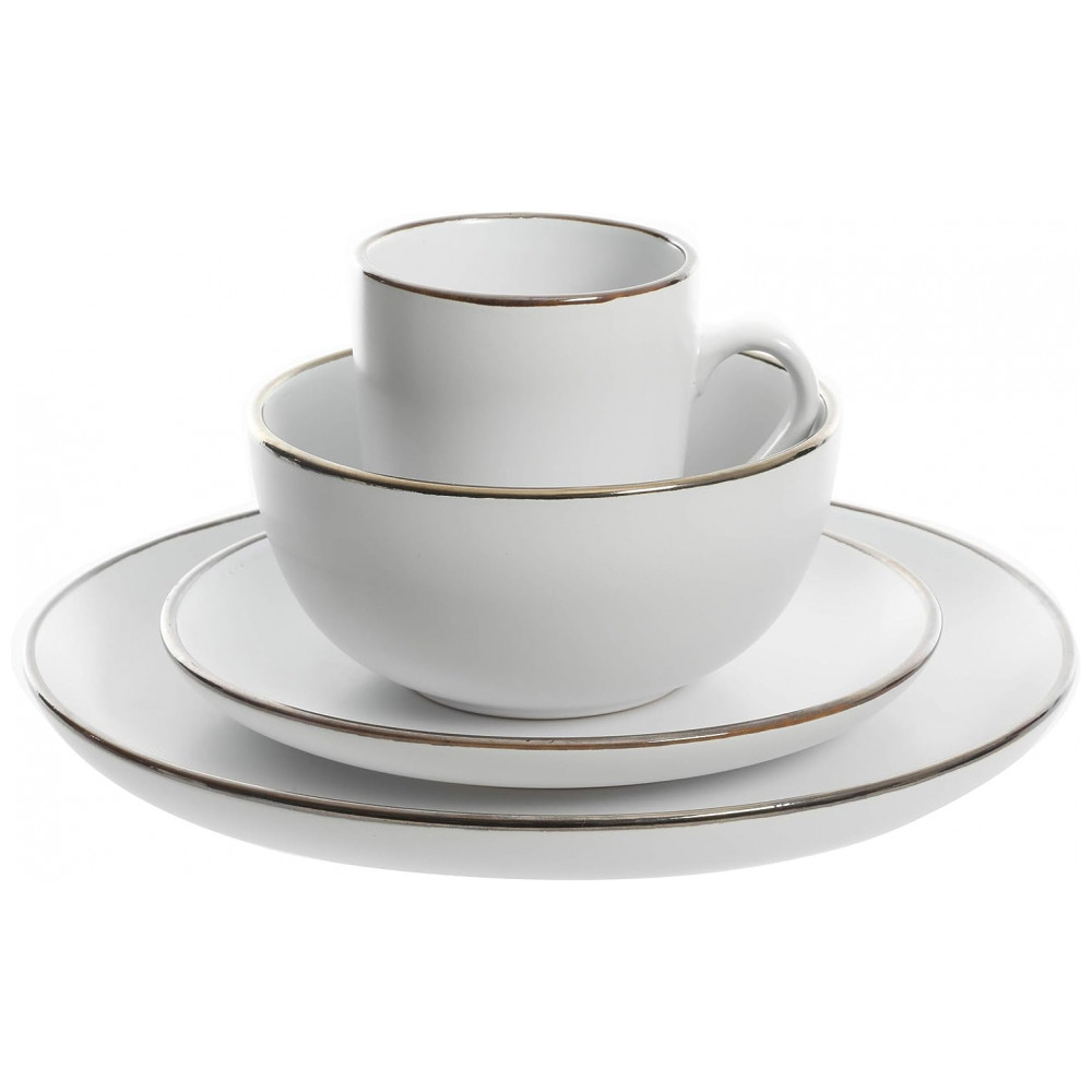 Aparelho de Jantar com 16 Peças em Cerâmica Stoneware Serve 4 Pessoas Gibson Home Rockaway Branco
