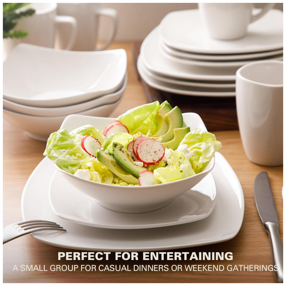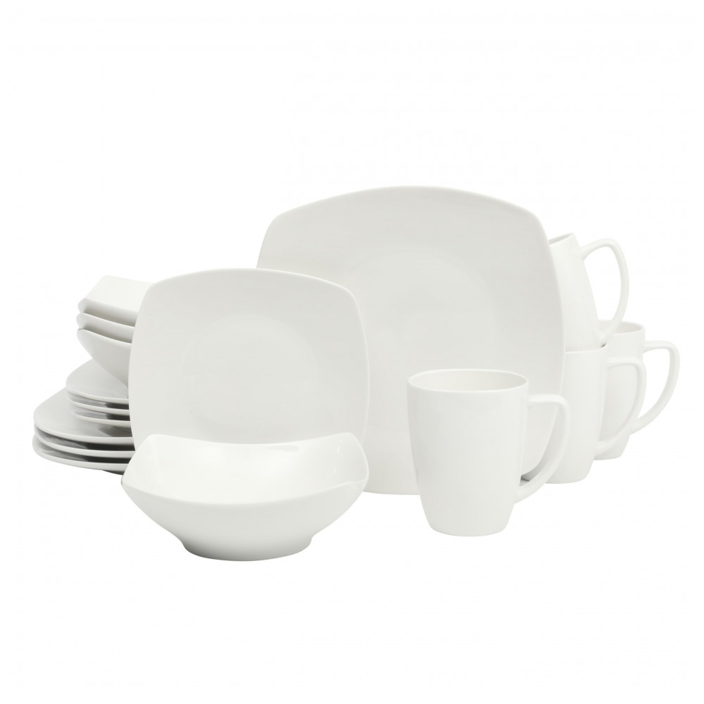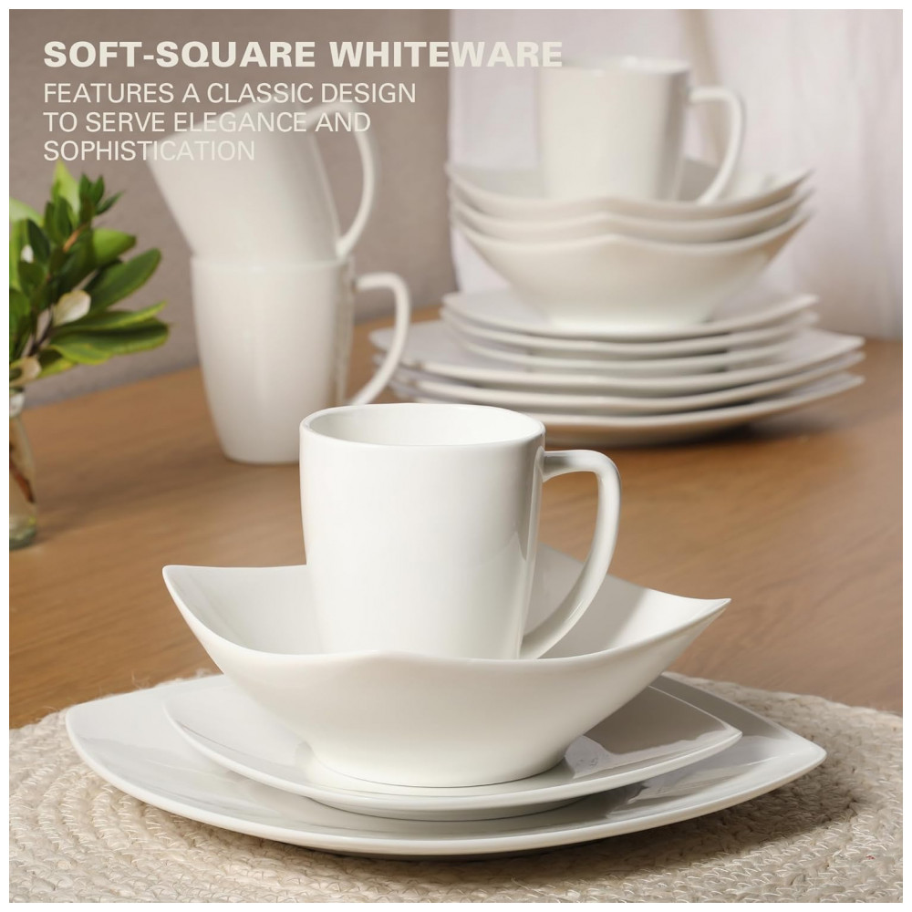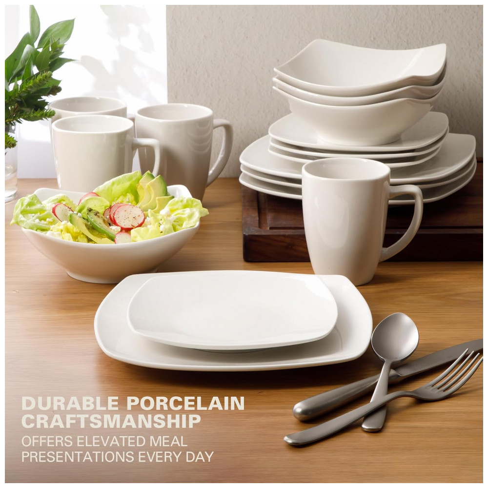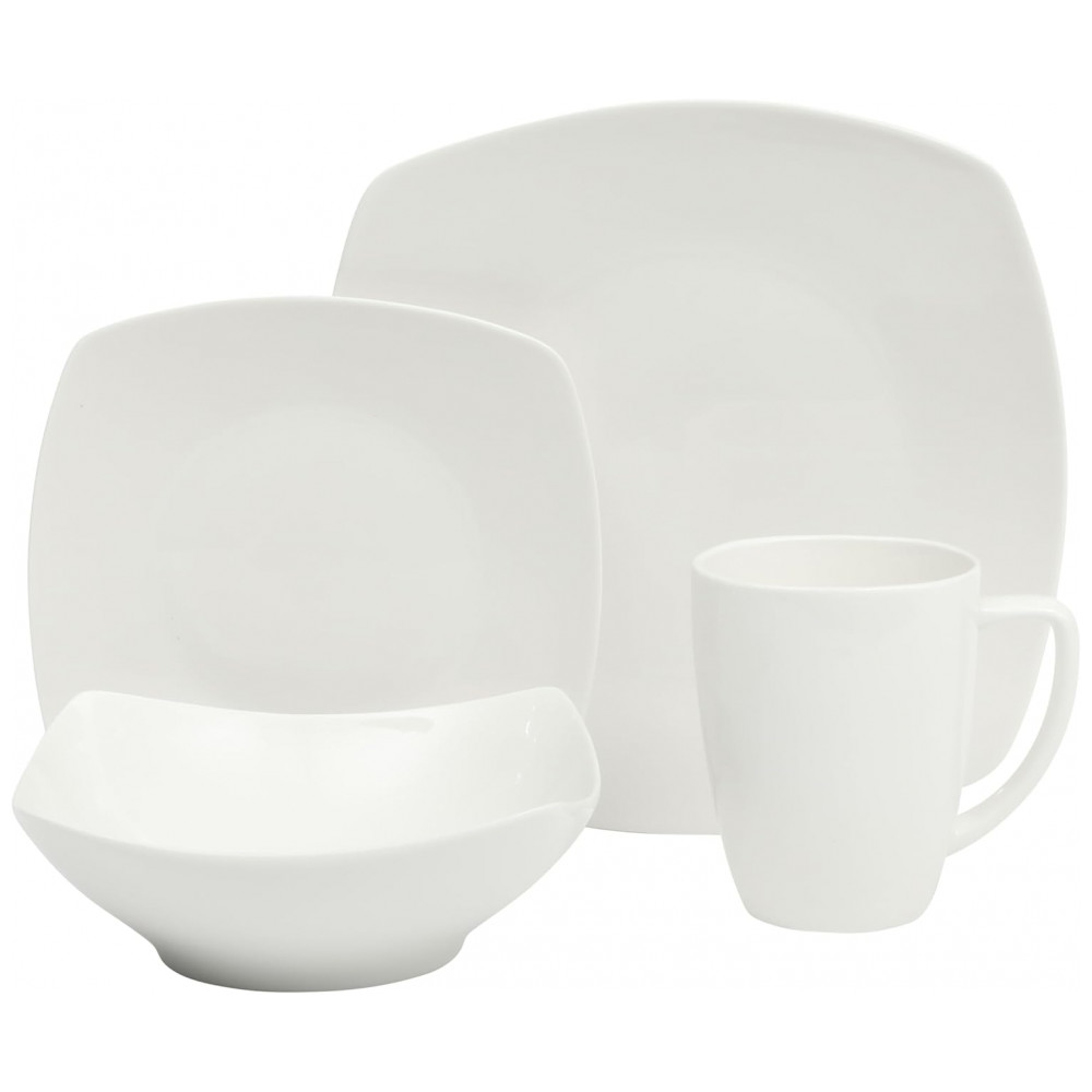 DESIGN CLÁSSICO : um jogo de jantar clássico em forma de quadrado branco com elegância cotidiana.