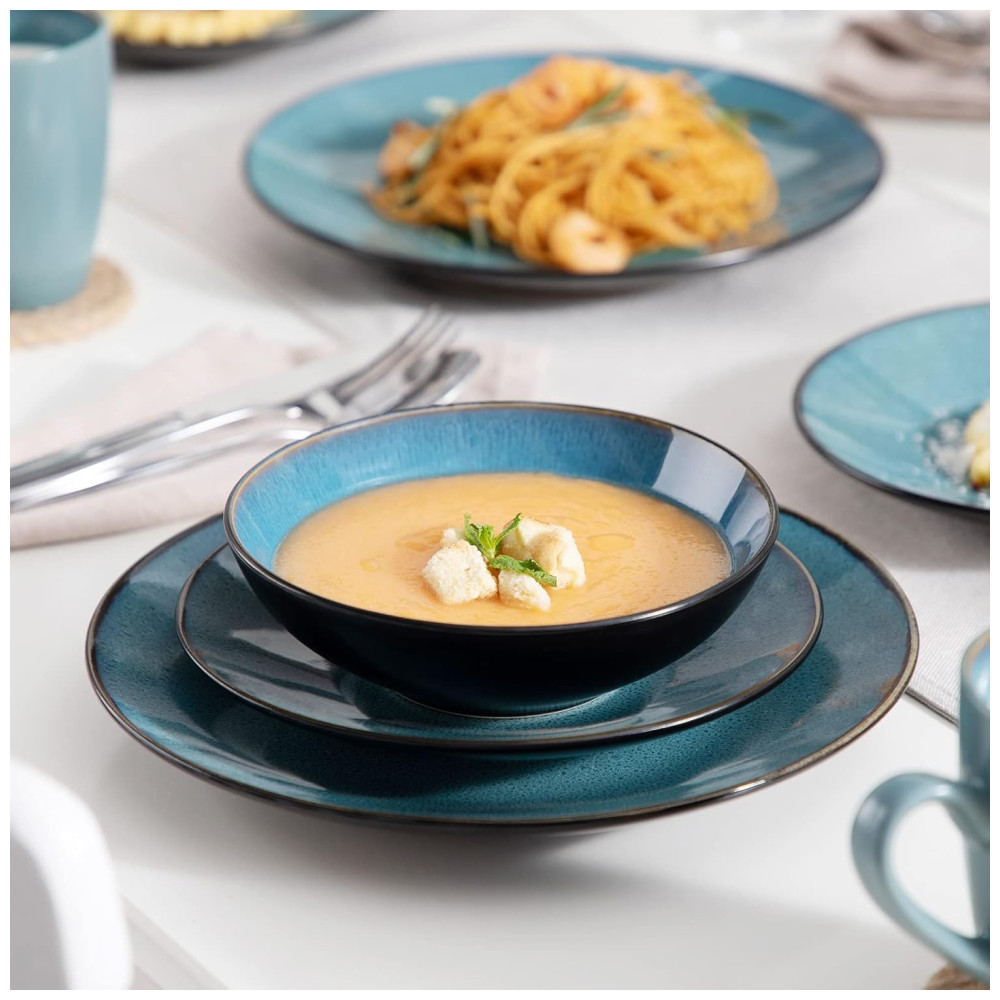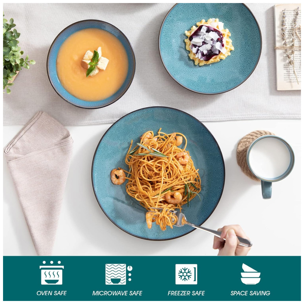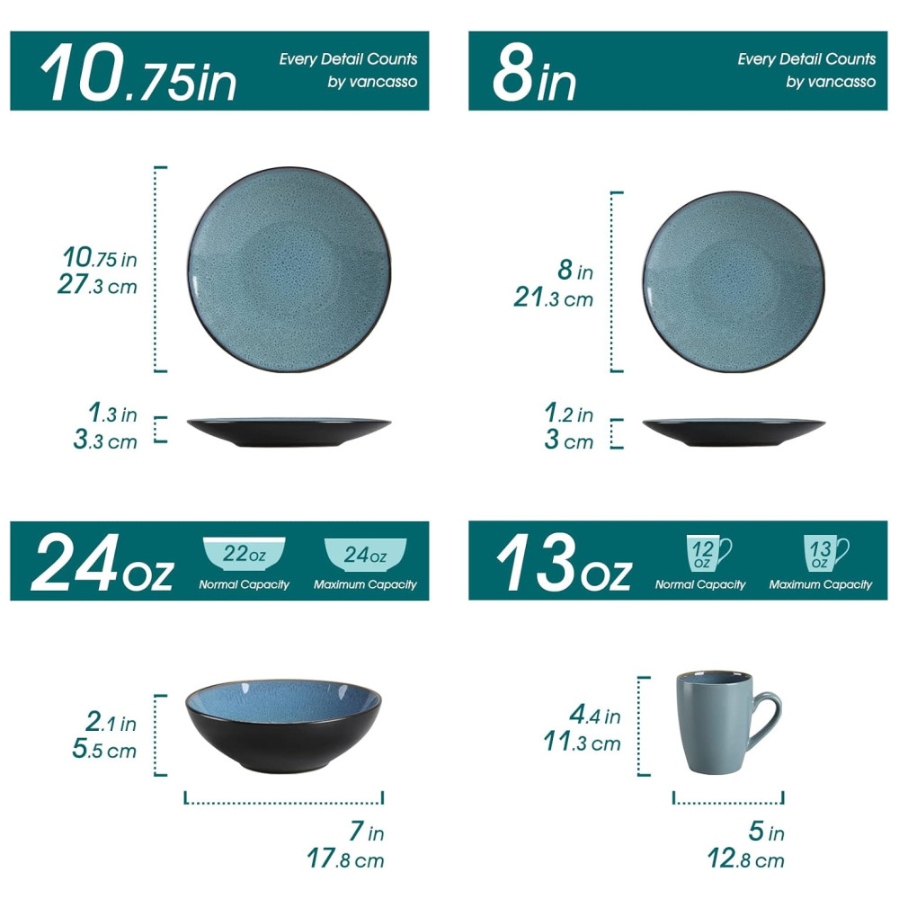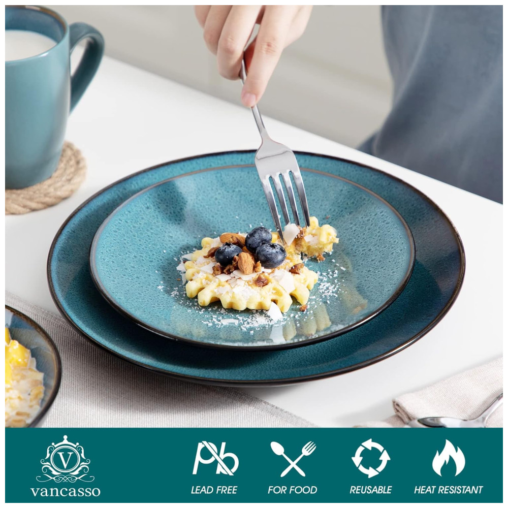 Conjunto de Jantar de 16 Peças para 4: Vancasso Bubble 16 peças inclui 4 pratos de jantar, 4 pratos de sobremesa, 4 tigelas de cereais e 4 canecas. A série de bolhas está disponível em azul, verde e marrom, que lembram a magnífica nebulosa no espaço. A cor especial do esmalte colide as cores ao extremo no âmbito do artesanato. Decora extremamente sua mesa, também faz com que cada refeição caseira pareça especial