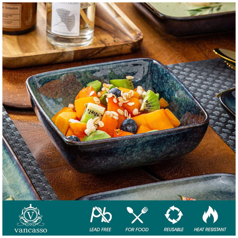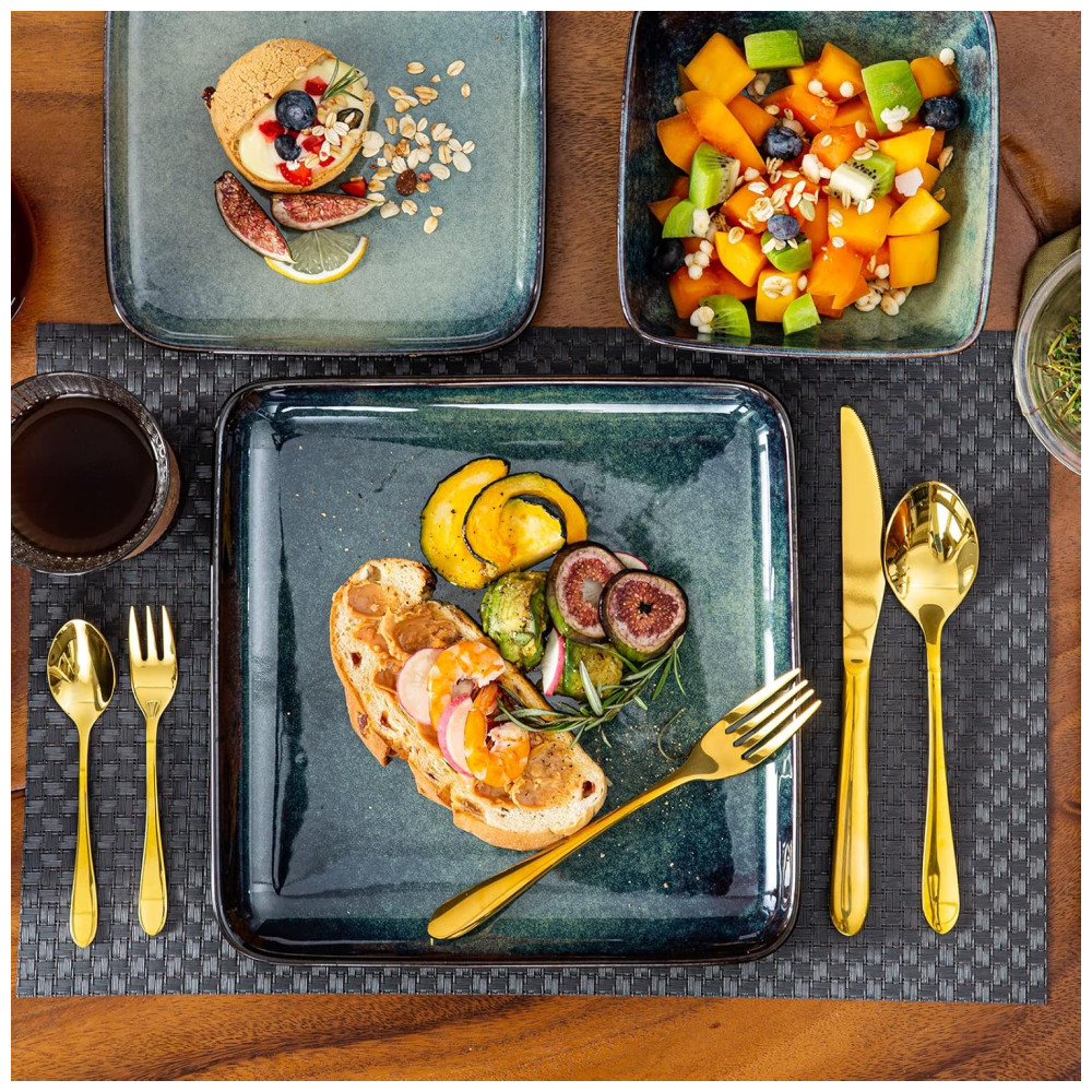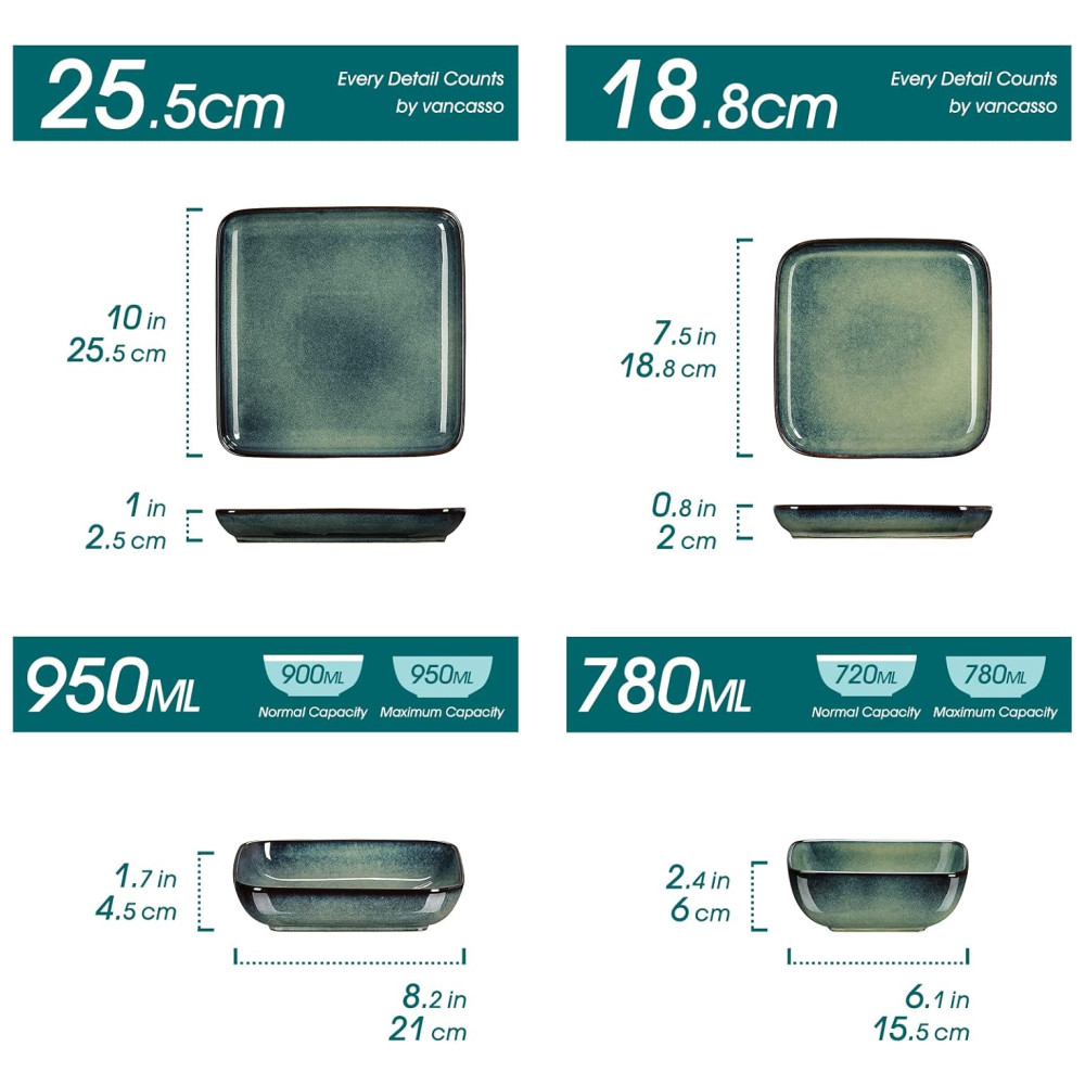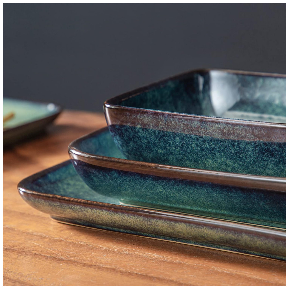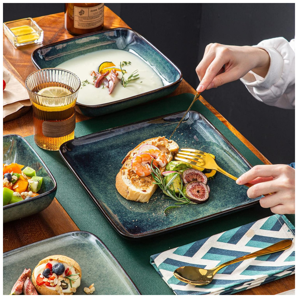 Aparelho de Jantar com 16 Peças Quadradas de Cerâmica em Esmalte Reativo Vancasso Azul