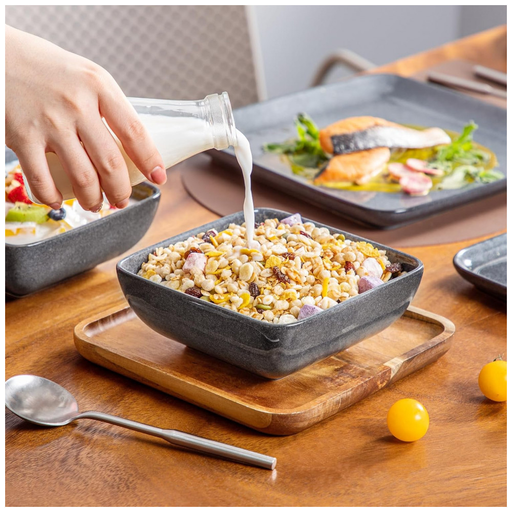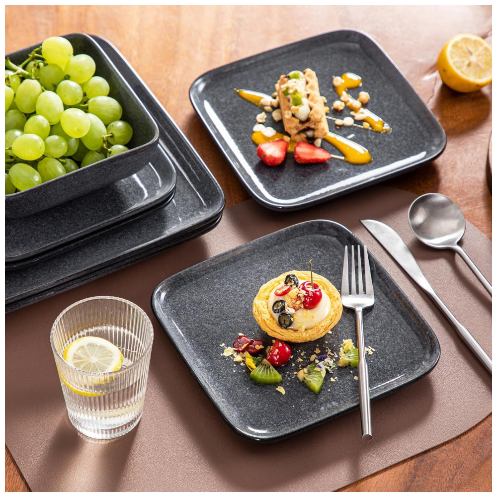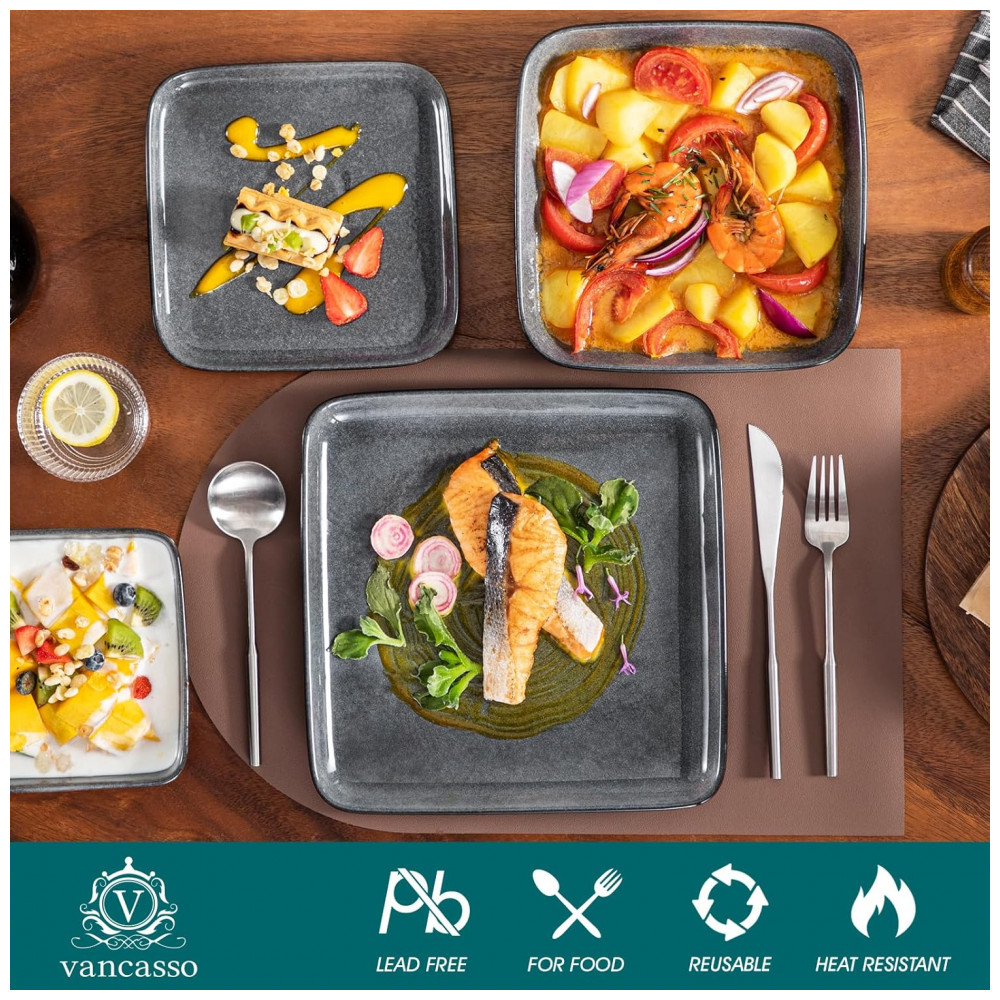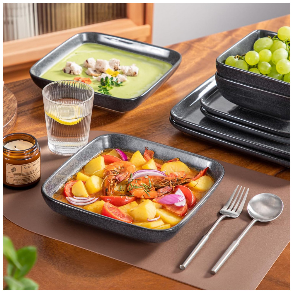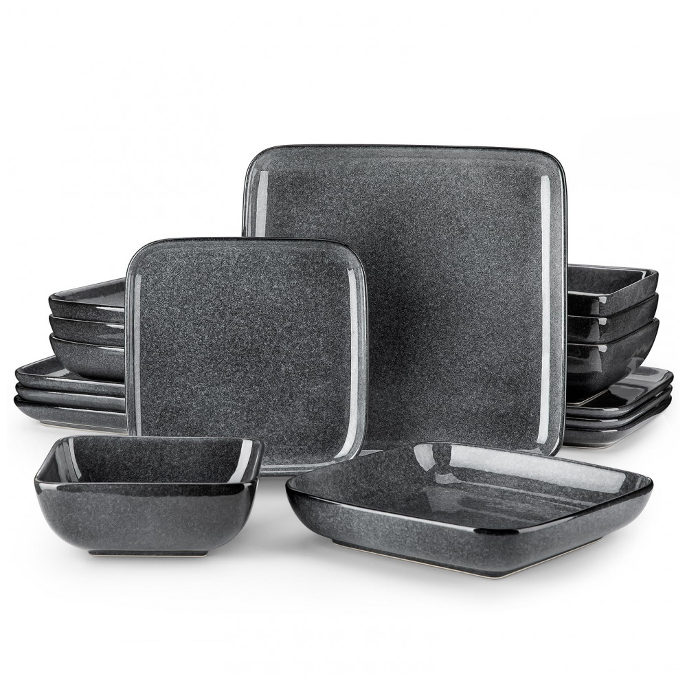 Aparelho de Jantar com 16 Peças Quadradas de Cerâmica em Esmalte Reativo Vancasso Cinza