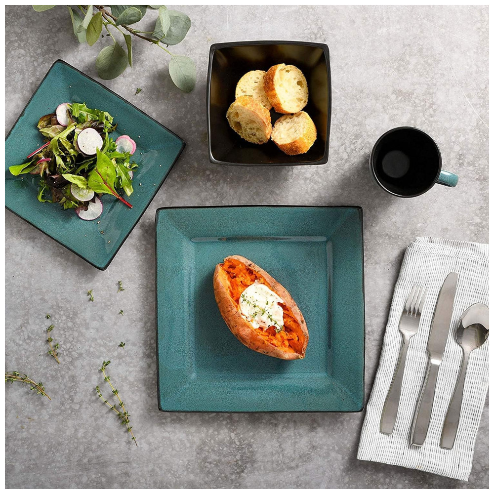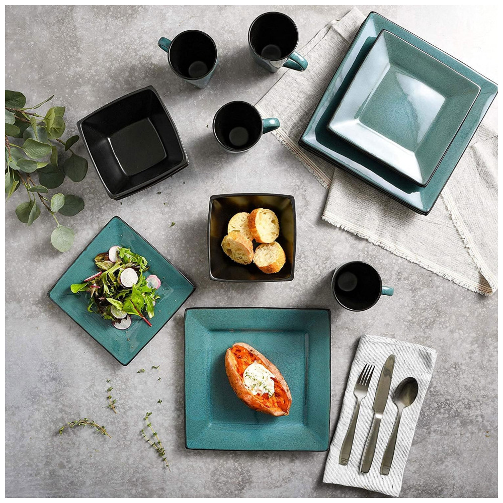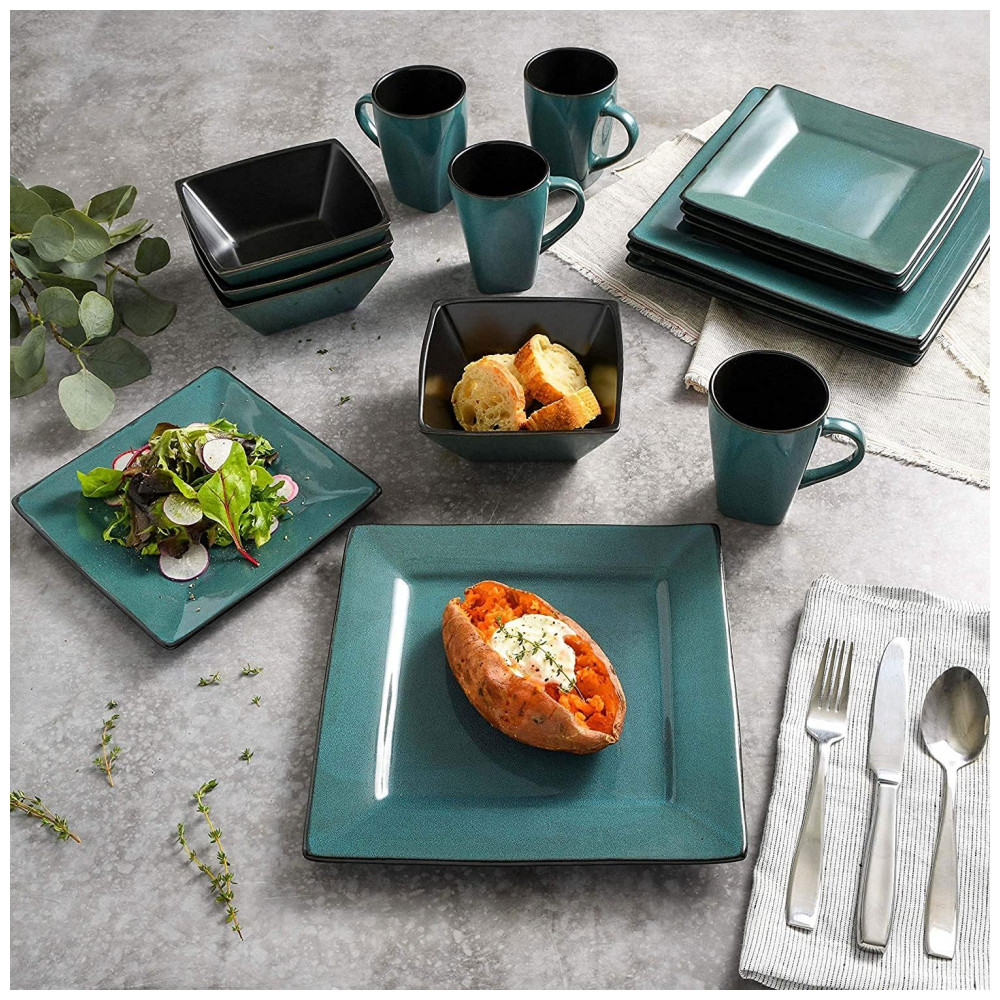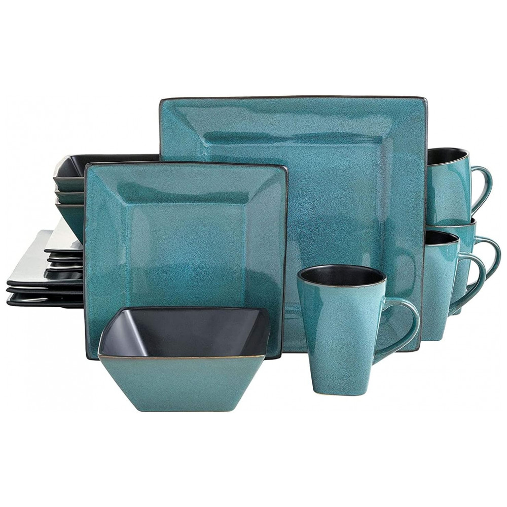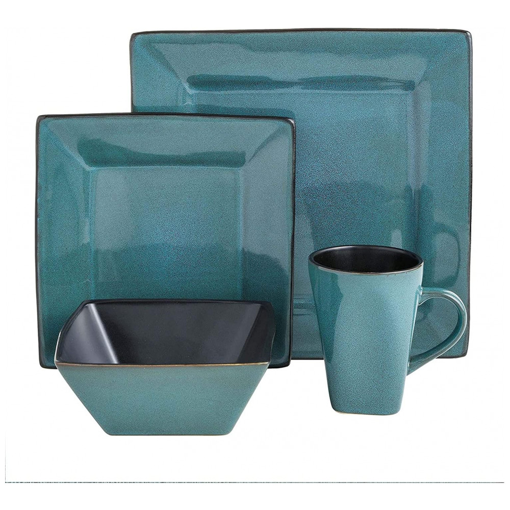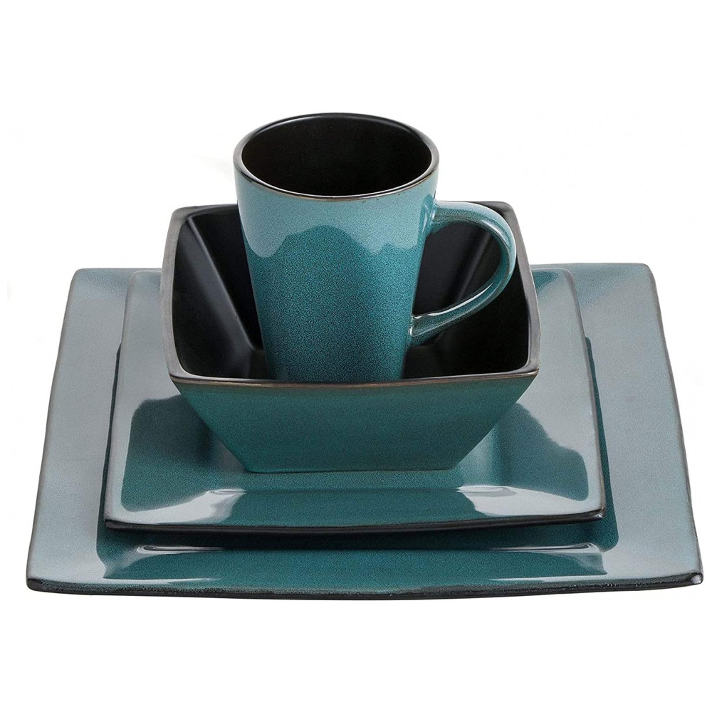 Aparelho de Jantar com 16 Peças Quadradas em Cerâmica Gibson Elite Kiesling Azul Turquesa