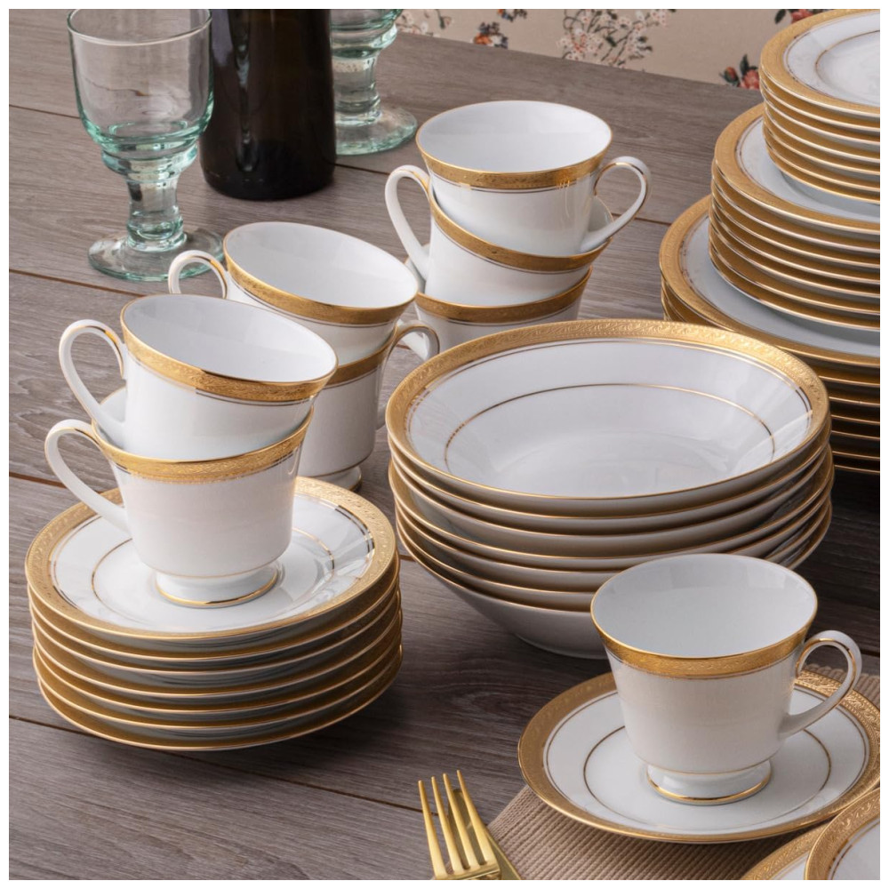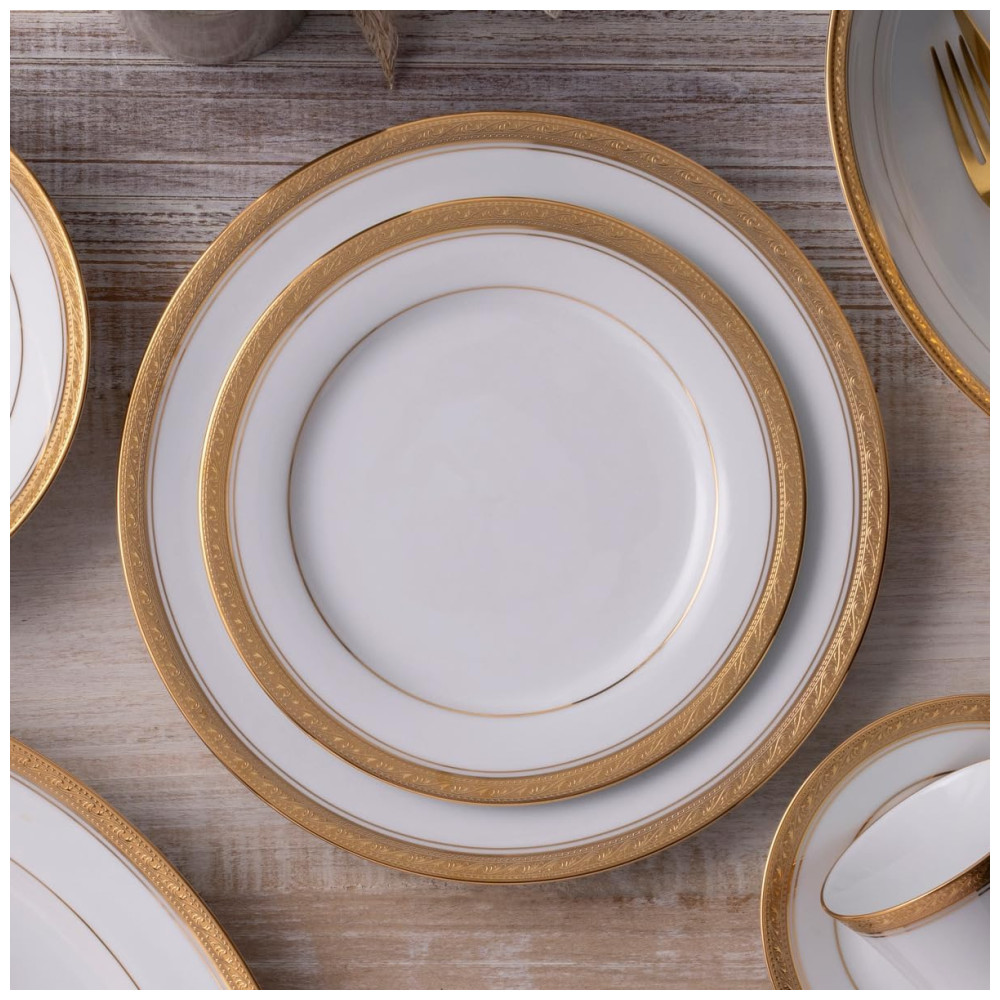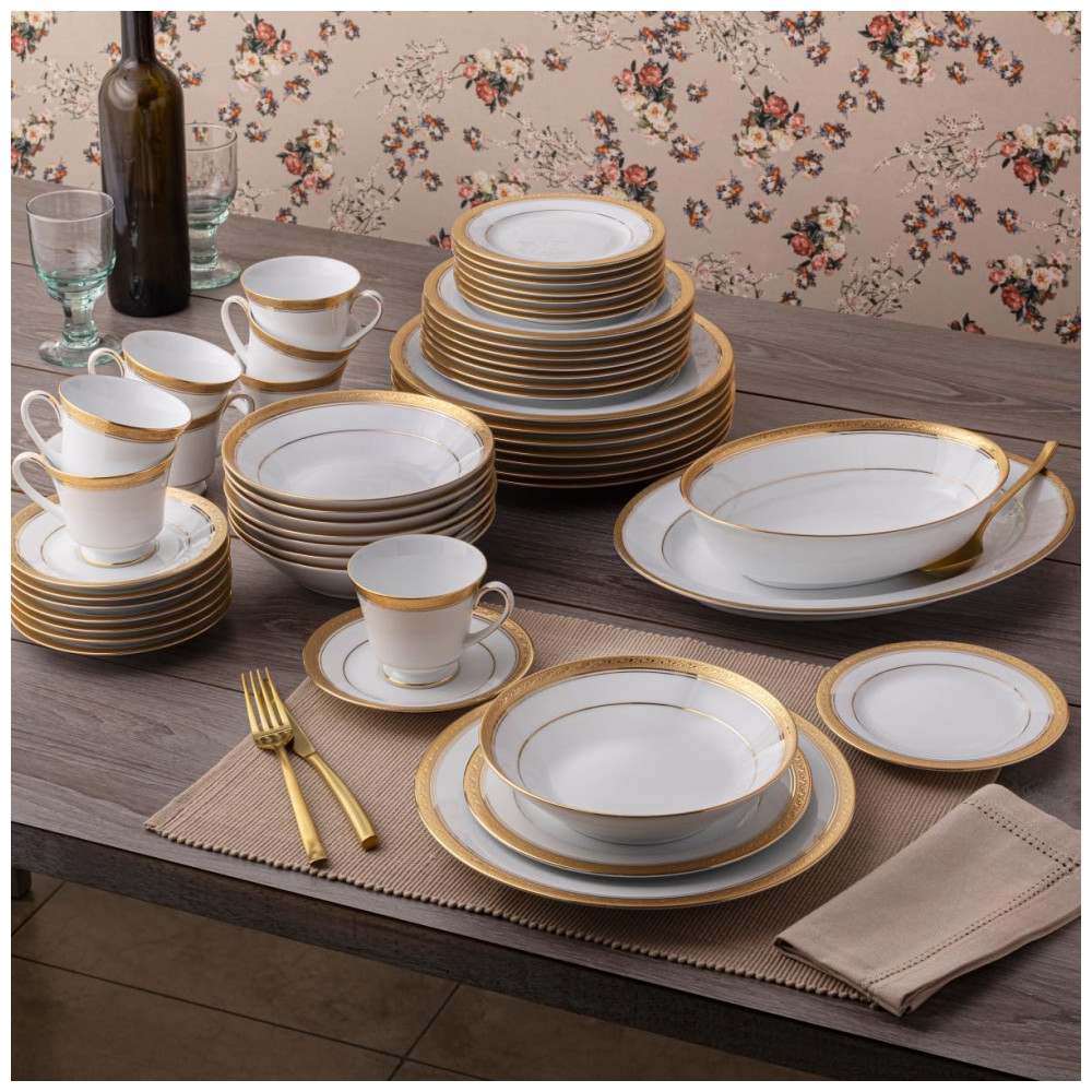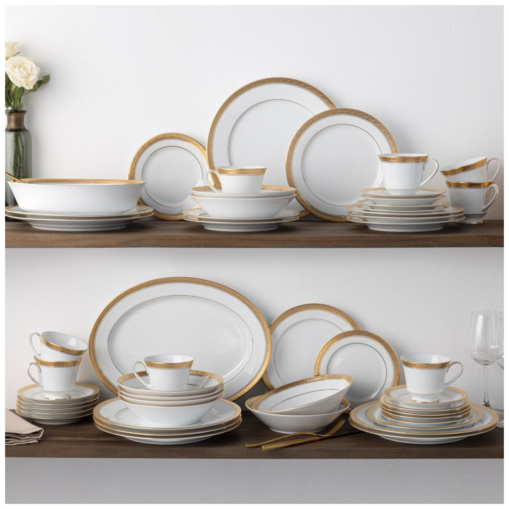 Aparelho de Jantar Completo para 8 Pessoas com 50 Peças Porcelana Noritake 4167-50A Branco e Dourado