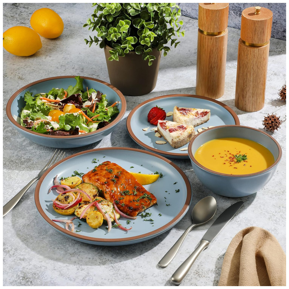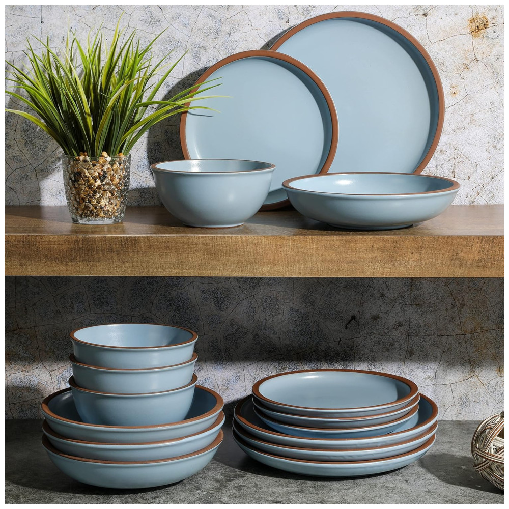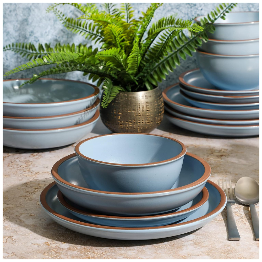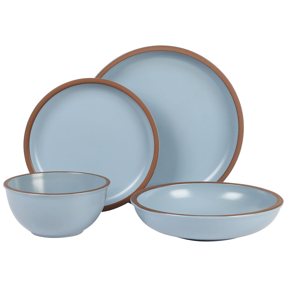 Aparelho de Jantar Coupe com 16 Peças em Terracota Serve 4 Pessoas Gibson Elite Lagos Azul Claro