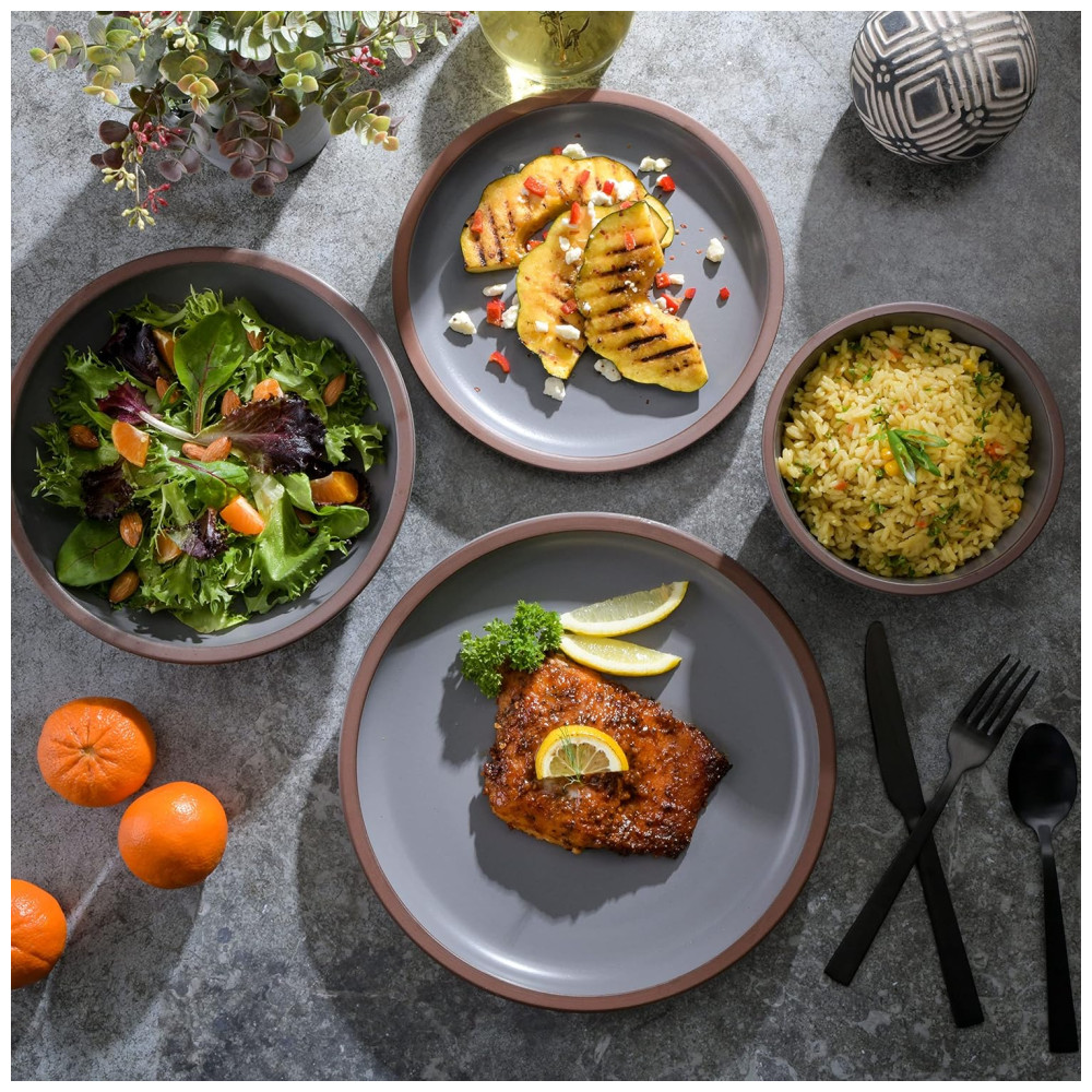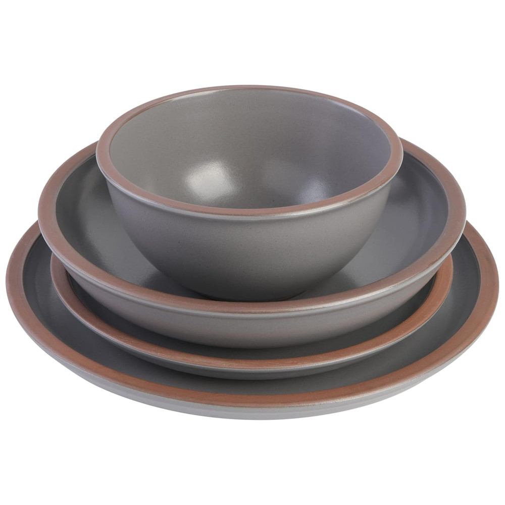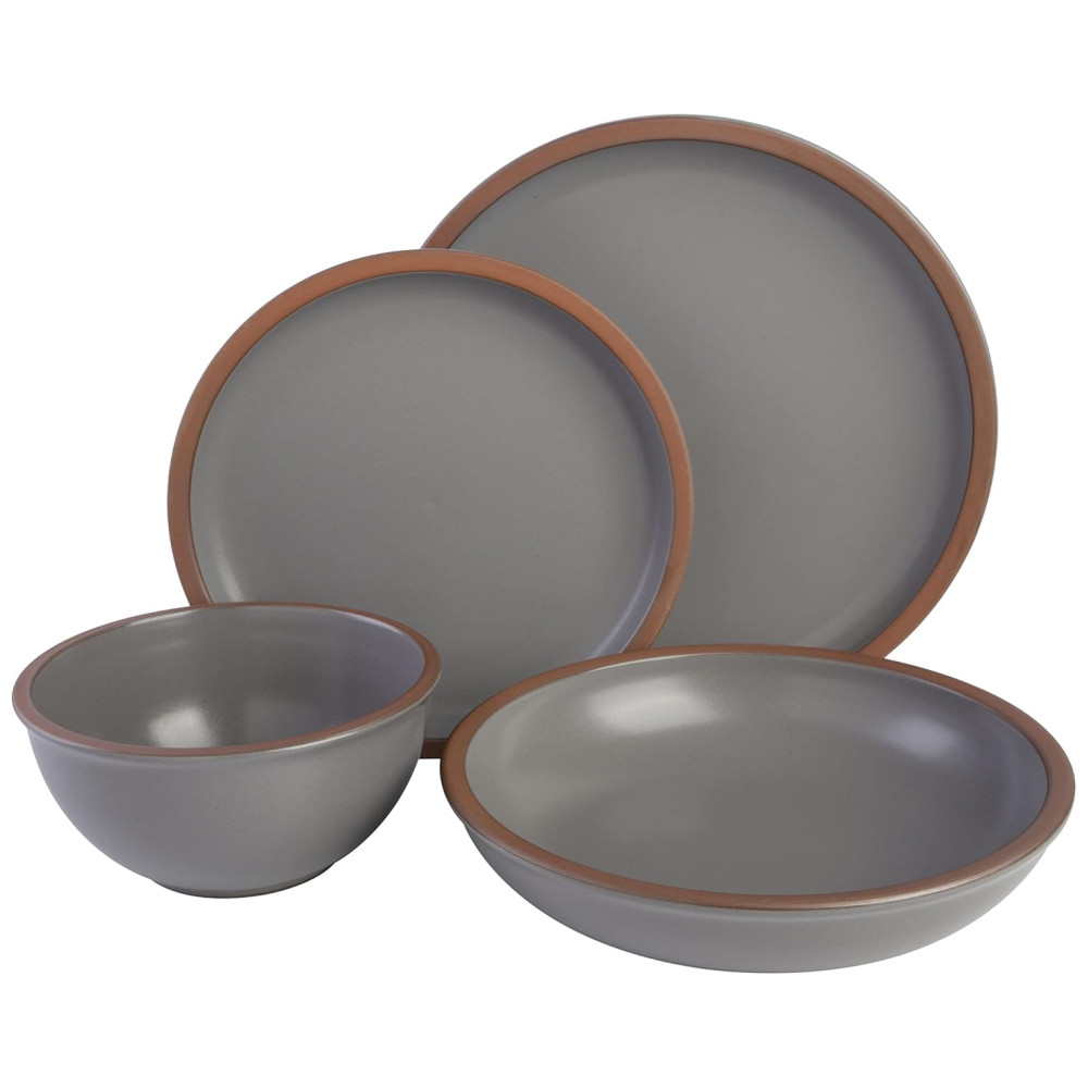 Aparelho de Jantar Coupe com 16 Peças em Terracota Serve 4 Pessoas Gibson Elite Lagos Cinza