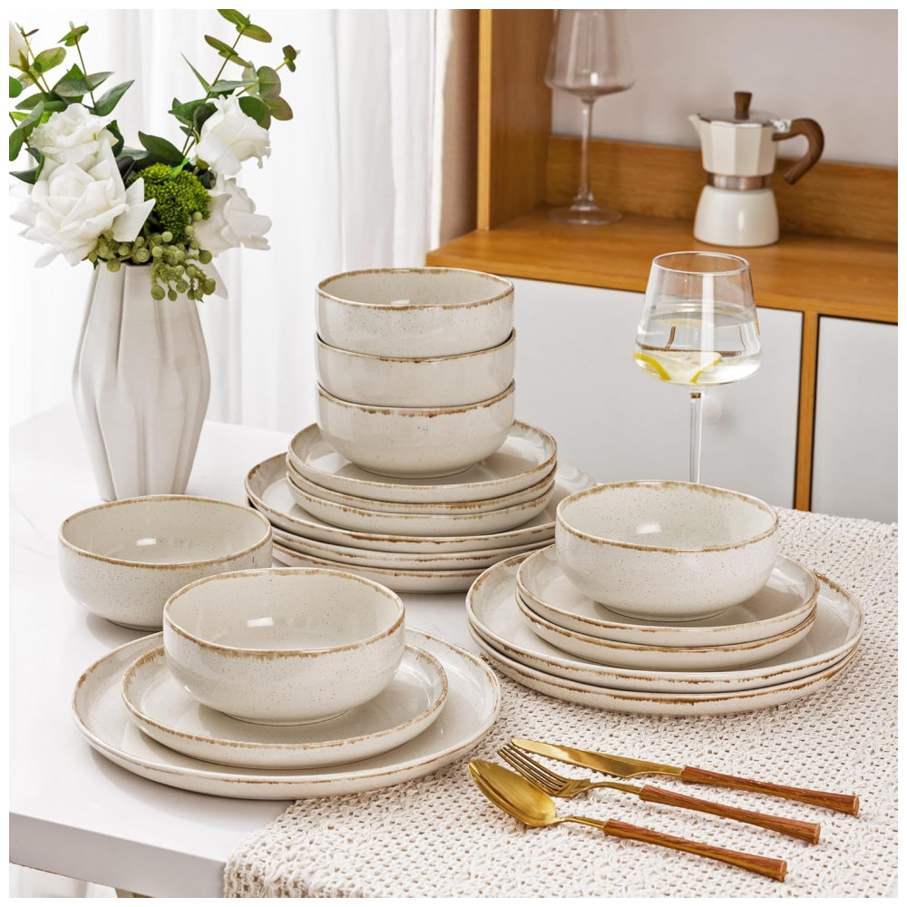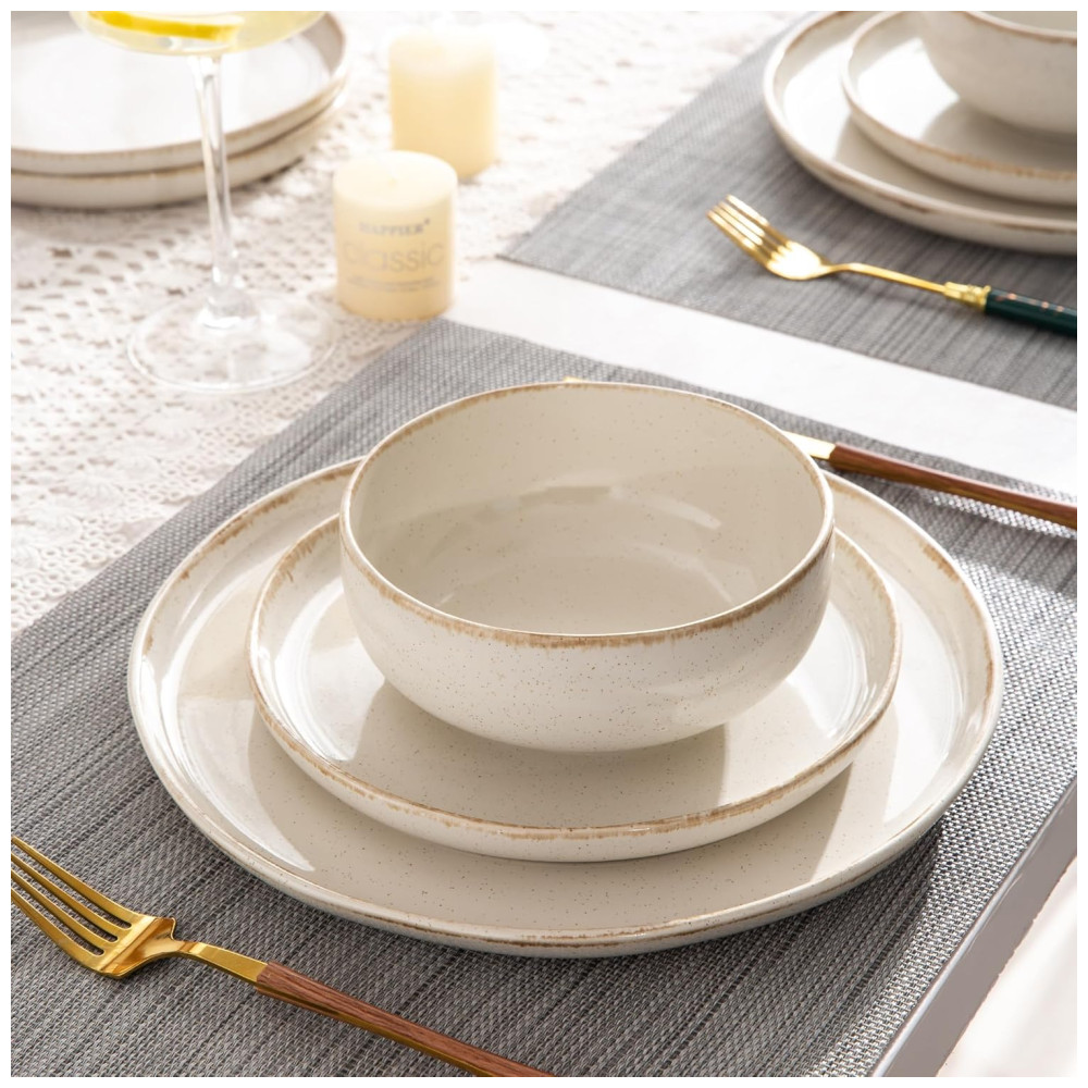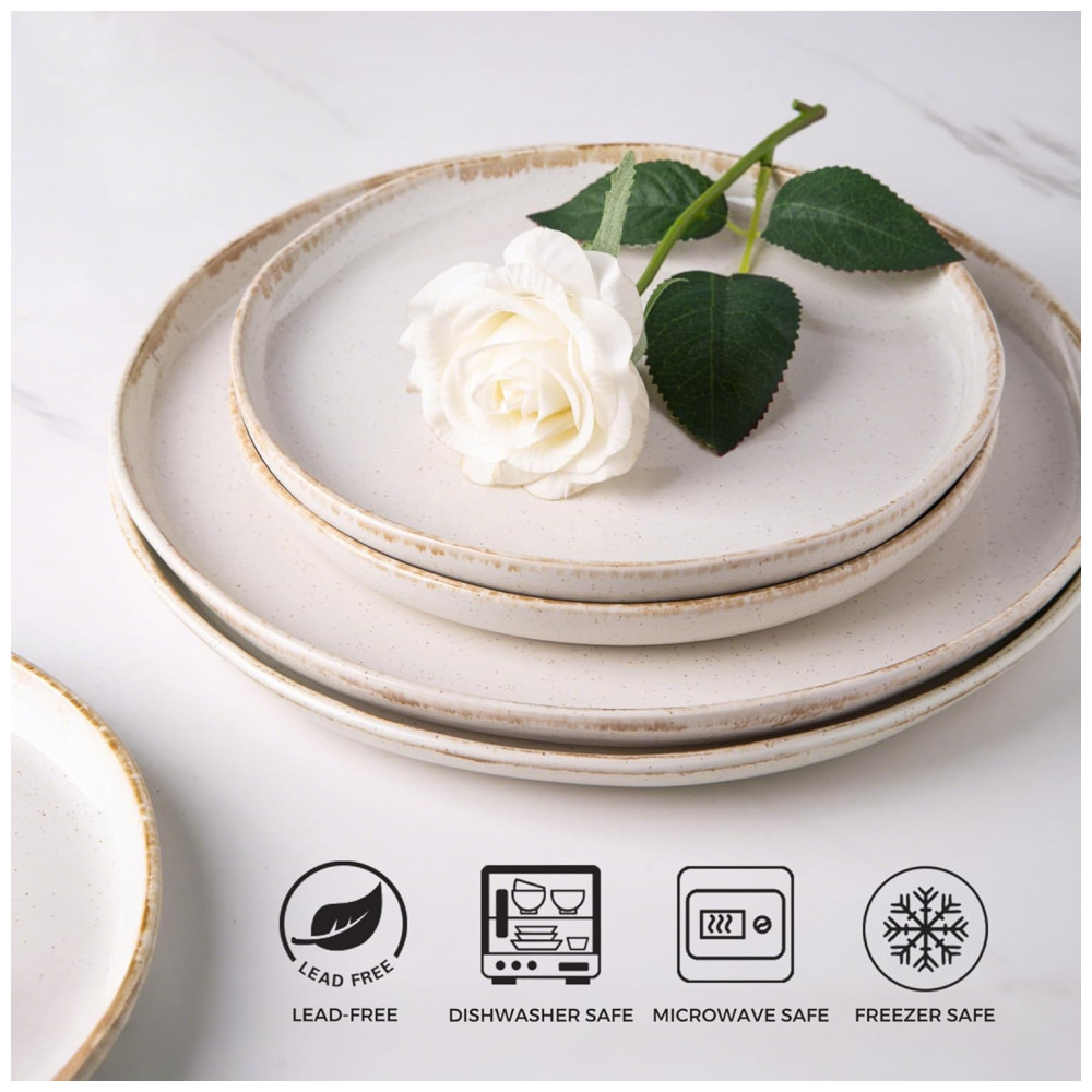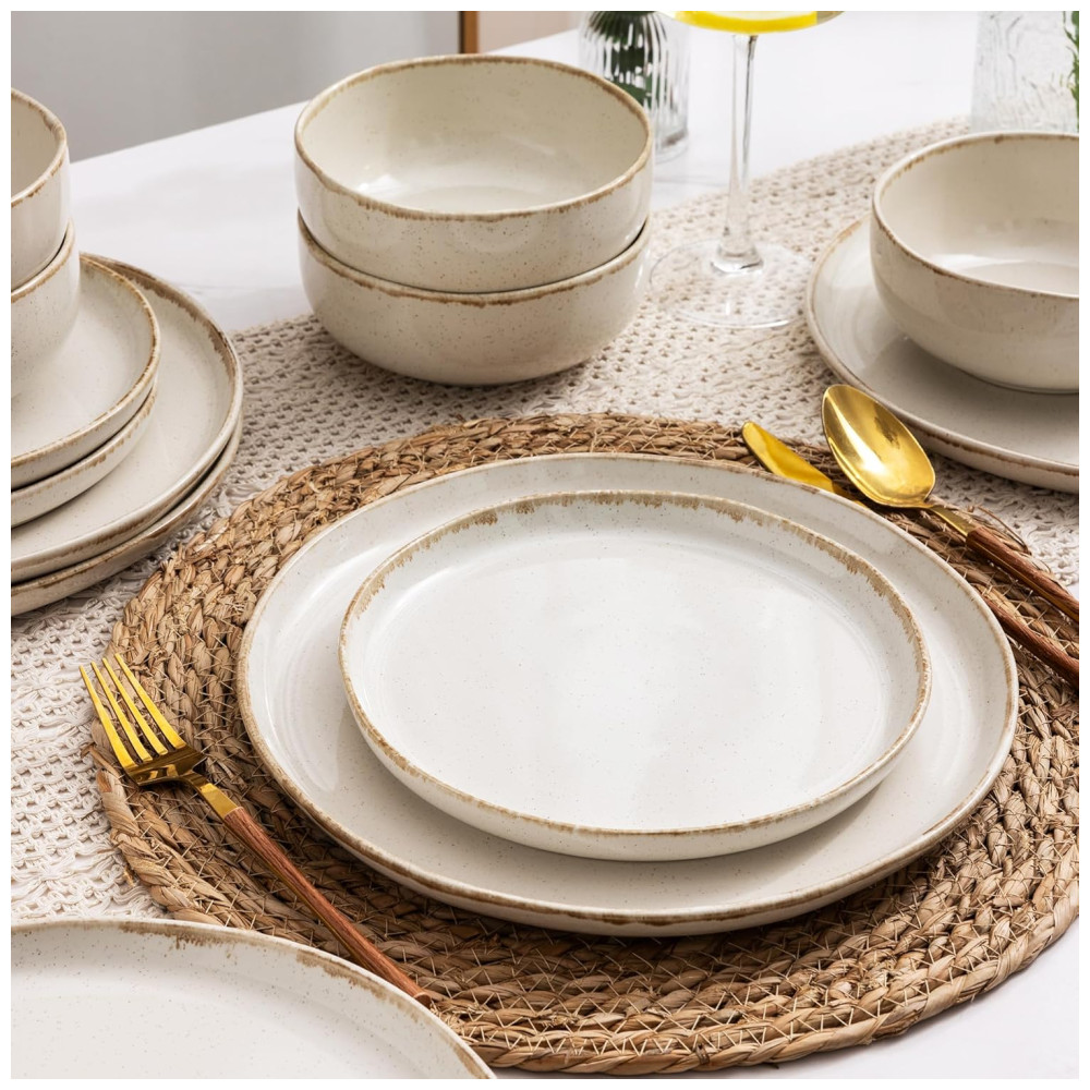 Aparelho de Jantar de Cerâmica AmorArc Com Bordas Onduladas Pratos e Tigelas de Pedra Resistente a Rachaduras e Chips Conjunto de Louças