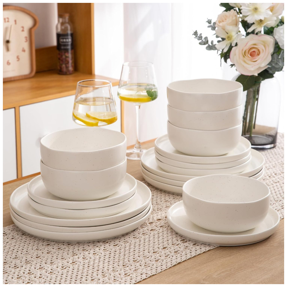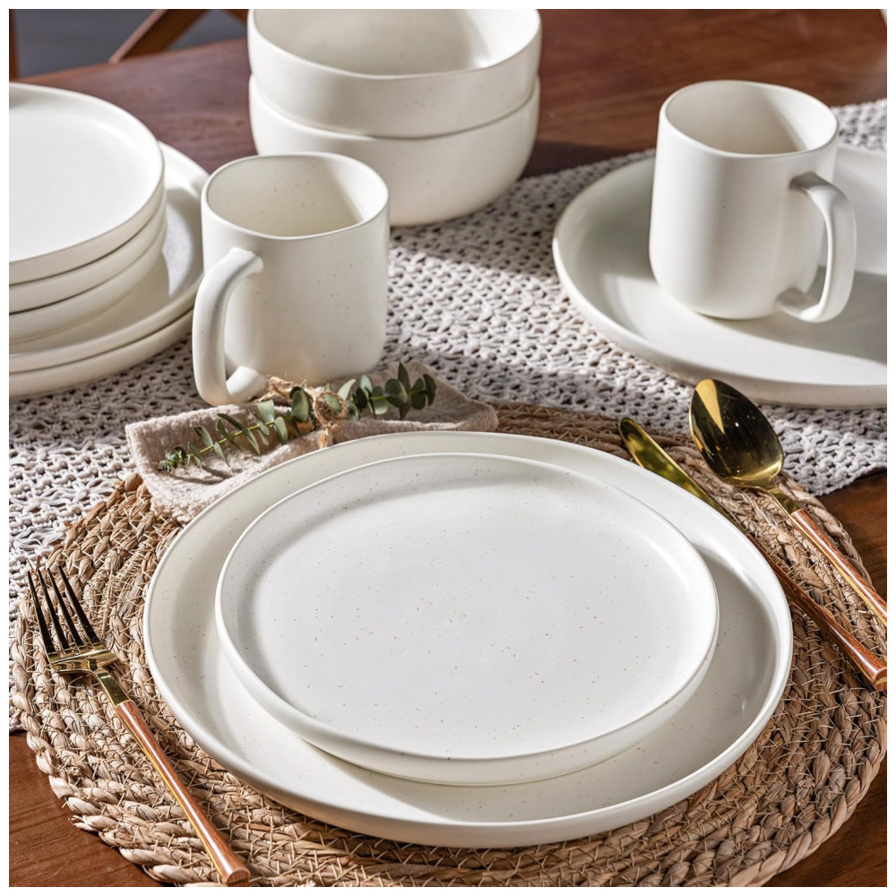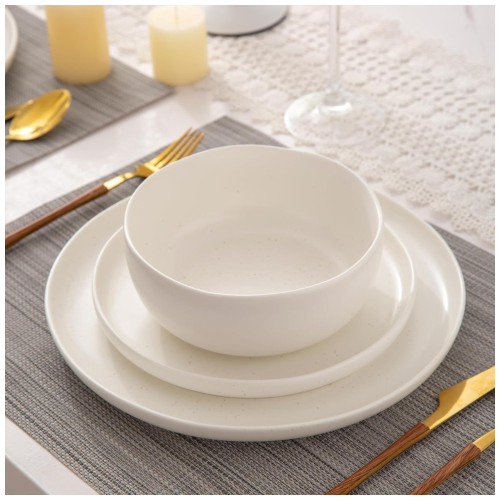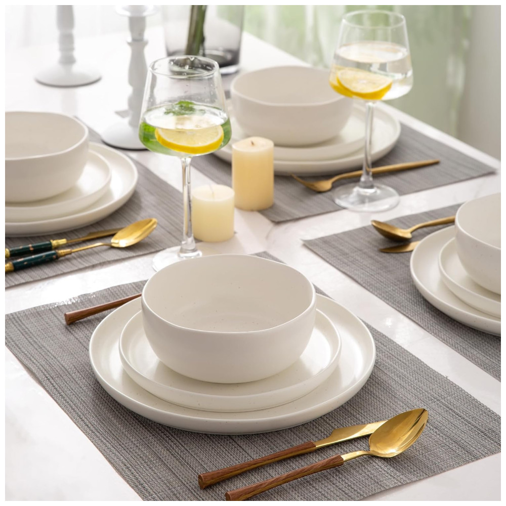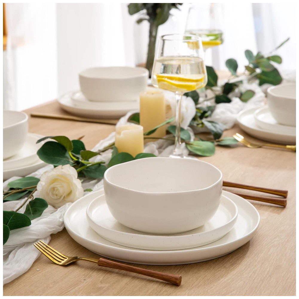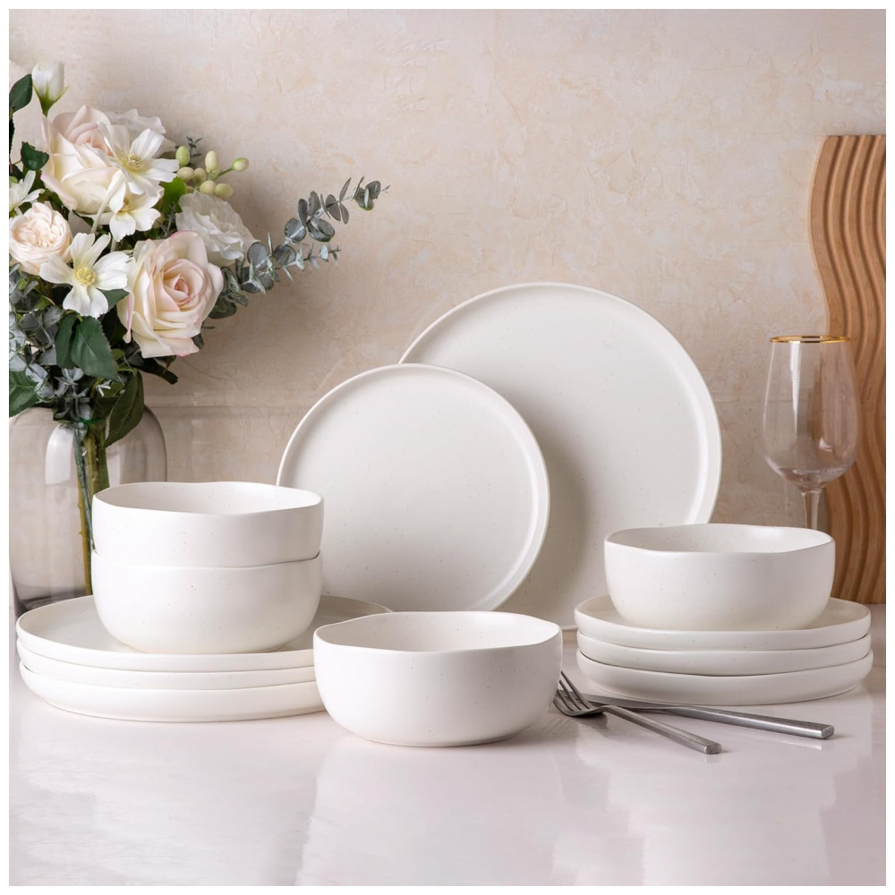 Aparelho de Jantar de Cerâmica AmorArc Com Design Elegante de Borda Ondulada em Cerâmica Resistente a Rachaduras e Quebras para Lava-Louças