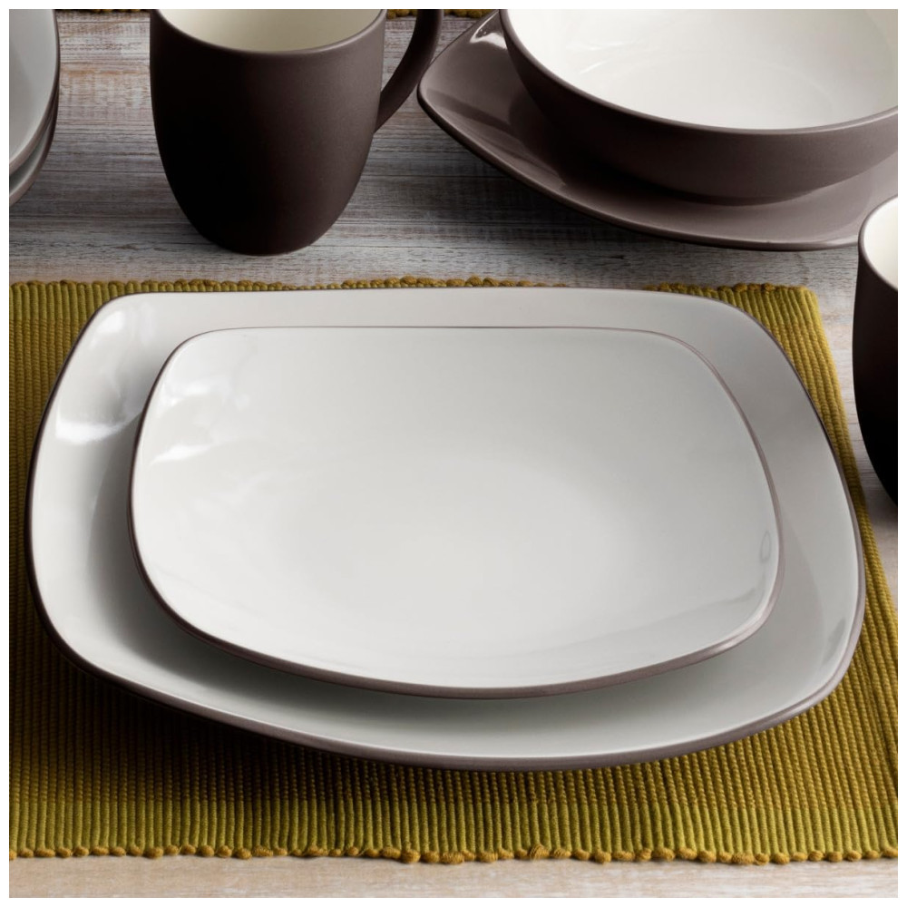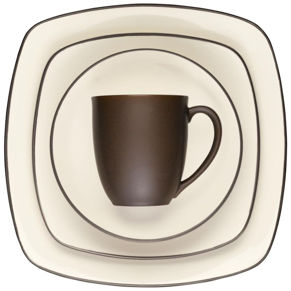Aparelho de Jantar de Cerâmica Clássica e Durável para o Dia a Dia com 4 Peças Formato Quadrado e Material de Cerâmica Noritake 8046-04P Marrom