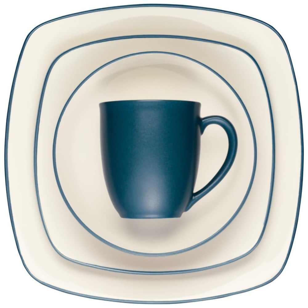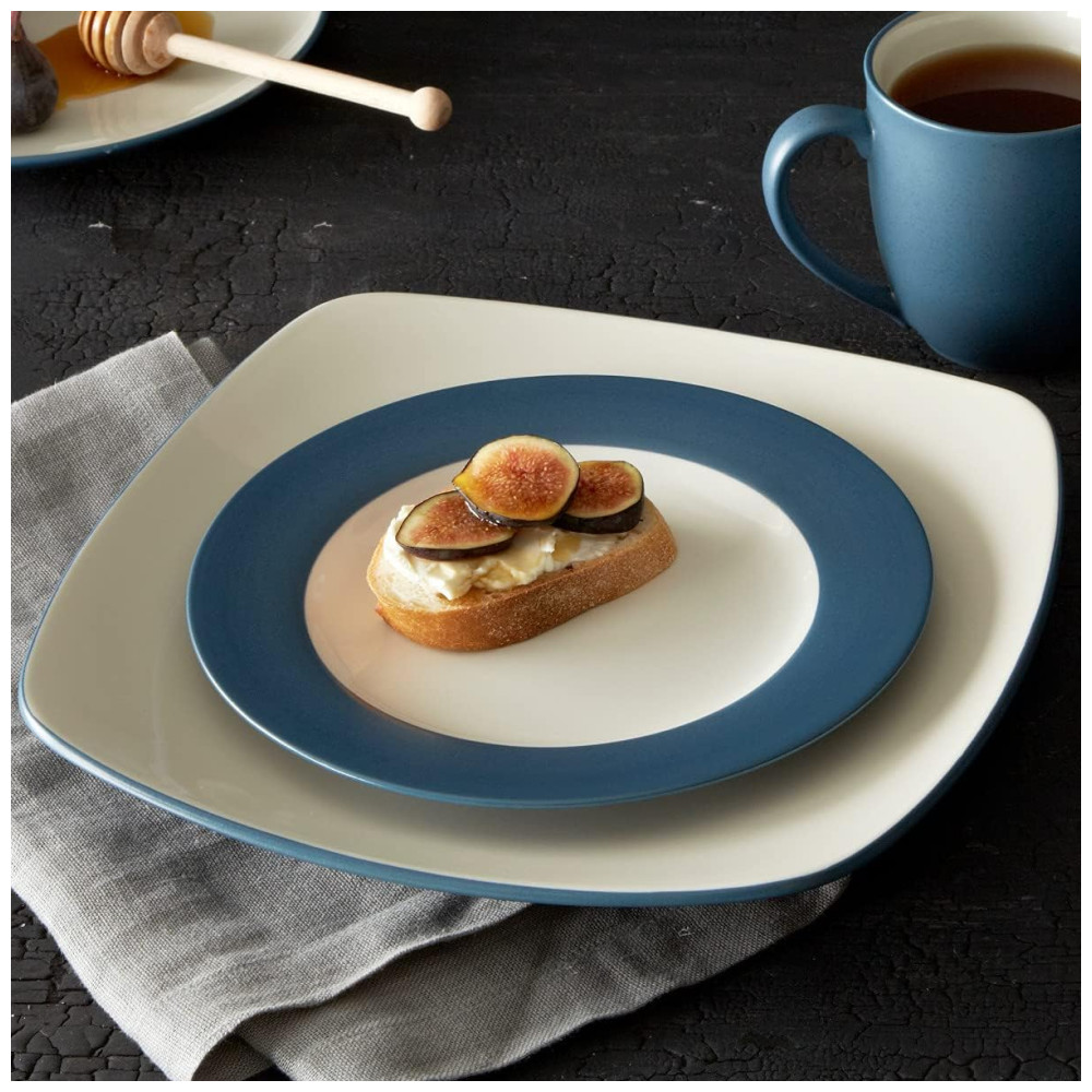 Aparelho de Jantar de Cerâmica Clássica e Durável para o Dia a Dia com 4 Peças Formato Quadrado e Material de Cerâmica Noritake 8484-04P Azul