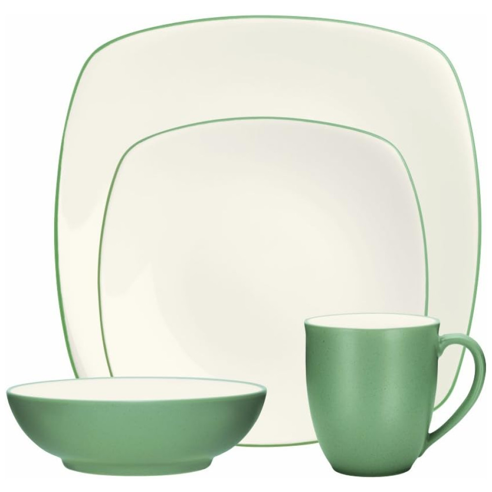 Aparelho de Jantar de Cerâmica Clássica e Durável para o Dia a Dia com 4 Peças Formato Quadrado e Material de Cerâmica Noritake 8485-04P Verde