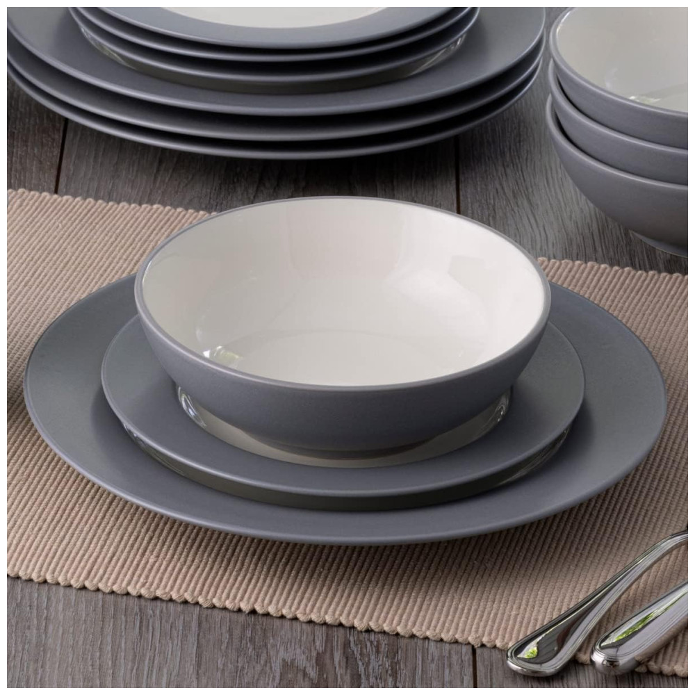 Aparelho de Jantar de Cerâmica Clássica e Durável para o Dia a Dia com 4 Peças Formato Redondo e Material de Cerâmica Noritake 5107-04X Cinza