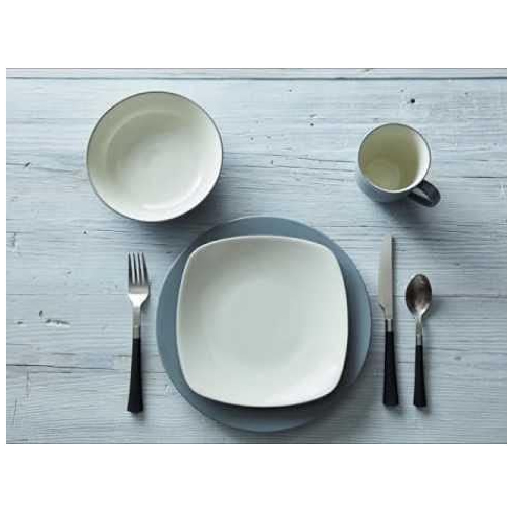 Inclui: 1 prato raso de jantar, 1 prato de aperitivo, 1 caneca e 1 tigela.
