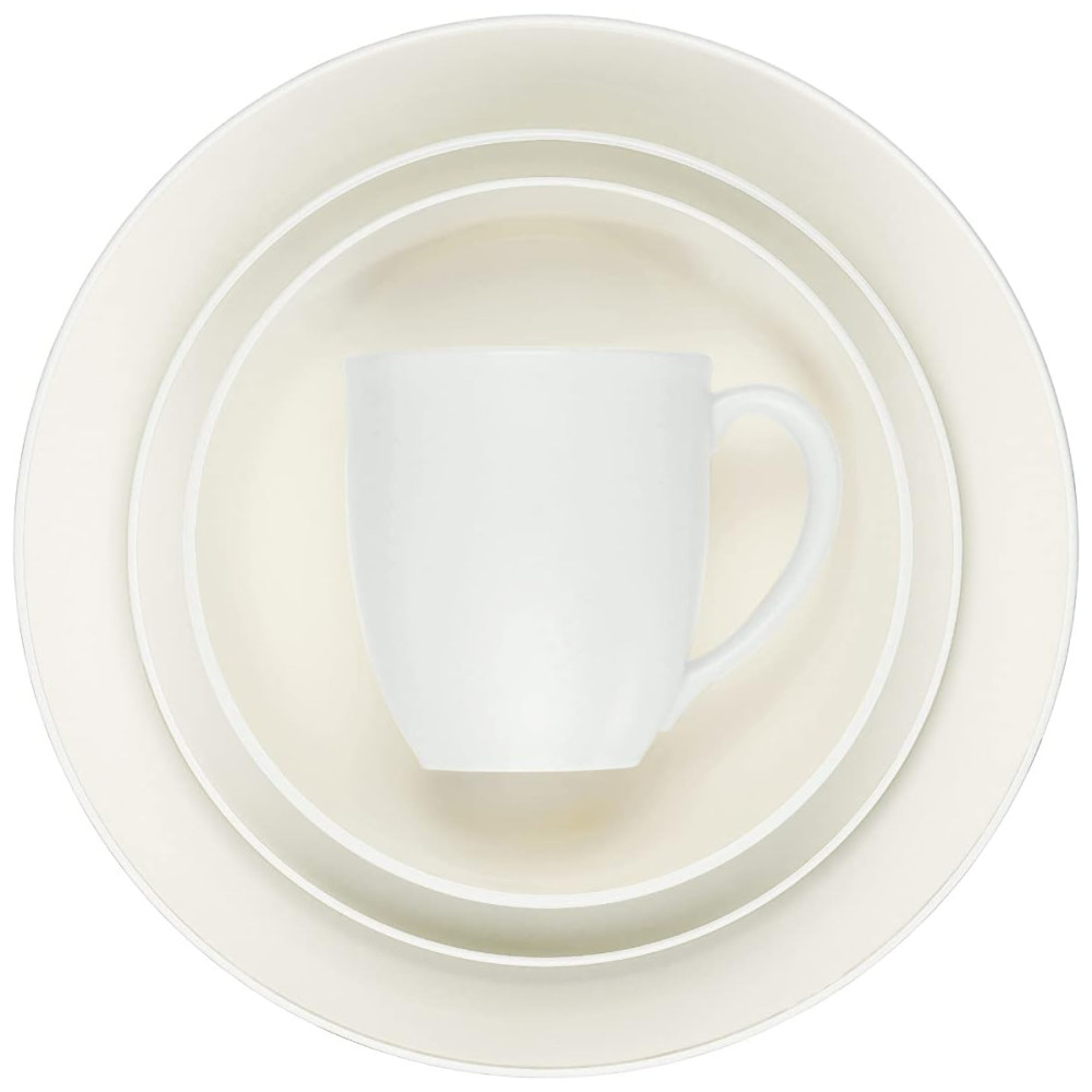 Inclui: 1 prato de jantar, 1 Prato de Sobremesa/Salada, 1 Tigela Sopa/Cereais e 1 Caneca