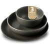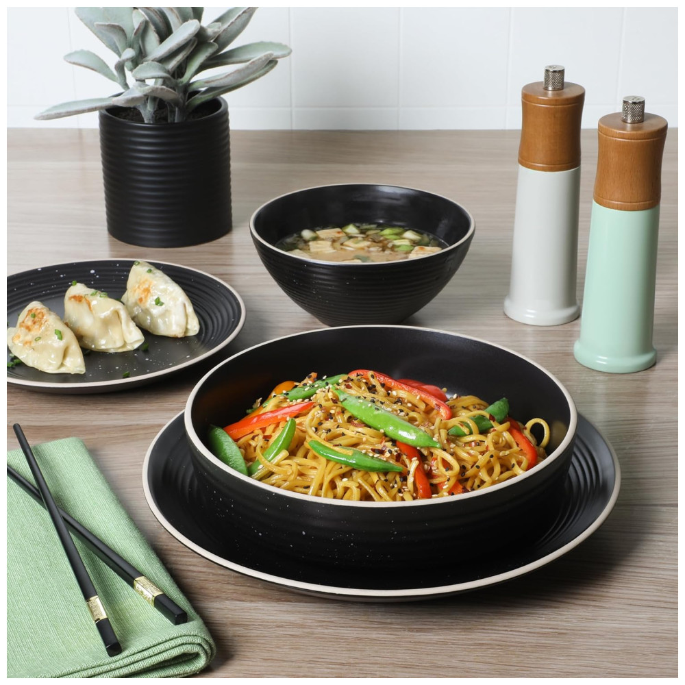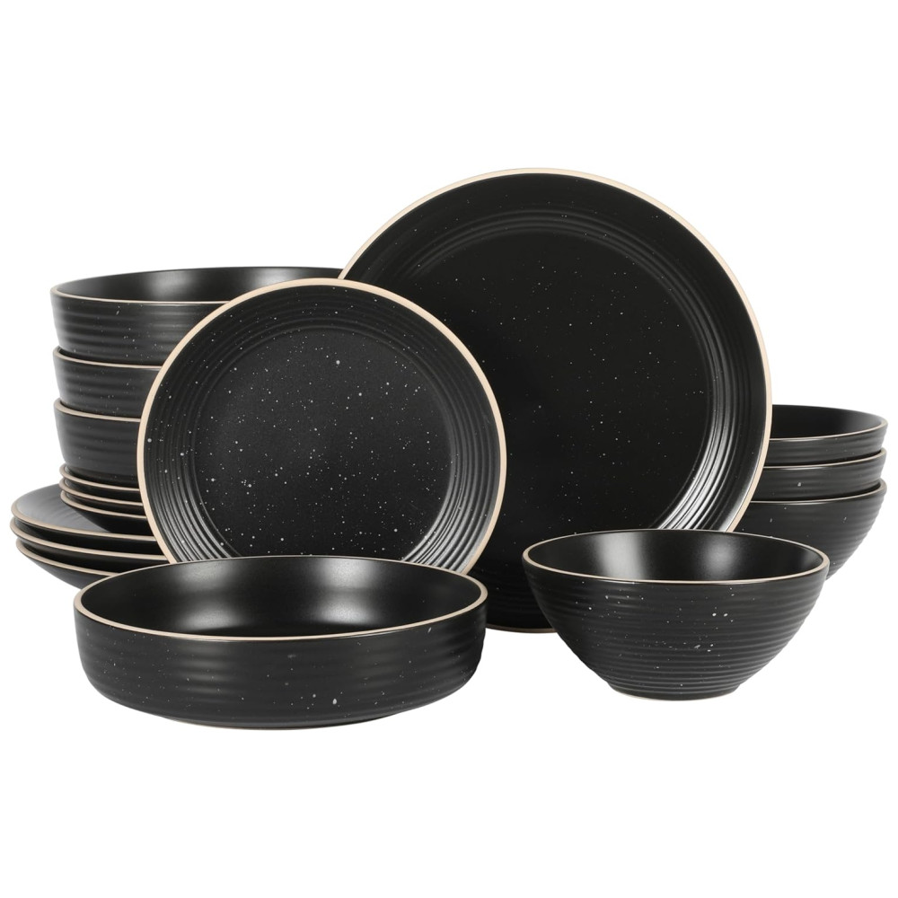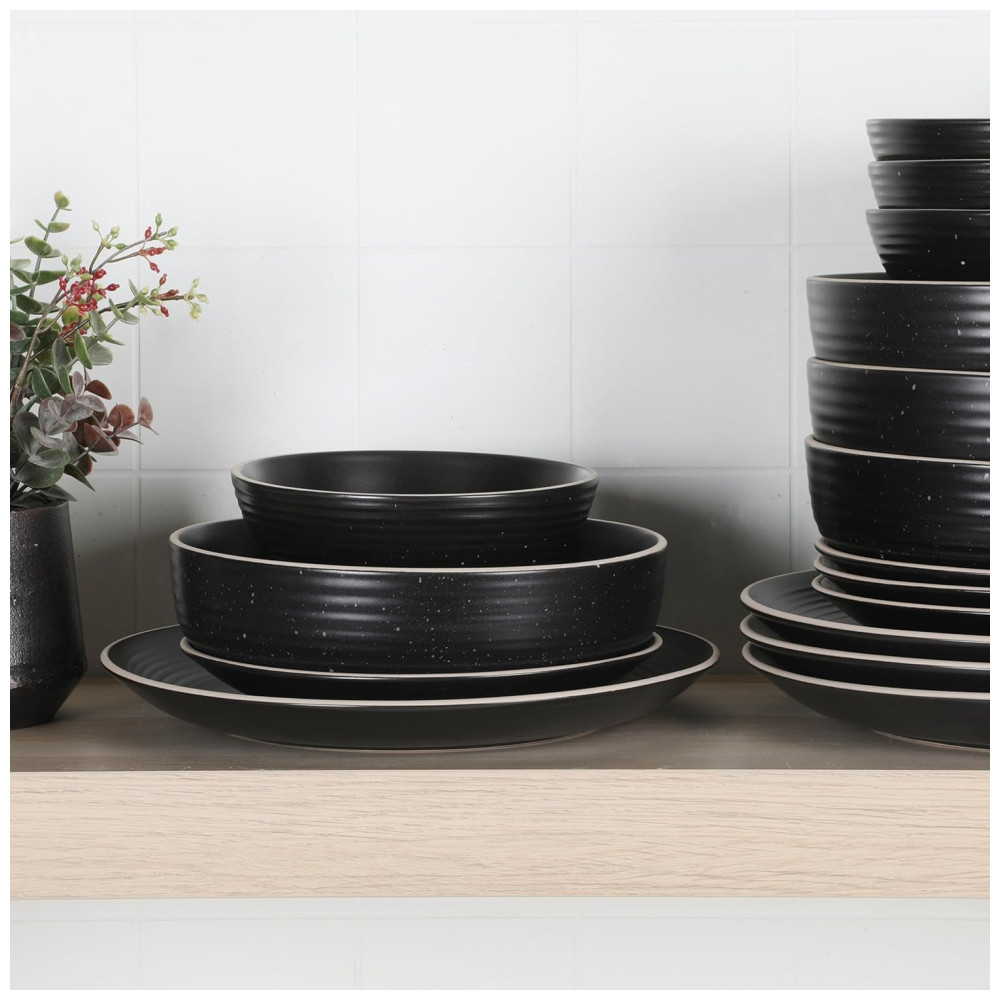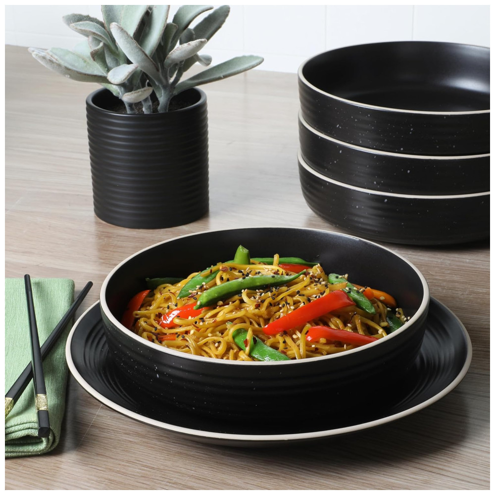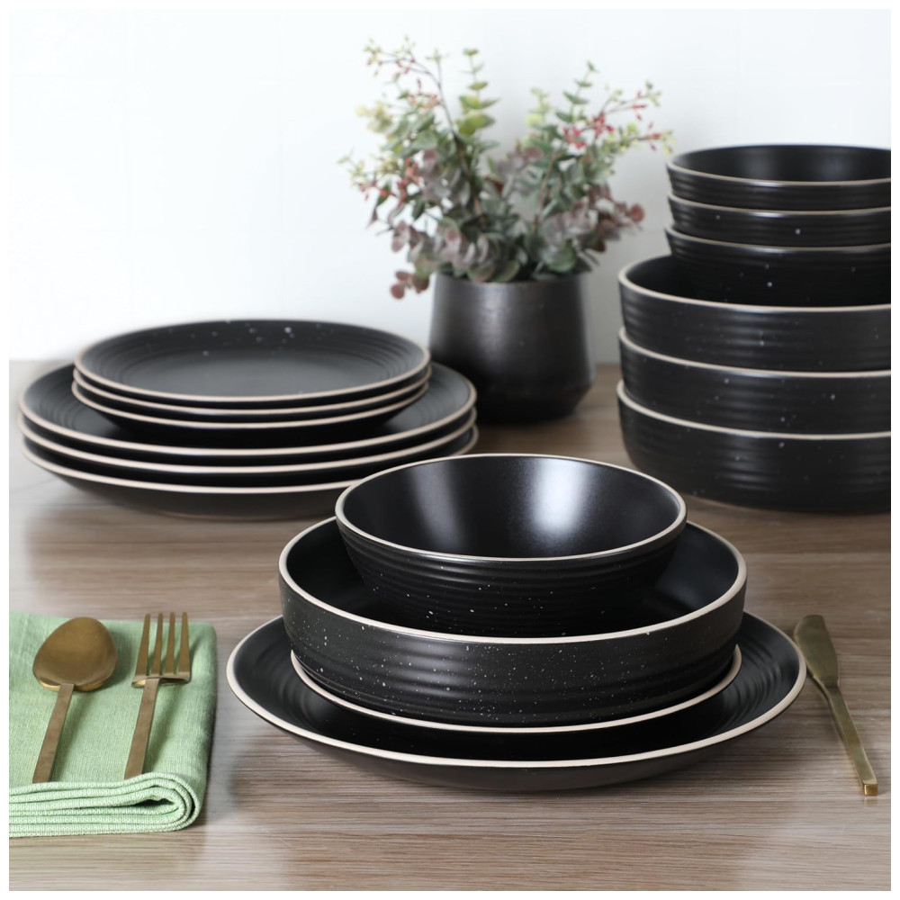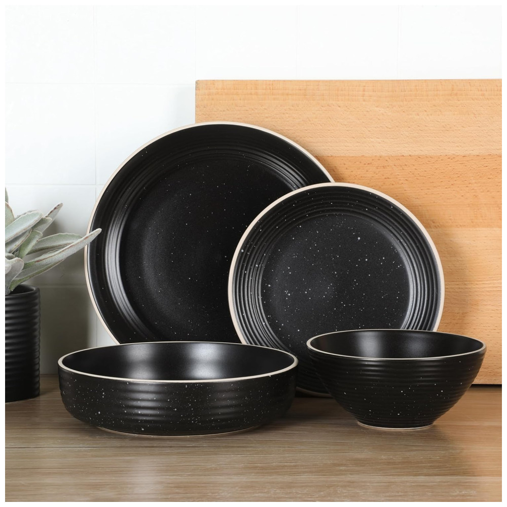 Aparelho de Jantar de Pedra de 16 Peças Gibson Home Dinah Bowl Duplo de Jantar com Relevo em Alto-Relevo Preto Fosco – Serviço para 4