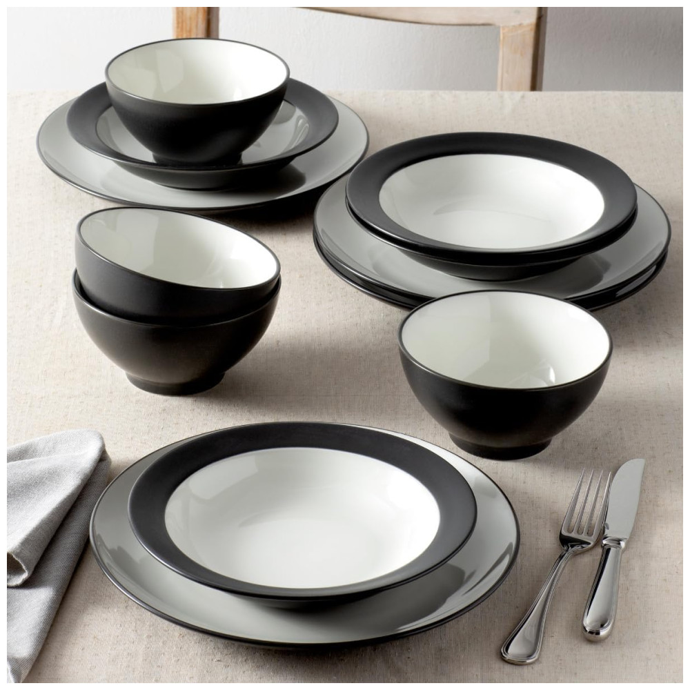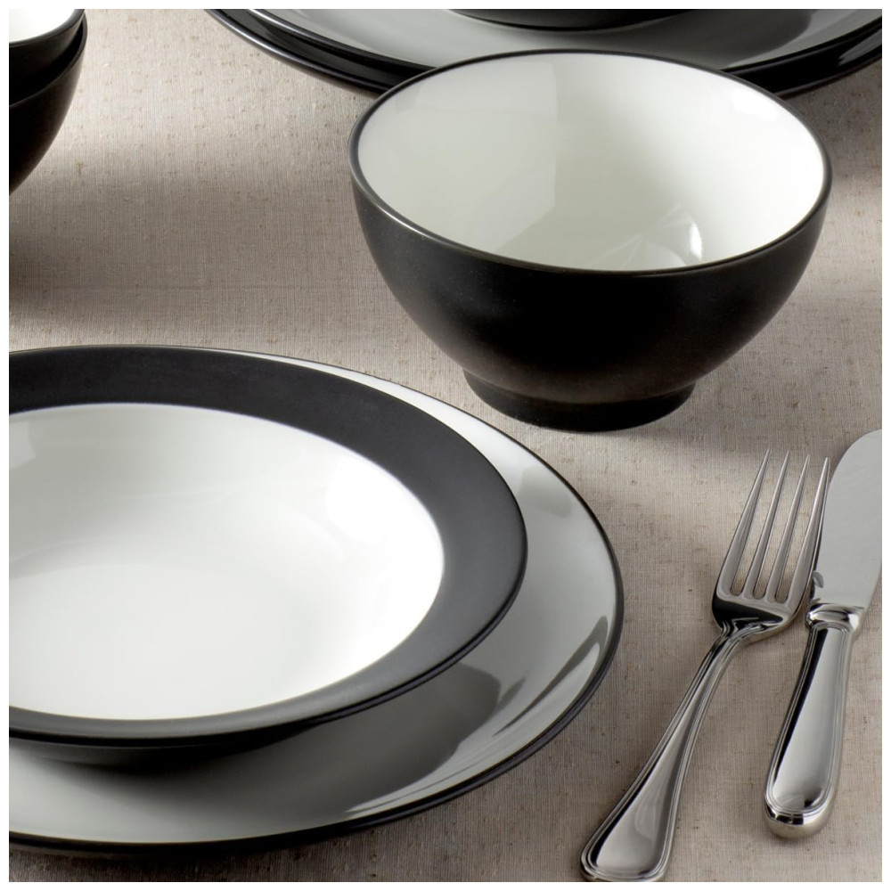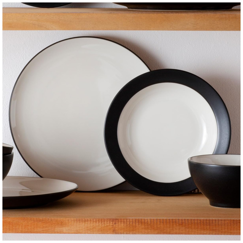 Aparelho de Jantar Elegância e Sofisticação para Sua Mesa com 12 Peças Formato Redondo e Material de Cerâmica Noritake Branco e Preto