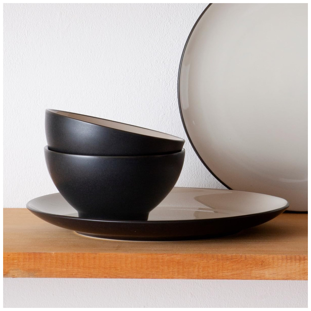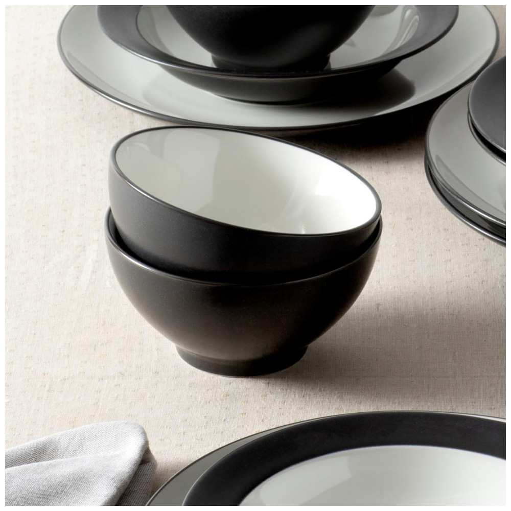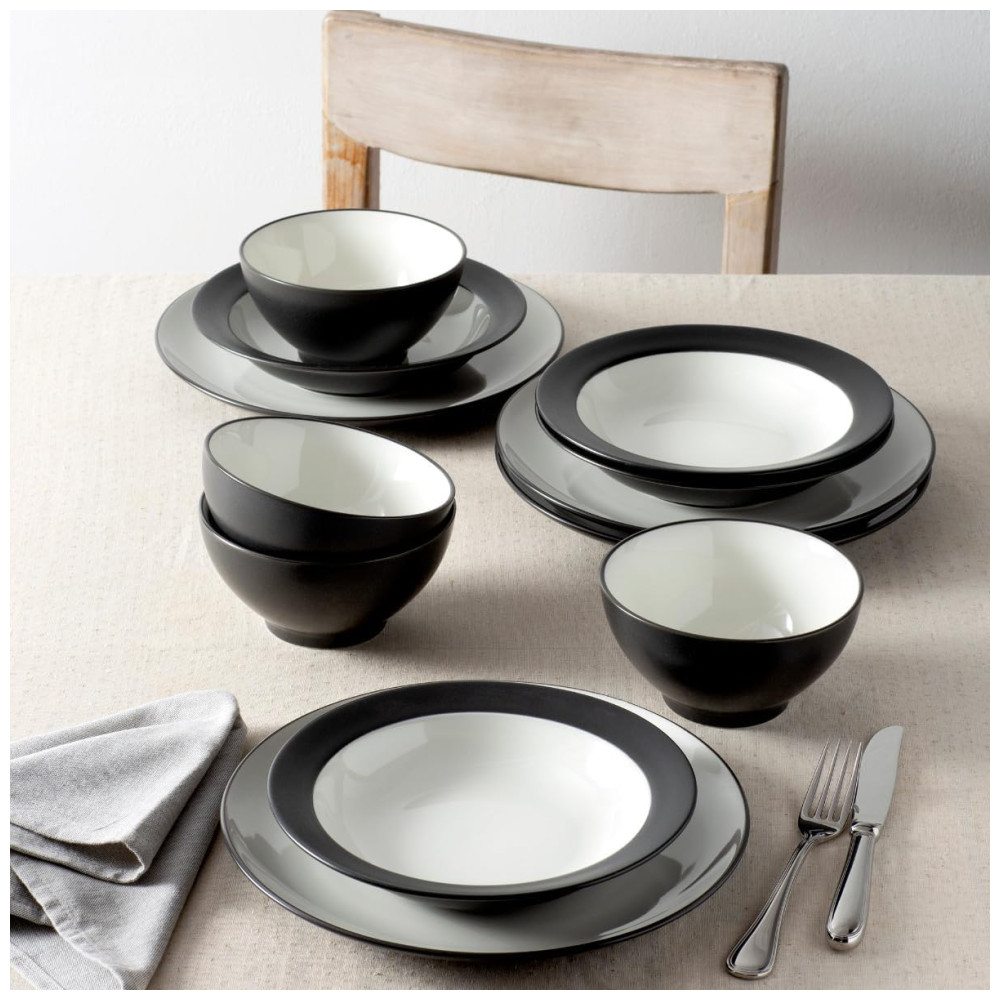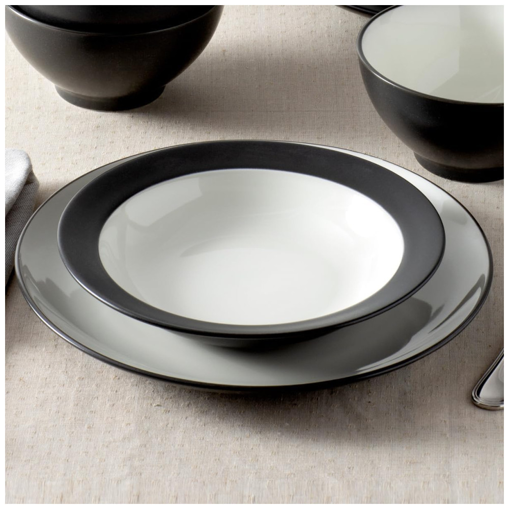 Aparelho de Jantar Elegância e Sofisticação para Sua Mesa com 12 Peças Formato Redondo e Material de Cerâmica Noritake Branco e Preto