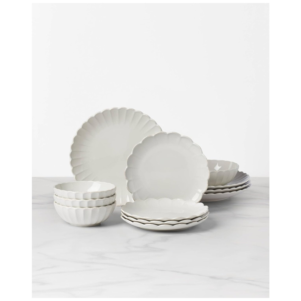 Aparelho de Jantar Elegância e Sofisticação para Sua Mesa com 12 Peças Formato Redondo Ondulado e Material de Cerâmica LENOX 893471 Branco