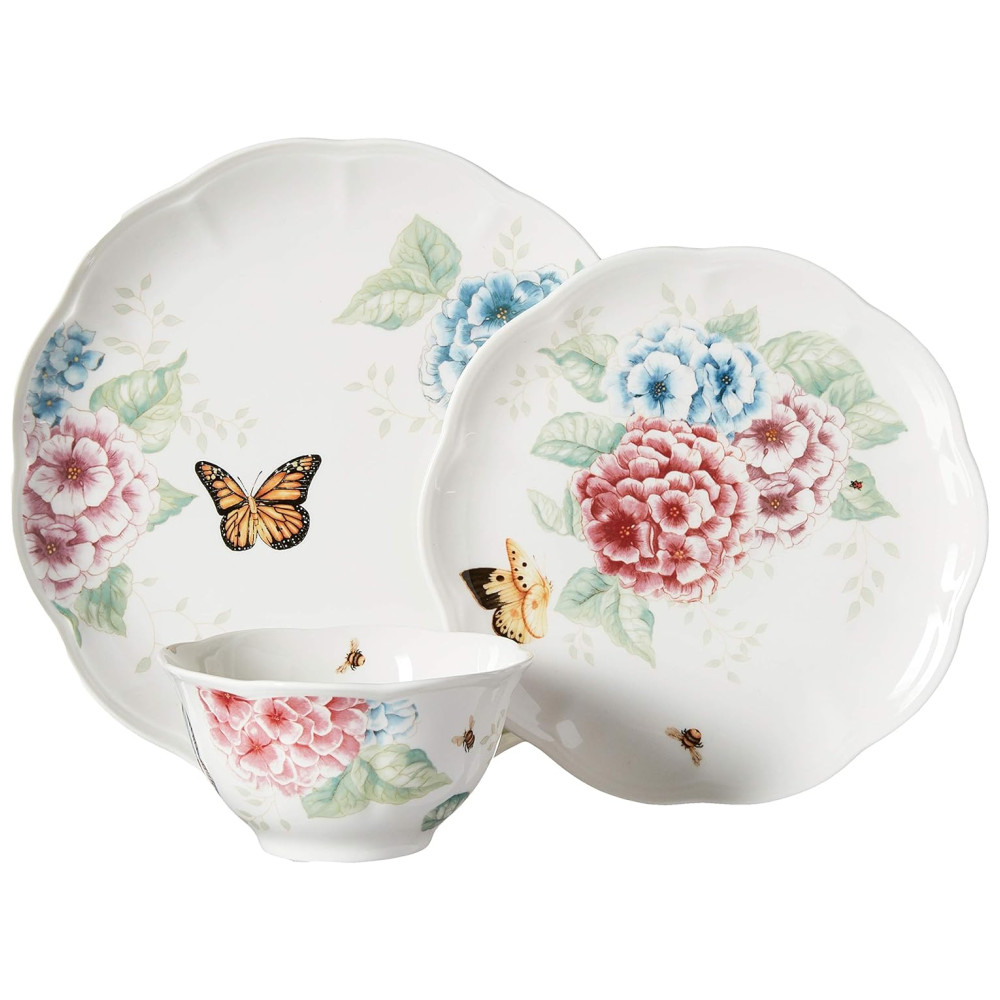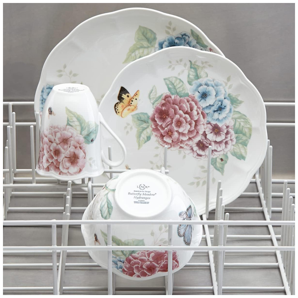 Este encantador conjunto de porcelana cerâmica branca é a escolha perfeita para quem valoriza momentos especiais que perduram. Com 12 peças, ele serve 4 pessoas e apresenta um novo padrão que destaca hortênsias ricamente detalhadas, adicionando cores vibrantes a designs clássicos da linha Butterfly Meadow, que também inclui adoráveis borboletas, libélulas e abelhas.